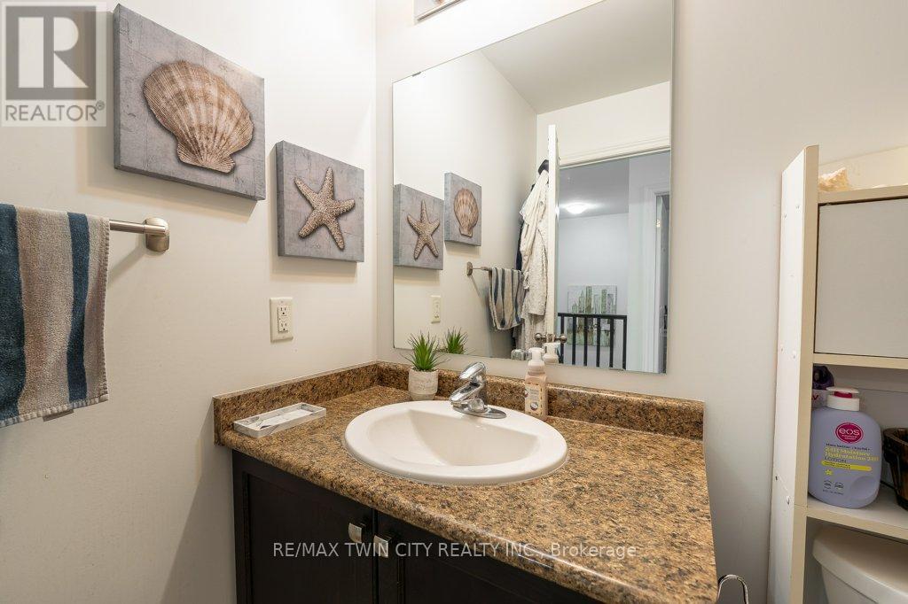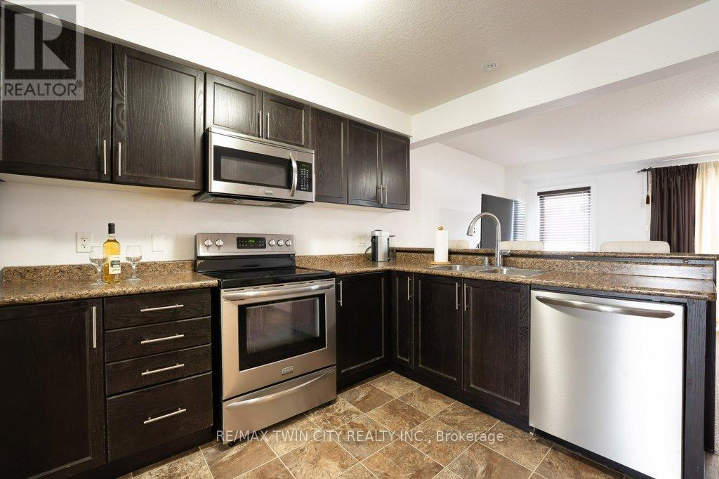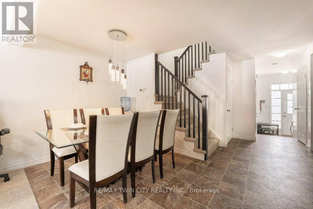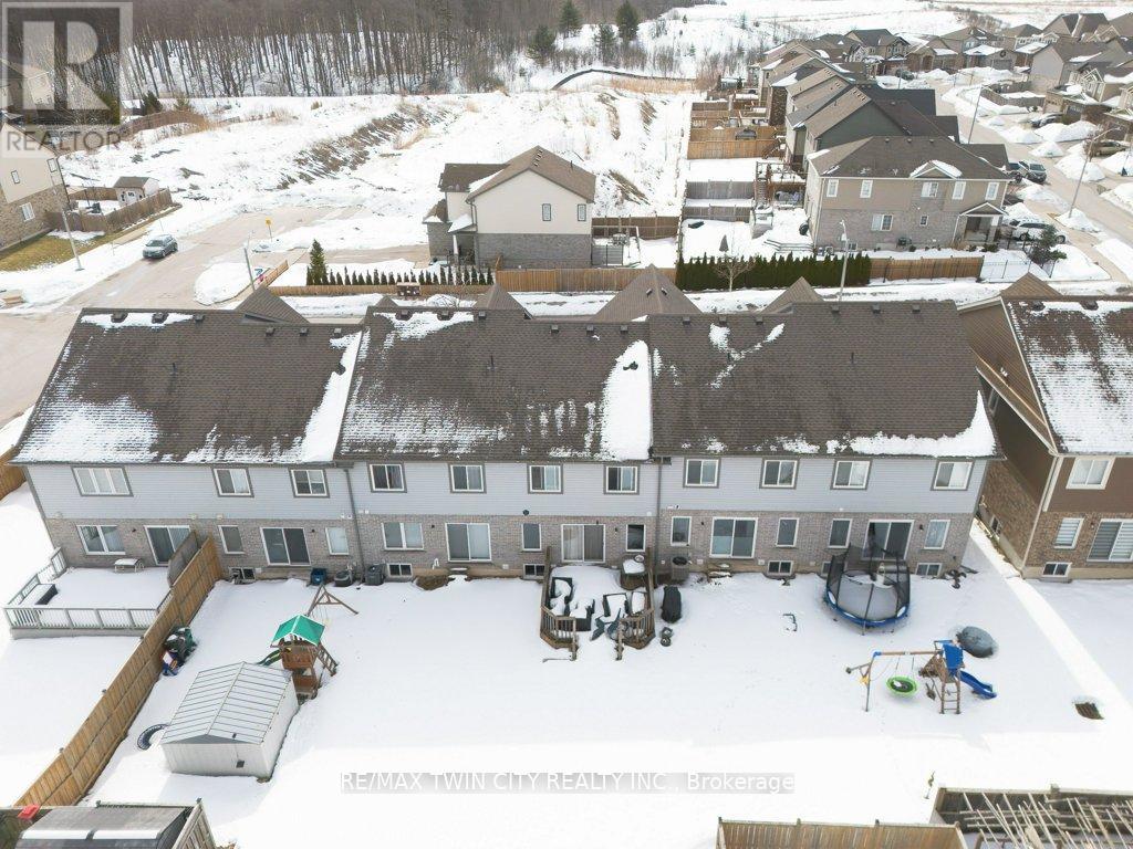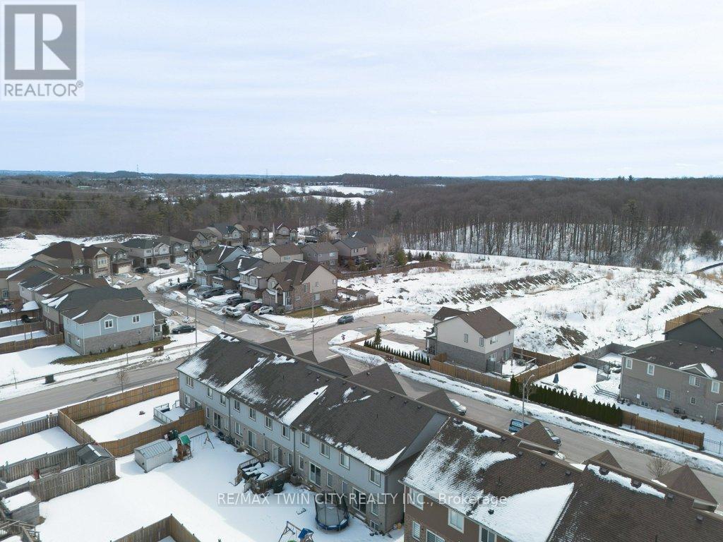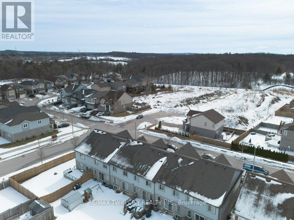 Beautiful freehold townhouse located in the desirable Huron area. Offering 3 bedrooms and 2.5 bathrooms with a bright open concept main floor. Welcoming foyer with convenient access to the garage. Spacious kitchen featuring ample counter space, pantry, breakfast bar, and stainless steel appliances, overlooking the large living room with walk-out to a private deck, perfect for outdoor entertaining and summer BBQs. The second floor offers generously sized bedrooms and laundry room. The primary bedroom features a functional layout with space for a home office, a walk in closet, and a private ensuite bathroom. The unfinished basement with 3 piece bathroom rough-in provides excellent potential for future development. Extended concrete driveway allows parking for up to 3 vehicles. Prime location close to schools, parks, shopping, banks, restaurants, coffee shops, and minutes to conestoga College Highway 401. (id:64974)