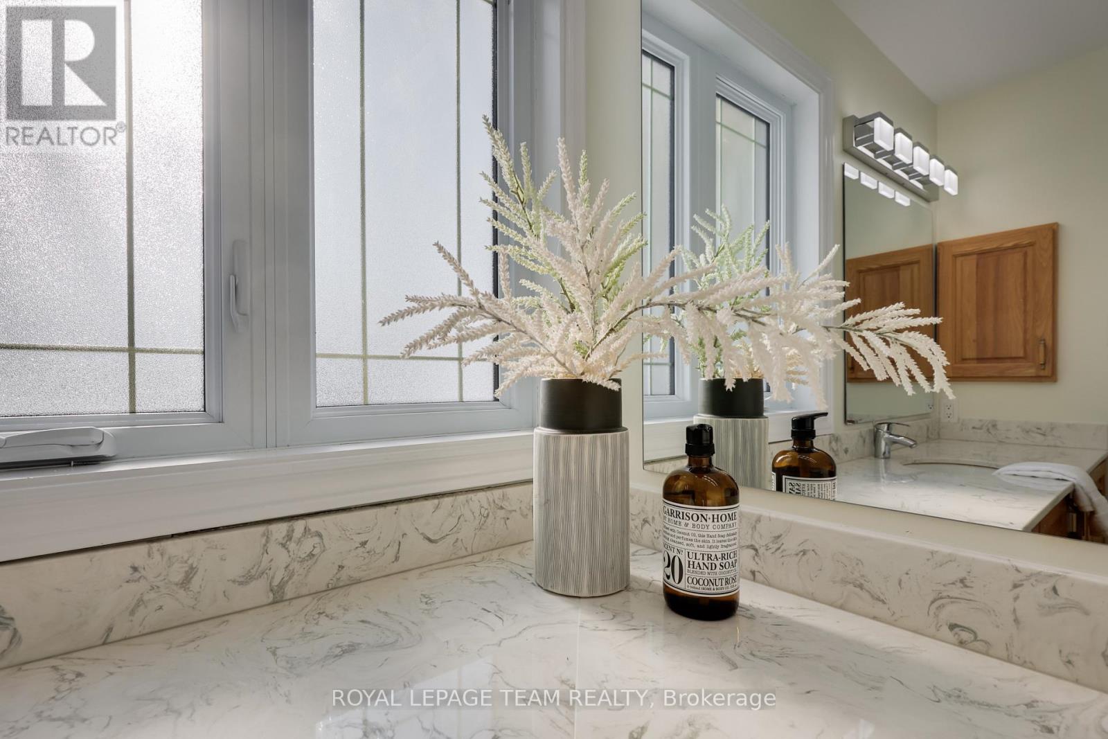 Welcome to this beautifully maintained Minto Pearl model in the heart of Centrepointe, offering 4 bedrooms, 3 full bathrooms, a double attached garage, and a fully finished basement. One of its standout features is the main-floor den paired with a full 3-piece bathroom - ideal for multi-generational living, guests, or a private home office. With thoughtful updates throughout and generous living space, this home combines functionality, comfort, and long-term value in one of Ottawa's most desirable family neighbourhoods. The front exterior sits on a quiet, mature street with excellent curb appeal and a welcoming entry. Step inside to a bright foyer that opens to a south-facing vaulted living room filled with natural light, creating an immediate sense of openness. The formal dining area flows seamlessly for easy entertaining. The kitchen features quartz countertops, oak cabinetry, and a sunny breakfast area overlooking the backyard, while the adjacent family room with a wood-burning fireplace offers a warm, inviting space to relax. A wood staircase leads to the second level, where all bathrooms have been upgraded with quartz counters, new sinks, and modern light fixtures. The spacious primary suite includes a walk-in closet and a luxurious 5-piece ensuite with a jacuzzi tub and separate shower for true comfort and privacy. The additional bedrooms are well-sized and versatile. Downstairs, the fully finished basement provides two large recreation areas perfect for a home theatre, gym, or playroom, plus an oversized furnace room offering exceptional storage space. The private backyard is ideal for summer gatherings and family enjoyment. Major updates include a 2024 roof with transferable warranty, updated furnace (2015), and newer windows (approx. 2012), along with a Tesla charging outlet for added convenience. Located within walking distance to schools and close to Centrepointe Park, the water park, Nepean Library, City Service Centre, and Baseline LRT station. (id:64974)