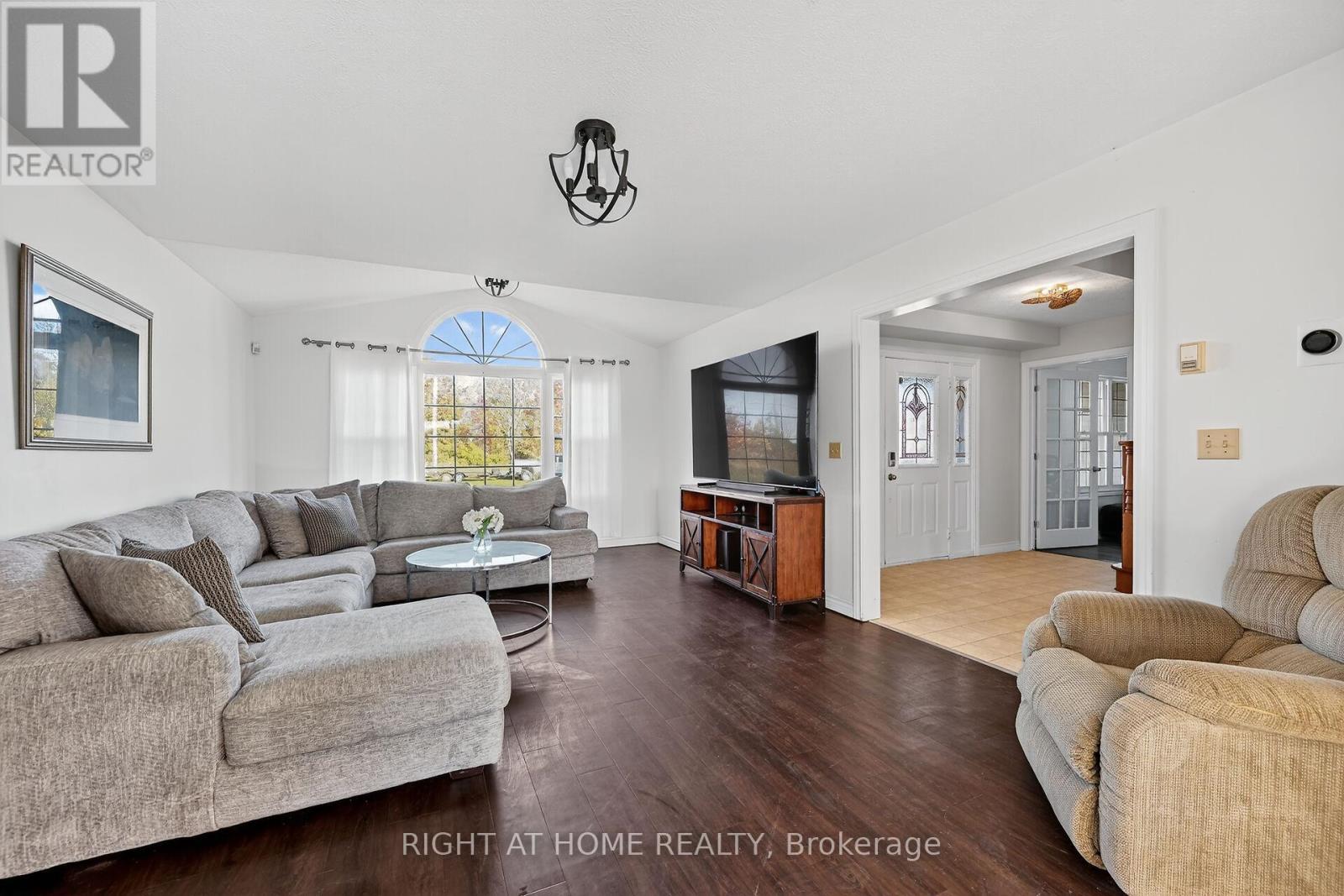 This STUNNING 4-bedroom, 2.5-bath, 2-storey home is situated on a sought-after 1.07 acre country lot, offering over 2,190 sq. ft. of beautifully finished living space. Set back from the road, the home's curb appeal impresses with a welcoming covered porch, premium vinyl siding, steel roof, and an entertainer's dream backyard complete with a two-tiered deck, hot tub area, bar, and fire-pit, perfect for relaxing or hosting family and friends. Inside, the functional layout features a gourmet eat-in kitchen with quartz countertops, stone backsplash, island, and pantry drawers. The bright and open dining area features patio doors to the gorgeous fully fenced rear yard. The spacious family room offers a gas fireplace with stone hearth and vaulted ceiling, while the separate living room could be an ideal playroom or executive home office. Convenient main floor laundry and mudroom with garage access and a 2-pc bath complete this level. Upstairs, you'll find 4 generous bedrooms, all with hardwood floors, including a primary suite with walk-in closet and 4-pc ensuite. The full basement offers unlimited potential to expand your living space further. Major updates include the furnace & A/C, steel roof, the kitchen, powder room, fully fenced backyard and a cistern with bypass and UV/filter system. Oversized and heated 2+ car garage and large driveway offering ample parking for your cars and recreational vehicles! Enjoy peaceful country living with convenient access to Cayuga, Binbrook, and just 25 minutes to Hamilton with highway access to the 403, QEW, and GTA. Just move in and enjoy! (id:64974)