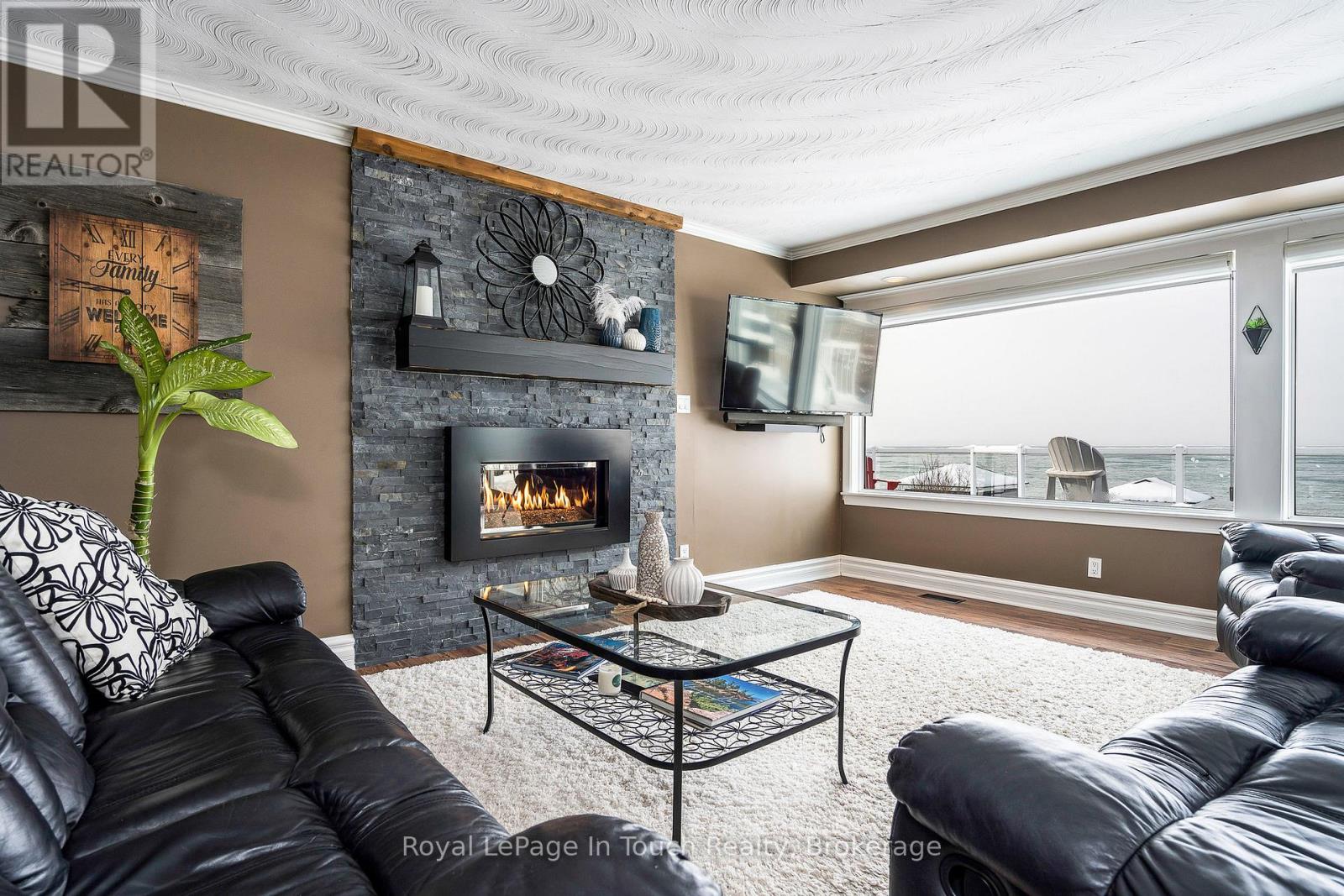Here is your unique opportunity to own a pristine waterfront on the highly desirable shores of Georgian Bay in Tiny Township. Enjoy the stunning views of the bay and the majestic westerly sunsets, while also overlooking the ski hills of Blue Mountain. This 5-bedroom, 3-bathroom bungalow includes a fully equipped and ready to move into in-law suite with walkout to a beautiful, manicured lot and steps to the sandy beach. Modern features, a beautiful upper deck, and lower patio makes this property perfect for outdoor living yet close to the conveniences of restaurants, stores, and a park, that are within walking distance. 84 ft Ambulatory Water's Edge and almost 300 ft deep lot with a beautiful view of Georgian Bay from most of the house. There is plenty of room for the weekend toys in the heated double car garage and storage building with this gem. Don't miss this great opportunity and amazing value, you won't be disappointed. (id:64974)
