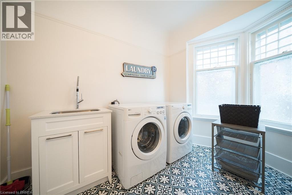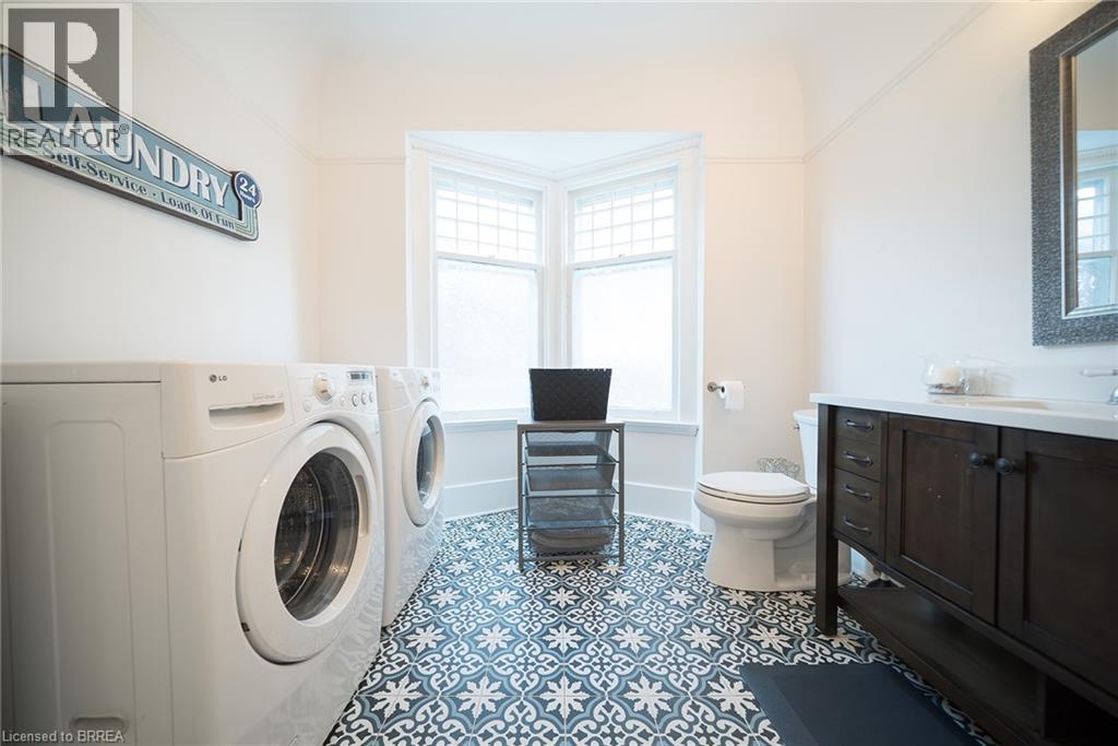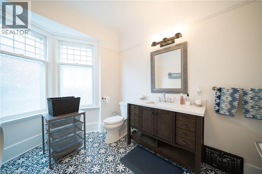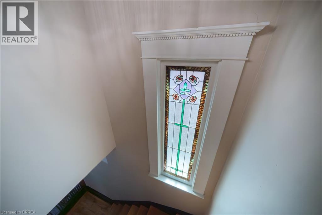 Welcome home to 8 William Street, set in Brantford's Victorian Historic District. This solid brick 2-storey home with 2,451 sqft, 4 bedrooms, 2.5 baths and a remarkable attic loft, was meticulously restored to its original grandeur in 2017-2018 and offers spectacular curb appeal. Step inside to a foyer defined by ornate ceramic tile, a broad hardwood Victorian staircase and original wood trim that reflects the workmanship of its era. The main floor highlights refinished pine hardwoods, Palladian windows, intricate coving & moldings, with period hardware & door fixtures throughout. The living & dining rooms feature bay windows, custom California shutters and a refinished oak fireplace in the living room. The kitchen showcases a crisp white palette of cabinetry set against a mosaic tile backsplash, apron-front sink and stainless steel appliances. A door opens to the side porch, and backstairs link the kitchen to bedrooms, perfect for quick trips upstairs or late-night snacks. Completing the main floor is a newly constructed 2pc bathroom combined with the laundry room. The second floor offers 4 bedrooms with refinished hardwoods and a 5pc bath. The stunning loft retreat boasts vaulted ceilings with beams, skylight, dormer, wet bar and a 3pc bathroom. The basement walks-up to a fenced professionally landscaped backyard with interlock patio, gardens & green space that backs onto a picturesque city park & steps to the Grand River trail. William Street, recognized within the Dufferin Ave - William St Heritage Conservation District, is notable for its potential in Brantford's continued growth & development. With timeless curb appeal & thoughtful restoration, this home offers both charm & function in one of the city's most desirable settings, close to schools, shops & parks. Additional Features Include: Select new windows installed (main bathroom, kitchen, basement). New roof, eavestroughs, soffit & facias (2017), Full electrical rewiring. (id:64974)