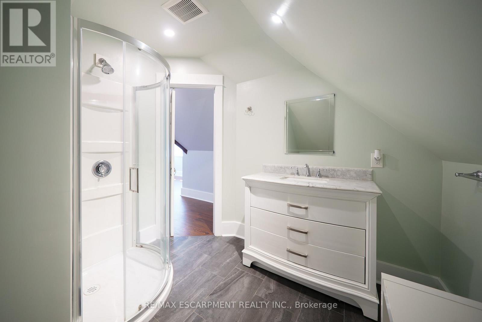Welcome home to 8 William Street, set in Brantford's Victorian Historic District. This solid brick 2-storey home with 2,451 sqft, 4 bedrooms, 2.5 baths and a remarkable attic loft, was meticulously restored to its original grandeur in 2017-2018 and offers spectacular curb appeal. Step inside to a foyer defined by ornate ceramic tile, a broad hardwood Victorian staircase and original wood trim that reflects the workmanship of its era. The main floor highlights refinished pine hardwoods, Palladian windows, intricate coving & moldings, with period hardware & door fixtures throughout. The living & dining rooms feature bay windows, custom California shutters and a refinished oak fireplace in the living room. The kitchen showcases a crisp white palette of cabinetry set against a mosaic tile backsplash, apron-front sink and stainless steel appliances. A door opens to the side porch, and "backstairs" link the kitchen to bedrooms, perfect for quick trips upstairs or late-night snacks. Completing the main floor is a newly constructed 2pc bathroom combined with the laundry room. The second floor offers 4 bedrooms with refinished hardwoods and a 5pc bath. The stunning loft retreat boasts vaulted ceilings with beams, skylight, dormer, wet bar and a 3pc bathroom. The basement walks-up to a fenced professionally landscaped backyard with interlock patio, gardens & green space that backs onto a picturesque city park & steps to the Grand River trail. William Street, recognized within the Dufferin Ave - William St Heritage Conservation District, is notable for its potential in Brantford's continued growth & development. With timeless curb appeal & thoughtful restoration, this home offers both charm & function in one of the city's most desirable settings, close to schools, shops & parks. Additional Features Include: Select new windows installed (main bathroom, kitchen, basement). New roof, eavestroughs, soffit & facias (2017), Full electrical rewiring. (id:64974)