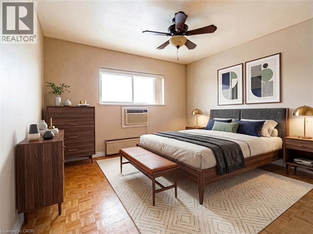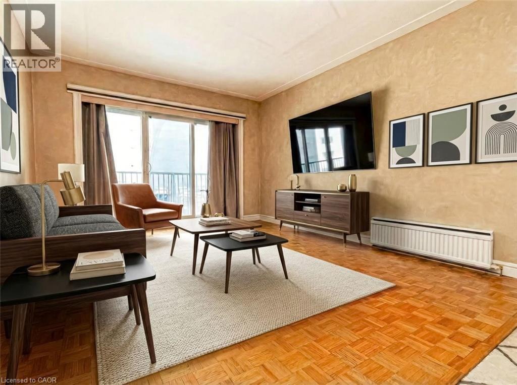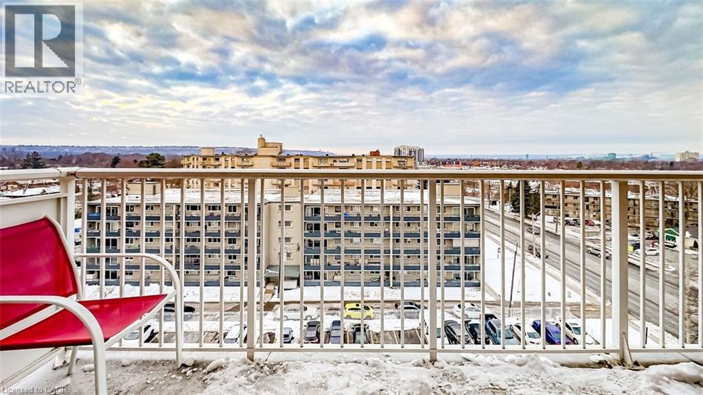 Stop Renting, Start Owning: Incredible value in this Dream Condo! Meticulous penthouse level condo with breathtaking views, all for less than what you're currently paying in rent! This isn't a pipe dream; it's a reality with all utilities included in the condo fees. ( Rare Find) Spacious design, flooded with natural light. The heart of this condo is the spacious eat-in kitchen, featuring, shaker style cabinets & a stylish ceramic backsplash. Cooking & entertaining will be a joy with the convenience of LED pot lights & a double sink. Living area and bedroom with hardwood flooring complemented by newer baseboards, trim, doors, & casements. Storage is no longer an issue with custom closets, including a generous double closet in the front entrance & an expansive his-and-hers (8-foot) closet in the master bedroom. The modern 4-piece bath boasts elegant ceramic tile, providing a spa-like experience. But the appeal doesn't stop there. Step out onto the 23' x 4' balcony & soak in the amazing panoramic views of Hamilton & the Bay. Enjoy your morning coffee or evening cocktails while taking in the stunning scenery. And convenience? You've got it! Just minutes to QEW, transit, shopping, specialty shops and grocery stores, premium parking spot right in front of the building (#130) makes coming and going a breeze. This condo is truly a rare find, especially considering the utilities & basic cable are included! Say goodbye to those surprise bills & hello to predictable monthly expenses. Don't miss this opportunity! Stop throwing your money away on rent and invest in your future. (id:64974)