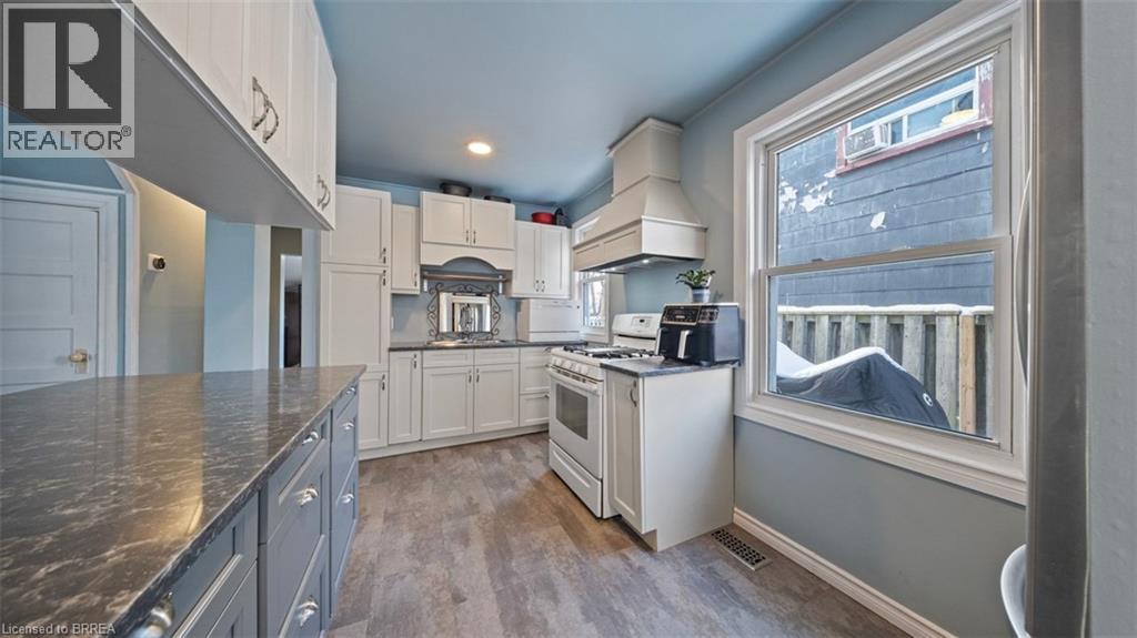 Welcome to 80 Aberdeen Avenue in Brantford. This charming 1.5-storey, move-in-ready home has been recently renovated and clearly shows pride of ownership throughout. Offering 4 bedrooms, 1 bathroom, and a bright, spacious floor plan, this property is an excellent opportunity for first-time buyers or anyone looking to step into the market with confidence. The welcoming foyer leads into a beautifully updated kitchen featuring two-tone shaker-style cabinetry, a dual sink, ample counter and storage space, and a breakfast bar—perfectly complemented by new windows that flood the space with natural light. Just off the kitchen, the large living and dining area offers plenty of room for hosting and entertaining, creating a warm and inviting space for everyday living. Down the hallway, you’ll find a spacious 3-piece bathroom and a generous main-floor bedroom that also works perfectly as a home office or guest room. A functional mudroom with laundry completes the main level and provides convenient access to the backyard. Upstairs, two well-sized bedrooms offer comfortable family living, while the partially finished basement adds valuable flexibility with an additional bedroom complete with egress window — ideal for growing families or overnight guests. Outside, the fully fenced backyard provides ample space to relax and play, complete with two storage sheds for added convenience. This home has been thoughtfully updated with a new metal roof, new eavestroughs and downspouts, an on-demand water heater, and a newly extended driveway offering added parking at both the front entrance and back door—making daily living and entertaining even more convenient. A fantastic opportunity for those looking for a turnkey home with modern updates and room to grow—don’t miss out on 80 Aberdeen Avenue. (id:64974)