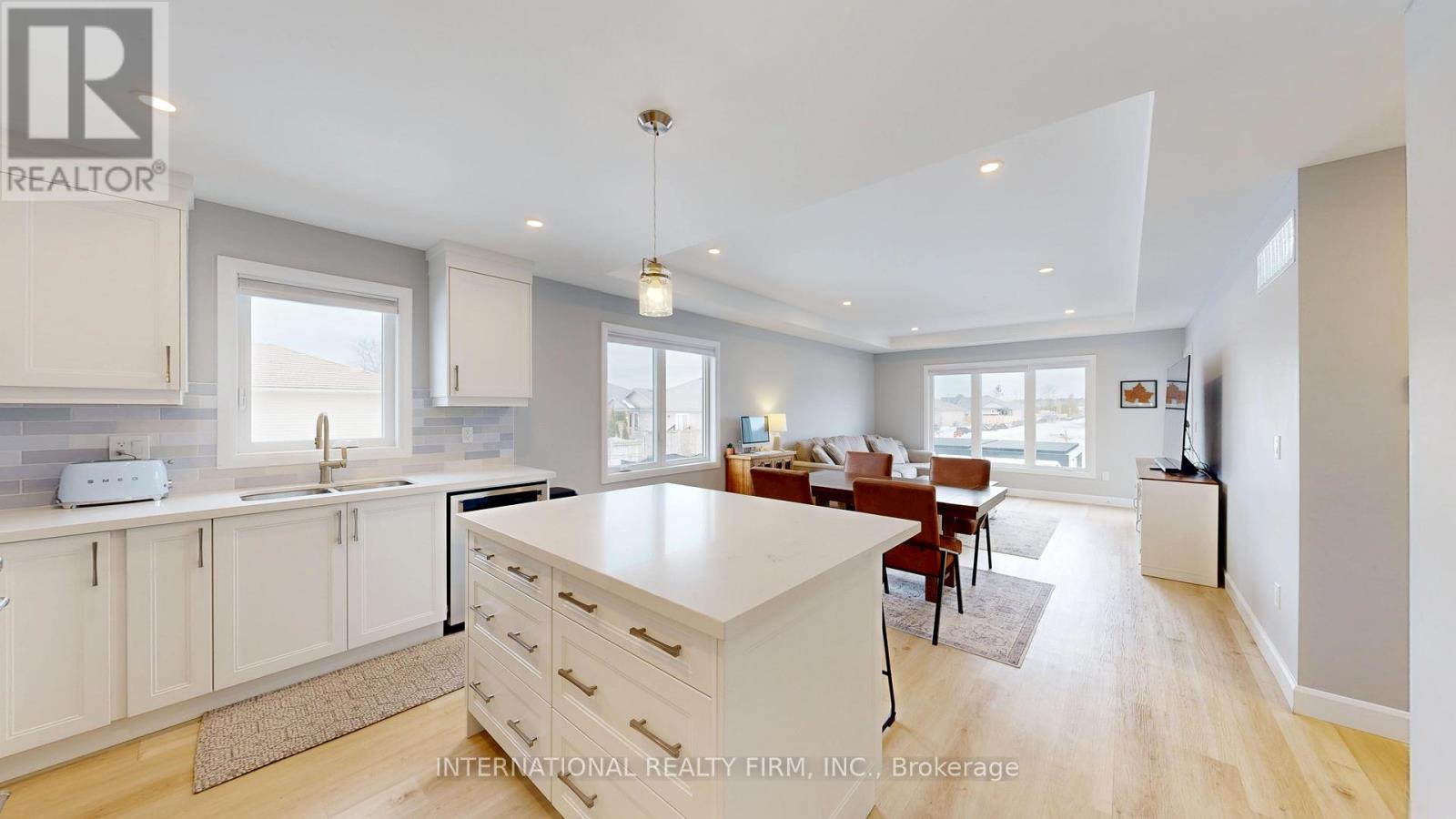 Turn-key semi-raised bungalow for sale! Professionally built by award-winning builder LeBlanc, this beautiful home offers quality craftsmanship and thoughtful design throughout. From the moment you arrive, you'll appreciate the tasteful exterior and welcoming curb appeal that continues inside with stylish finishes and modern, neutral colors. The bright open-concept layout is perfect for both everyday living and entertaining. The spacious living and dining areas flow seamlessly into a stunning kitchen featuring a large center island, stainless steel appliances, and plenty of workspace. Expansive windows throughout the main living area fill the home with natural light and provide beautiful panoramic views. Step outside to a professionally landscaped backyard, where significant investment has created a private outdoor space ideal for relaxing, gardening, or entertaining family and friends. Located within walking distance to the shores of Lake Ontario and the charming shops, restaurants, and amenities of downtown Brighton, this home offers the perfect blend of comfort, convenience, and lifestyle. The basement is partially finished and ready for your personal touch-offering excellent potential for additional living space, a recreation room, home office, or guest area. A truly move-in ready home in a fantastic location-don't miss this opportunity! (id:64974)