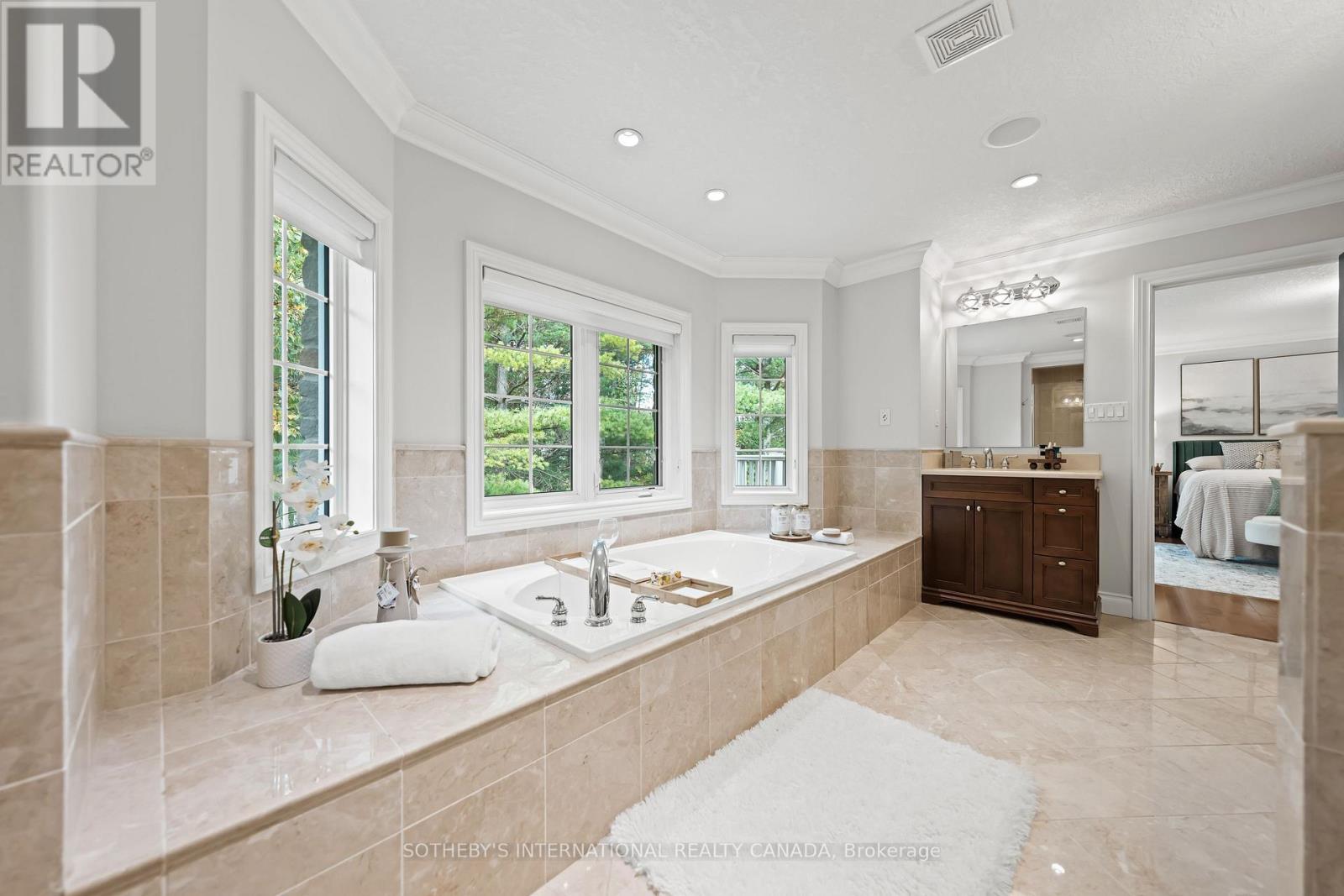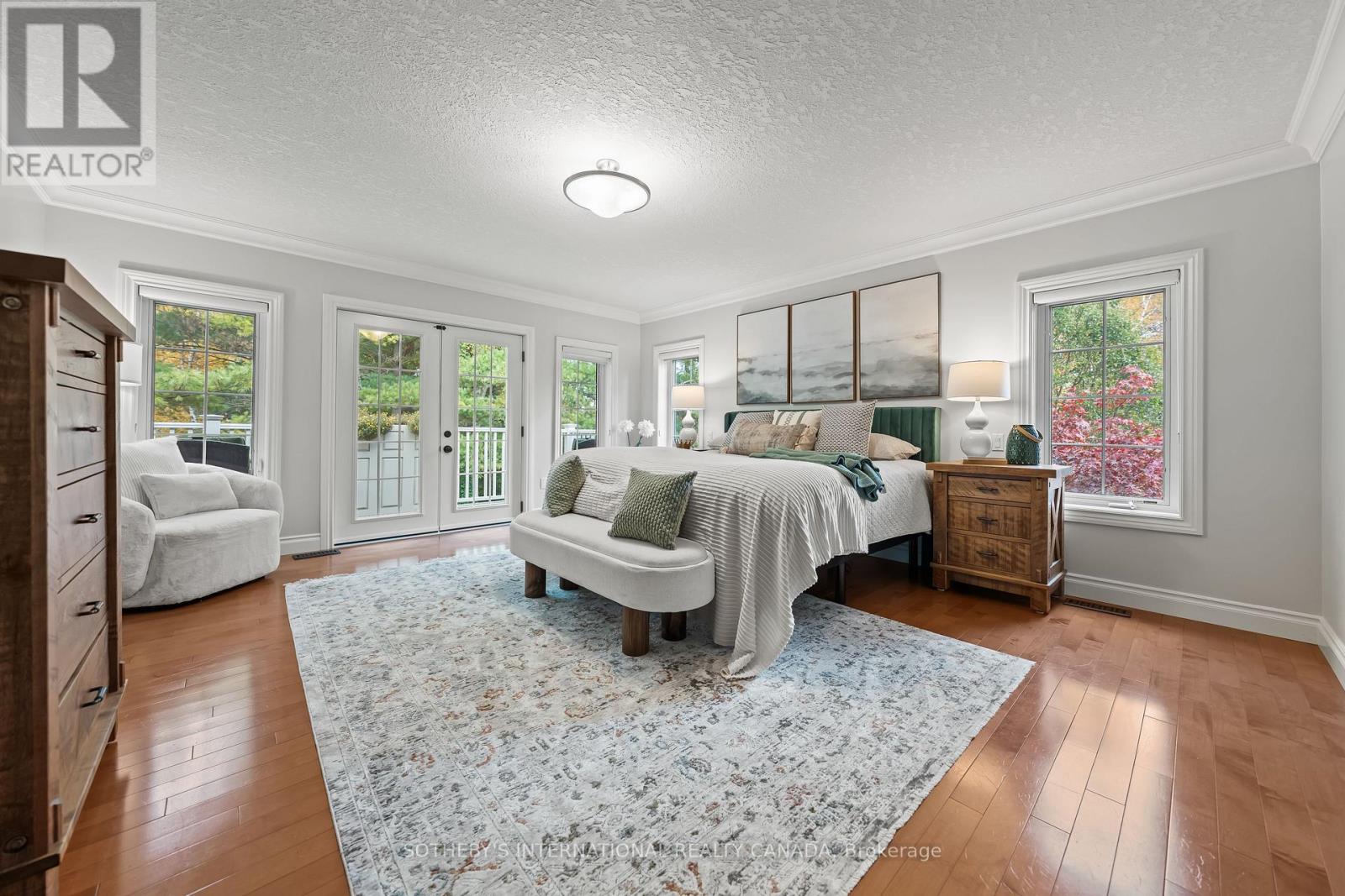 Welcome to 80 Cedarbrook Court, where secluded luxury meets modern convenience. Nestled in North Galts' most prestigious neighbourhood, this exquisite home offers the perfect balance of privacy and proximity. Set on a quiet court surrounded by mature, old-growth trees, the property feels like a private retreat while remaining just minutes from major amenities. This timeless residence offers nearly 5000 SF of total living space, 5 beds, 5 baths and resort-style amenities including an in-ground salt water pool. Inside, modern updates and refined finishes elevate every space, blending contemporary luxury with timeless comfort. From the soaring 10 ft ceilings to the chef inspired kitchen, this home features a functional floor plan with versatility- leaving this a one-of-a-kind property for those seeking space, serenity and style. This home features a beautiful primary bedroom with a luxurious 5+ piece spa-like ensuite, a large walk-in closet and your own balcony overlooking the rear yard. Find 3 additional bedrooms, and 2 stunning bathrooms to complete the upper floor. This home features not 1 but 3 en-suite bedrooms. The finished lower level features flexible living space- perfect for a recreation room, home theatre or an in-law/nanny suite opportunity allowing for a self-contained space with a walk-out. The fully fenced backyard is a true sanctuary-bordering protected green space ensuring complete peace and privacy. Thoughtfully landscaped grounds frame a stunning saltwater pool, tranquil pond, composite deck, and multiple spaces for outdoor living, offering a serene escape. Minutes from Highway 401, schools, parks, public transit, shopping and amenities. This is an exceptional opportunity to enjoy estate-style living with all the benefits of an exclusive, well-connected community. (id:64974)