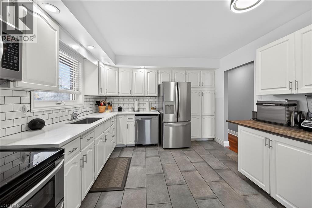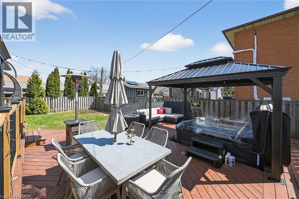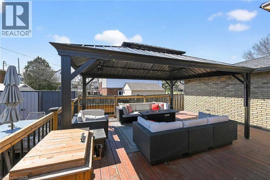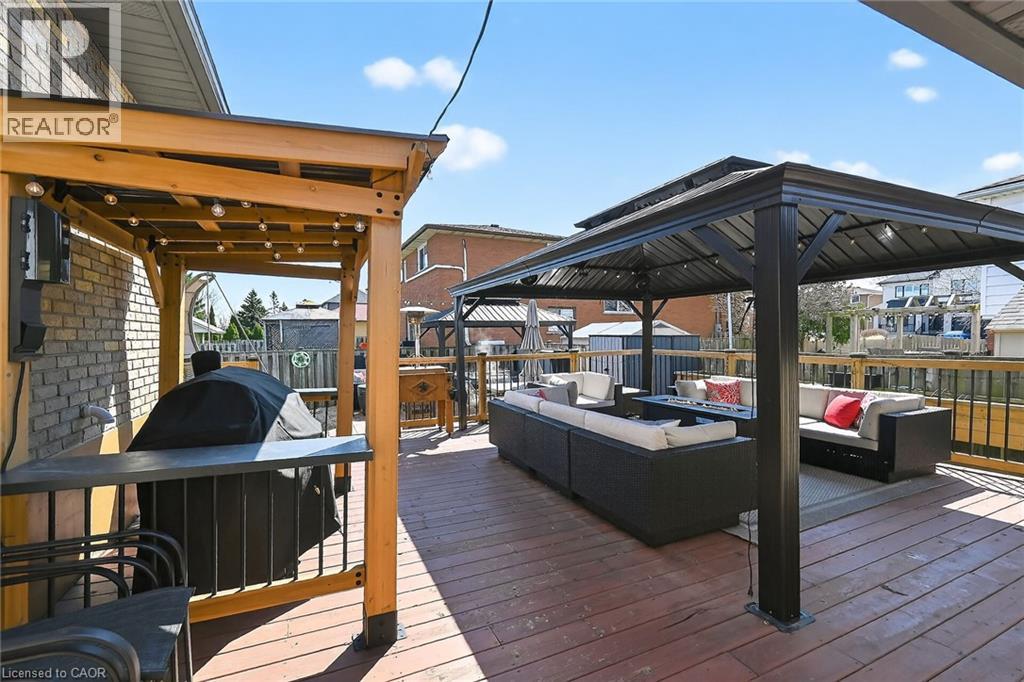 Welcome to 80 First Rd W, a beautifully updated raised ranch nestled on Stoney Creek Mountain. Ideally located just minutes to major amenities including shopping centres, schools, parks, and quick access to the Lincoln Alexander Parkway and Red Hill Valley Parkway. This well-maintained home features a bright and functional layout with a spacious living and dining area, an updated kitchen, and three generous bedrooms on the upper level with ensuite privileges to the primary bedroom. The fully finished lower level has been recently refinished and offers exceptional additional living space, including a large family room, separate recreation room, an additional bedroom, and a full bath. Step outside to your private backyard oasis, complete with three gazebos creating multiple outdoor living spaces ideal for relaxing or hosting. Major updates completed in 2021 include roof, windows, siding, soffit, and eaves, providing peace of mind for years to come. Additional upgrades include new pot lights throughout. This is a highly desirable property in a great neighbourhood! (id:64974)