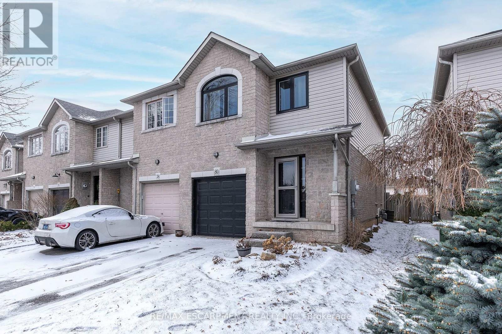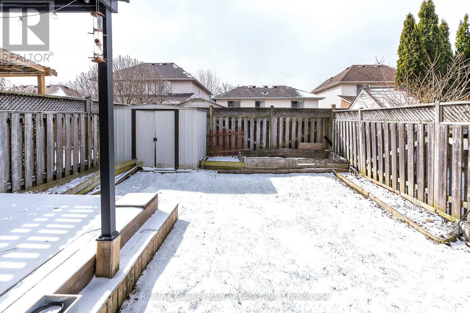 LOCATION LOCATION LOCATION!!!!! Check out this spacious over 1400 Sq ft end unit FREEHOLD town with single car garage in the sought after Maple Lane area. This great layout with open concept living room & eat-in kitchen with walk-out to the back deck make this one ideal for entertaining family & friends. The eat-in kitchen was updated in 2025 and offers plenty of modern white cabinets, modern yet classic subway tile backsplash, ample stone counter space including the large peninsula with additional seating. The living room offers plenty of natural light giving a spacious feel. This floor is complete with the convenience of a 2 piece powder rm. Upstairs offers plenty of space for the family with a three spacious beds and a 3 piece bath. The Master retreat offers plenty of space, ensuite privilege and his and her closets. Looking for even more space for the family the finished basement offers, large rec room perfect for family games or movie nights with plenty of space for an office or kids play area & there is still plenty of room for storage. The fully fenced backyard is a great size for a townhome and offers an extra large covered deck for entertaining and meals and a bonus hook up for gas BBQ and a shed for all your outdoor storage. This home has it ALL and close to all conveniences including highway access for commuting. (id:64974)