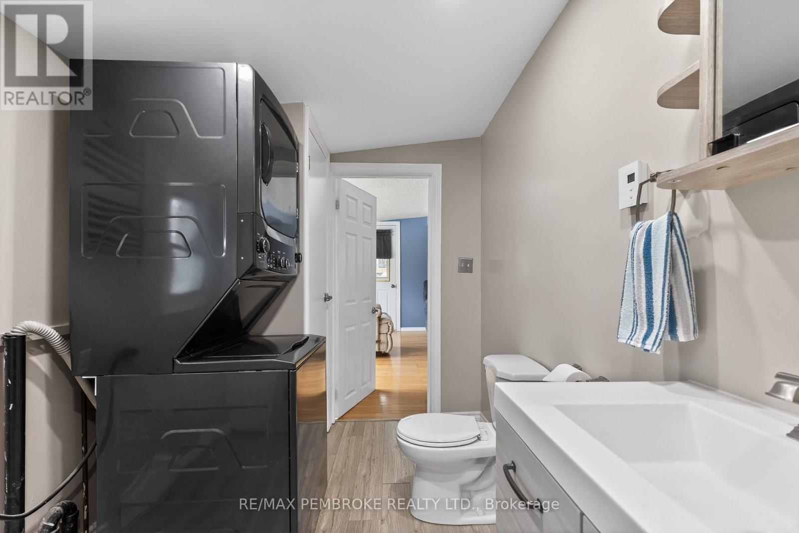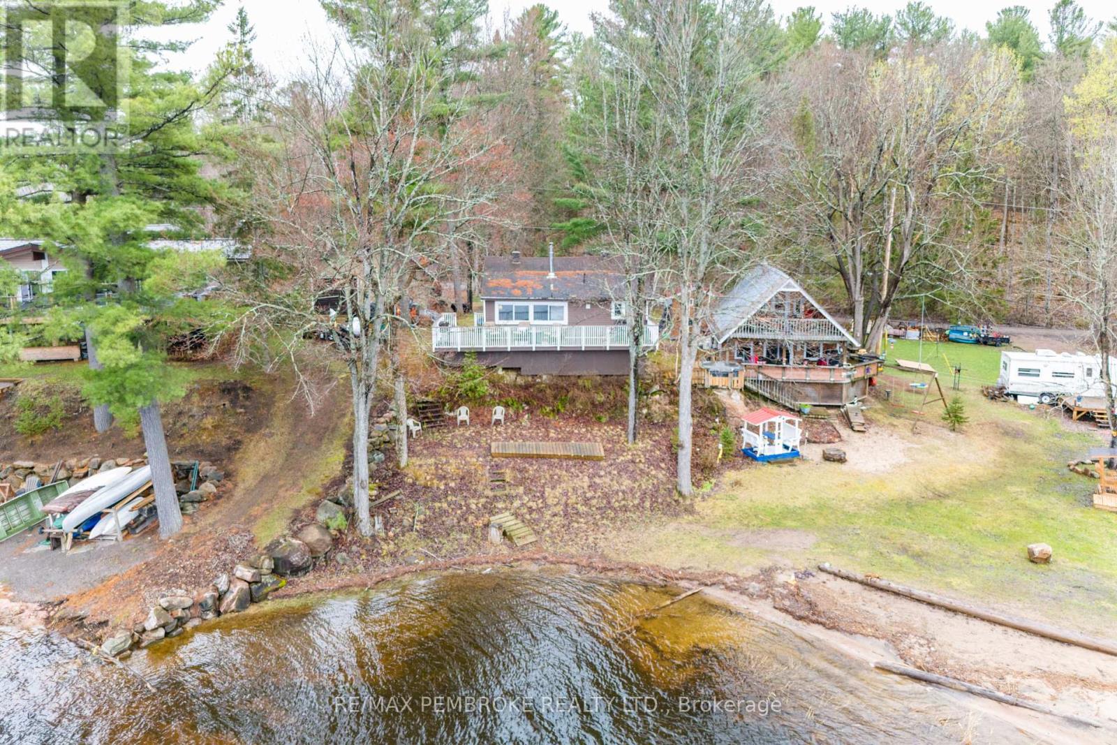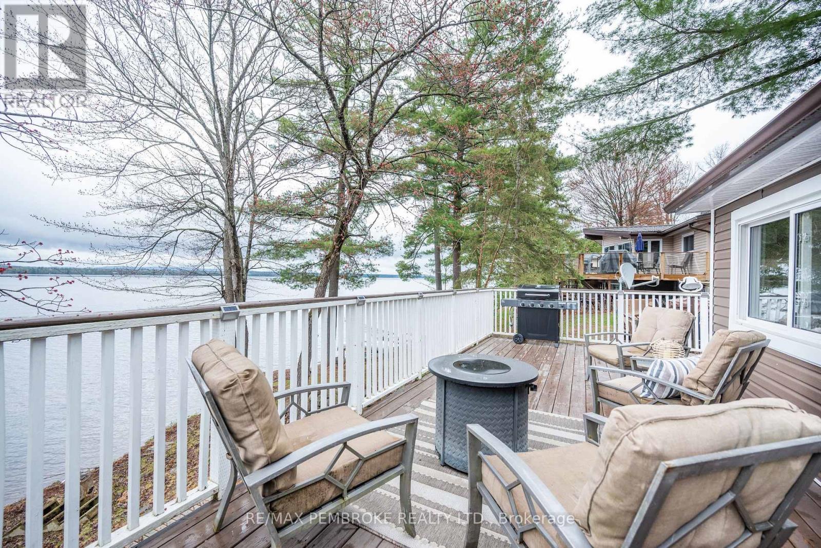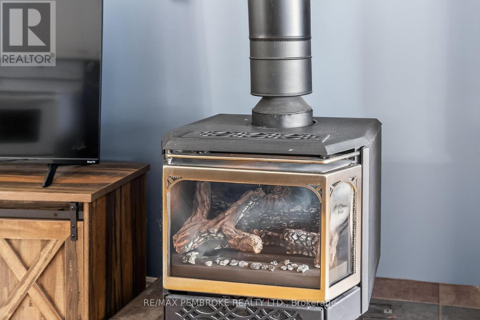 Welcome to your own boutique four-season retreat on the shores of the Ottawa River - where breathtaking sunsets and peaceful waterfront living become part of your everyday life. Tucked away on a private road and just minutes to Garrison Petawawa, this move-in ready home is the perfect blend of comfort, style, and convenience.Thoughtfully updated throughout, this charming home features a beautifully renovated kitchen and bathroom, new flooring, and fresh paint, creating a modern and inviting space. The open-concept living area is warm and welcoming, highlighted by a cozy propane fireplace - perfect for relaxing winter nights.Designed for easy living, the home offers one spacious bedroom that comfortably fits a king-size bed, making it ideal for professionals, down sizers, or those seeking a serene escape.Step outside to the wrap-around front deck and take in the incredible river views and unforgettable sunsets-your own private staycation, every day. A detached shed with power provides excellent storage or workspace for hobbies and outdoor gear.Additional features include 200 amp service and all appliances included-just move in and enjoy.Whether you're looking for a full-time residence or a peaceful waterfront getaway, this unique property offers an exceptional lifestyle in a highly sought-after location. THIS HOME WAS NOT AFFECTED FROM FLOODING IN PAST YEARS, ELEVATED FROM FLOOD PLAIN. 24 hour irrevocable on all offers. (id:64974)