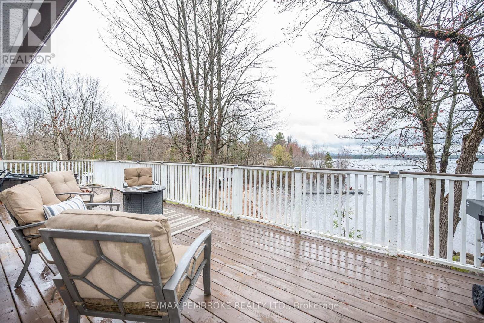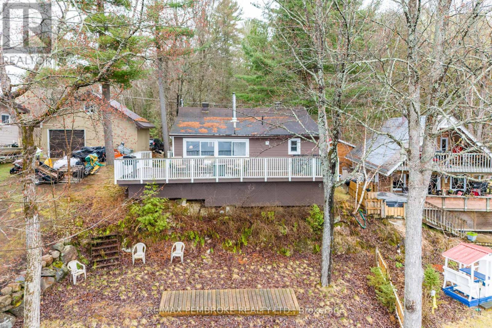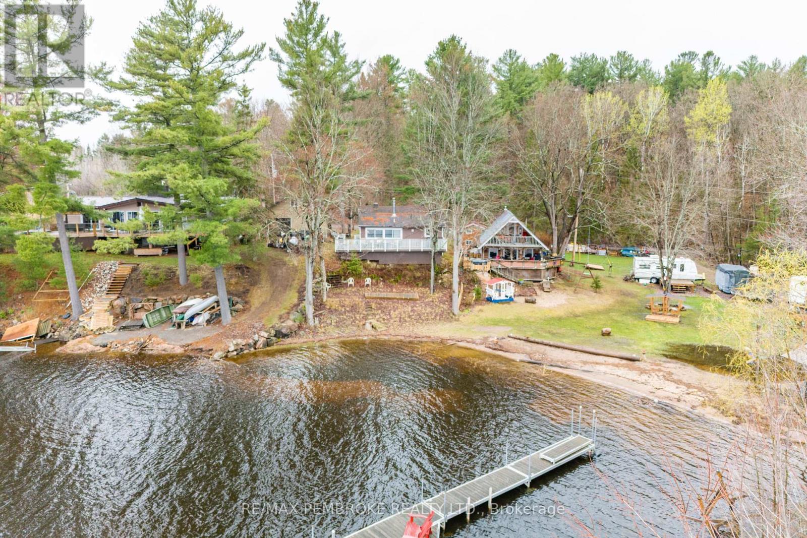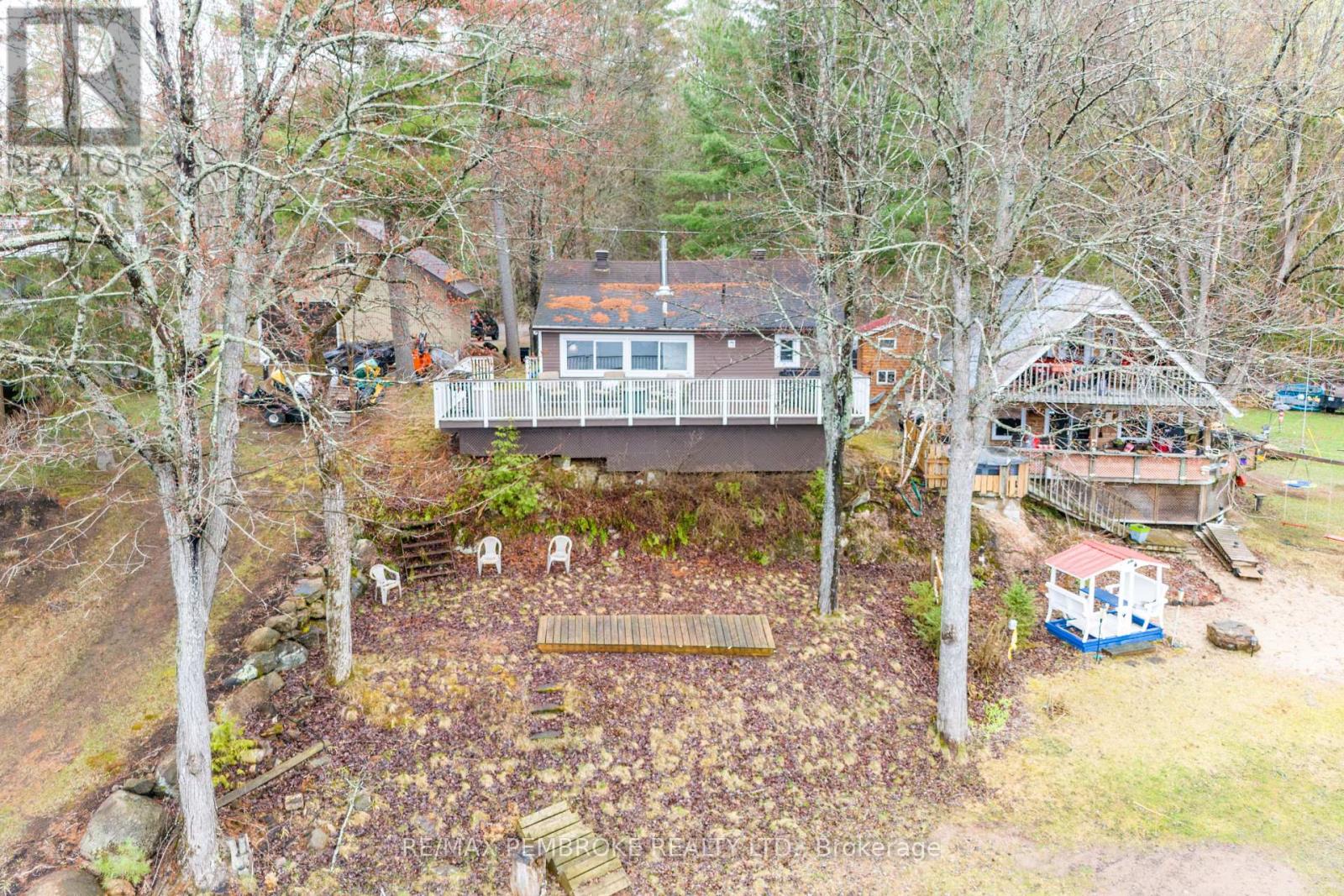 Welcome to your own boutique four-season retreat on the shores of the Ottawa River - where breathtaking sunsets and peaceful waterfront living become part of your everyday life. Tucked away on a private road and just minutes to Garrison Petawawa, this move-in ready home is the perfect blend of comfort, style, and convenience.Thoughtfully updated throughout, this charming home features a beautifully renovated kitchen and bathroom, new flooring, and fresh paint, creating a modern and inviting space. The open-concept living area is warm and welcoming, highlighted by a cozy propane fireplace - perfect for relaxing winter nights.Designed for easy living, the home offers one spacious bedroom that comfortably fits a king-size bed, making it ideal for professionals, down sizers, or those seeking a serene escape.Step outside to the wrap-around front deck and take in the incredible river views and unforgettable sunsets-your own private staycation, every day. A detached shed with power provides excellent storage or workspace for hobbies and outdoor gear.Additional features include 200 amp service and all appliances included-just move in and enjoy.Whether you're looking for a full-time residence or a peaceful waterfront getaway, this unique property offers an exceptional lifestyle in a highly sought-after location. THIS HOME WAS NOT AFFECTED FROM FLOODING IN PAST YEARS, ELEVATED FROM FLOOD PLAIN. 24 hour irrevocable on all offers. (id:64974)