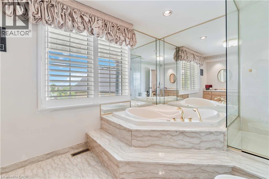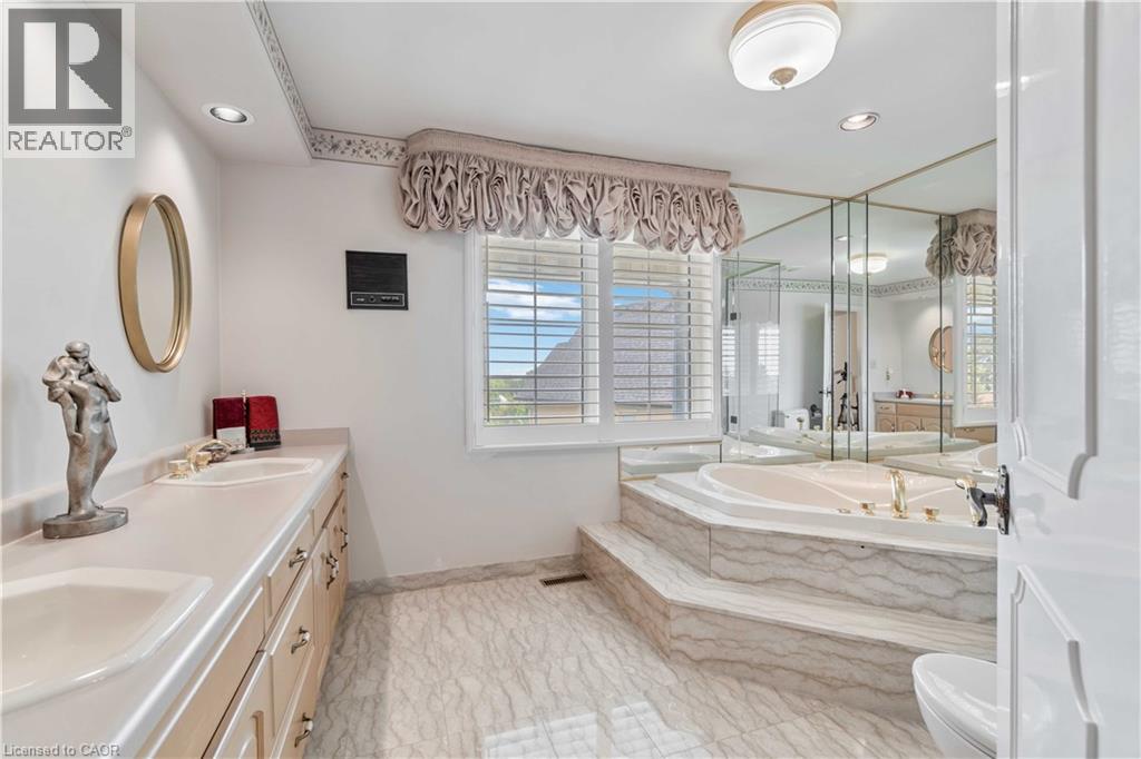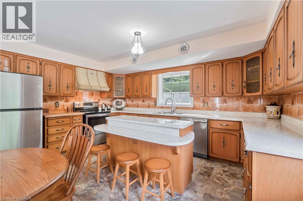 This one owner stately set home had much passion and thought placed into the design with quality materials and workmanship that have surpassed the test of time. This impressive home features In-Law/multigenerational family potential with a separate entrance from the garage into the lower level basement area offering a second kitchen, bathroom, bedroom and rec room with wood burning fireplace. A magnificent (approx.23ft x 38.5ft) terrace sits above the oversize garage off the main floor kitchen with a view of the rear yard backing onto the escarpment plateau! Roof Re-shingled (2022) & Flat Roof Area (2020);Windows on 1st and 2nd level (approx 2009); Sliding glass doors in family room and main floor kitchen (approx 2007); Sectional garage single door replaced in 2023 and asphalt sealer applied to driveway in August of 2024. (id:64974)
