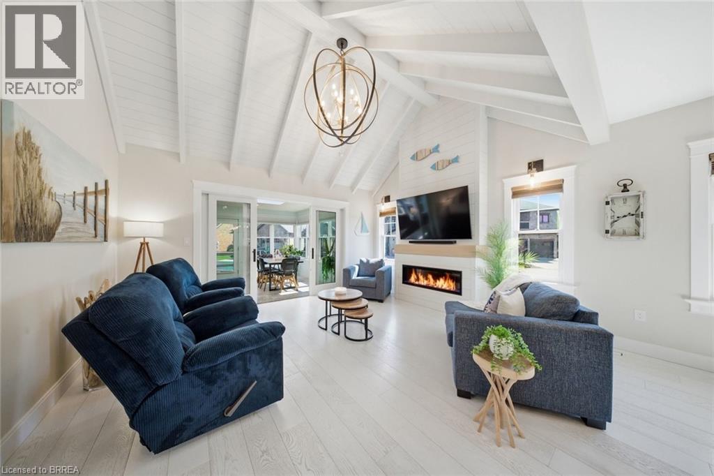 Do you ever close your eyes at night and dream of living on water? The vision of waking up every day to the crashing waves and fresh air? You keep telling yourself ‘One day’.. Well, the time is NOW, and in one of the most exclusive gated waterfront communities around. Welcome to unit 20 of 80 New Lakeshore Road in the famous little town of Port Dover. This home was built and designed nothing short of spectacular, boasting over 1500 square feet of cozy yet airy living space, complimented with some of the most breath taking modern finishes you've ever seen, as if it was pulled straight out of a magazine. As soon as you step through the door you can't help but say Wow around every turn, from the gorgeous whitewashed engineered hardwood floors, to the open concept kitchen with gold vein quartz counters and views of the lake from almost every window. You can pinch yourself, but I promise you aren't dreaming. Just imagine how much pride you would take when designing, building and decorating your own custom home, well this is exactly that. Every inch of this home will impress, from the vaulted ceilings that give it a Muskoka charm, to the Marvin windows and doors throughout, even down to the engineered studs behind the walls, there was no expense spared and no detail overlooked. The bungaloft floor plans offers arguably the best use of space, with the primary bedroom on the main level, fully equipped with a walk in closet, in-suite laundry and private ensuite bath, it offers the perfect layout for anyone who wants main level living. Out back is a 4 season sunroom, equipped with it's own fireplace and tv, with a walkout to your own fully enclosed hot tub.. paradise awaits. This community is your dream destination come true, with a lively and connected community of neighbours, a private tennis court, swimming pool and private beach there’s never nothing to do. Give yourself the luxury of being on the water without the seasonal upkeep that comes with it. Welcome HOME. (id:64974)