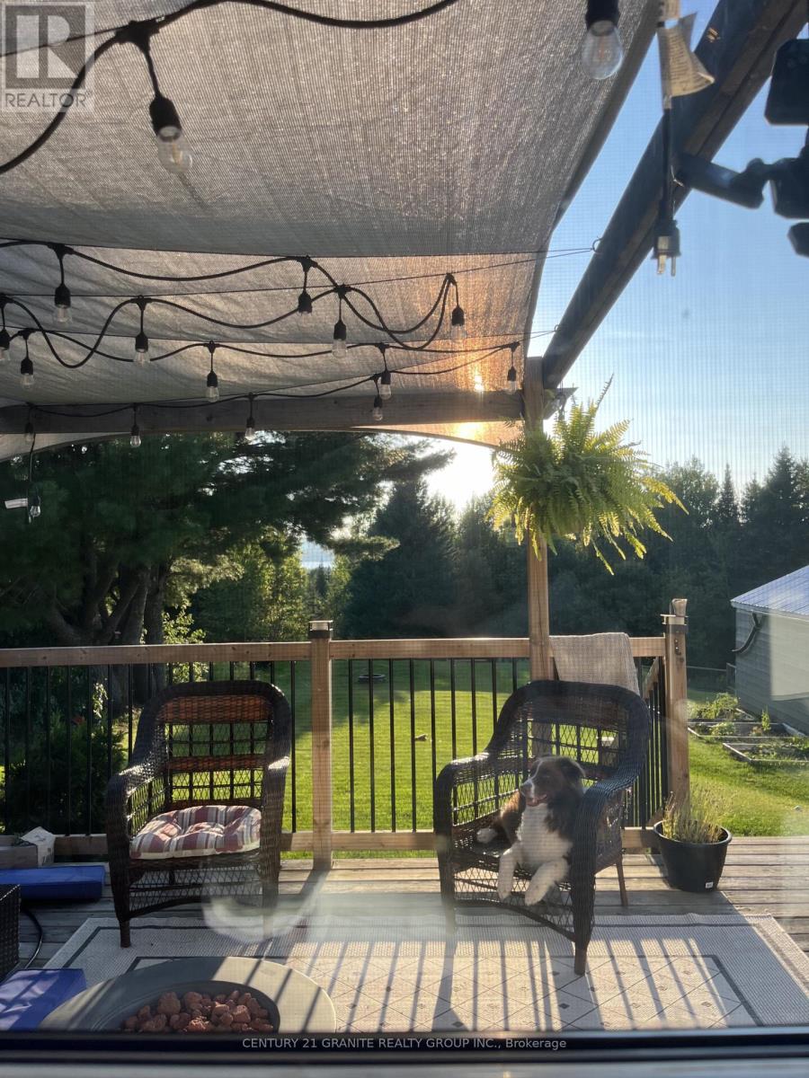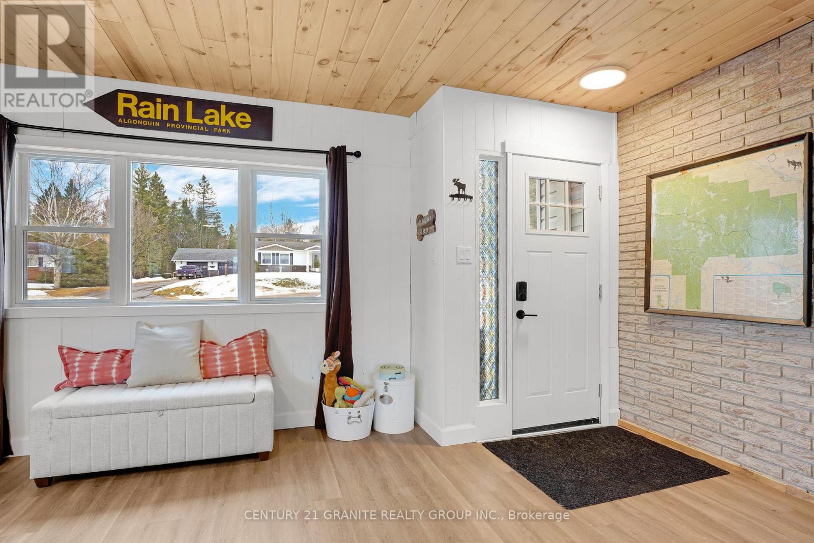 Your year round getaway awaits! This charming 2-bedroom, 2-bathroom home sits in a private setting with breathtaking views over Galeairy Lake-home to the well-known Couples Resort-you'll enjoy stunning sunsets right from your own back deck. Access to many acres of crown land adjoins the property for added privacy. Inside, the home features a spacious, light-filled living room and an updated kitchen with modern finishes and all updated appliances. The fully finished basement adds valuable living space, while the main floor offers potential for a third bedroom facing lakeside, making this home flexible for families, guests, or a home office space. Over the last few years, this property has seen extensive upgrades, giving peace of mind for years to come. Improvements include a new propane furnace (2020), 8 new windows (2024), updated supply PEX plumbing (2025), new 100 amp panel, and a WETT-certified woodstove in the cozy family room. Fresh flooring and paint throughout complete the move-in-ready feel. Step outside to a fully fenced, private back yard-perfect for relaxing, entertaining, or letting kids and pets roam safely. A double paved driveway leads to the detached garage which provides excellent storage or workshop space, and the property is equipped with GenerLink connection for added convenience. Outdoor enthusiasts will love the direct access to the OFSC B trail right from the property, as well as being just a short drive to Galeairy Lake Beach. Located close to Whitney for everyday amenities and only minutes from the world-renowned Algonquin Park, this home is an ideal year-round residence or recreational getaway. Lakeside views, privacy, and modern upgrades all in one package. (id:64974)
