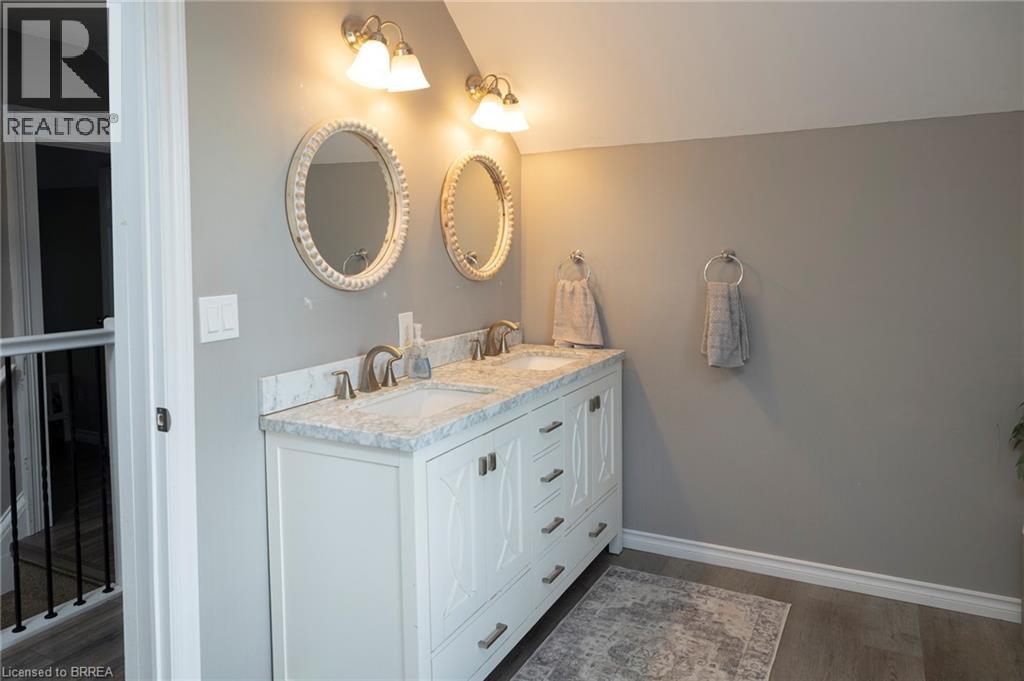 Move in ready, country village family home located in the lovely town of Norwich, approx. 20 mins to Woodstock and Hwy 401/403. This home features 3 spacious bedrooms with great closet space and two beautifully renovated bathrooms. The updated kitchen is located at the rear of the home and features modern cabinets, counters, under cabinet lighting, back splash, flooring, and with all major appliances included. A family room is also located just off the kitchen and features a gas fireplace and patio door leading to a wonderful backyard and deck, ideal for entertaining and summer BBQ's. Spacious dining room with breakfast bar and living room with accent pillars, pot lighting and crown molding. The main floor also features the primary bedroom with ensuite privilege, ideal for those who do not wish to climb stairs. 2 spacious bedrooms are located on the second level, the largest with a walk-in closet. Another fully updated bathroom with double sinks and quartz countertop, a convenient bedroom level laundry is tucked away and another bedroom round out the upper level. This home also features an oversized, heated and insulated attached garage (approx. 24 x 16 ft) with front and rear overhead doors plus man door and inside entry into the home. Recent updates include newer windows, furnace and central air. This home is move in ready, great value, and will not disappoint. Book your private viewing today. (id:64974)