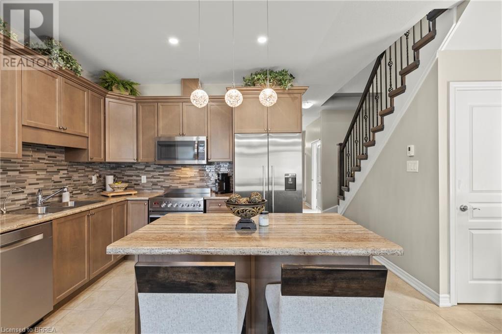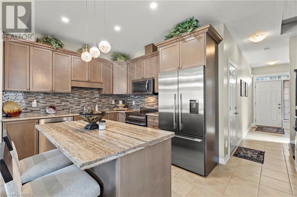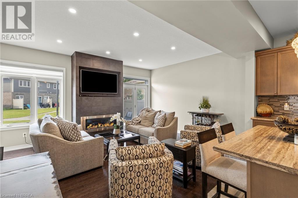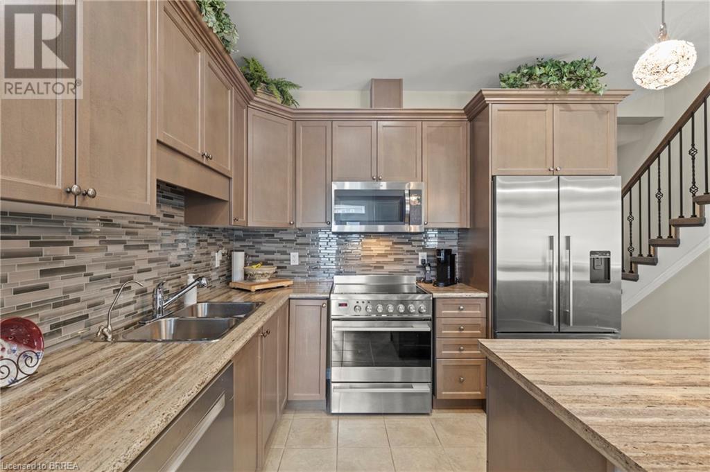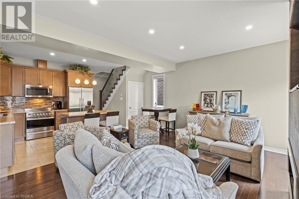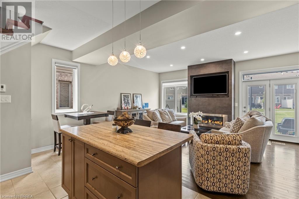 Welcome to 80 Willow Street, Unit 67 – a beautifully upgraded end-unit townhome in the heart of charming Paris, Ontario. This carpet-free home offers over 3 levels of thoughtfully designed living space, featuring 3 spacious bedrooms and 2.5 bathrooms, perfect for families or professionals seeking comfort and style. Step inside to find a bright, open-concept main floor complete with a stunning floor-to-ceiling fireplace, hardwood flooring, pot lights, top down bottom up window coverings, and custom kitchen cabinetry that adds both elegance and functionality. The main level also includes a convenient 2-piece powder room off the entry and access to a single-car garage. Leading out the back French Doors, the Backyard backs onto the Condo's Greenspace. Upstairs, you'll find a finished laundry room, a generous 4-piece main bathroom, and three well-appointed bedrooms with vinyl flooring throughout this level. The primary suite is a true retreat, boasting a private 4-piece ensuite and ample closet space. Enjoy the benefits of low condo fees in a well-maintained community that is walking distance to downtown Paris, known for its boutique shops, restaurants, and scenic riverfront. With easy river access and just minutes to Highway 403, this location offers the perfect balance of small-town charm and commuter convenience. Don’t miss your chance to own this upgraded, move-in-ready end unit in one of Ontario’s most desirable communities! (id:64974)
