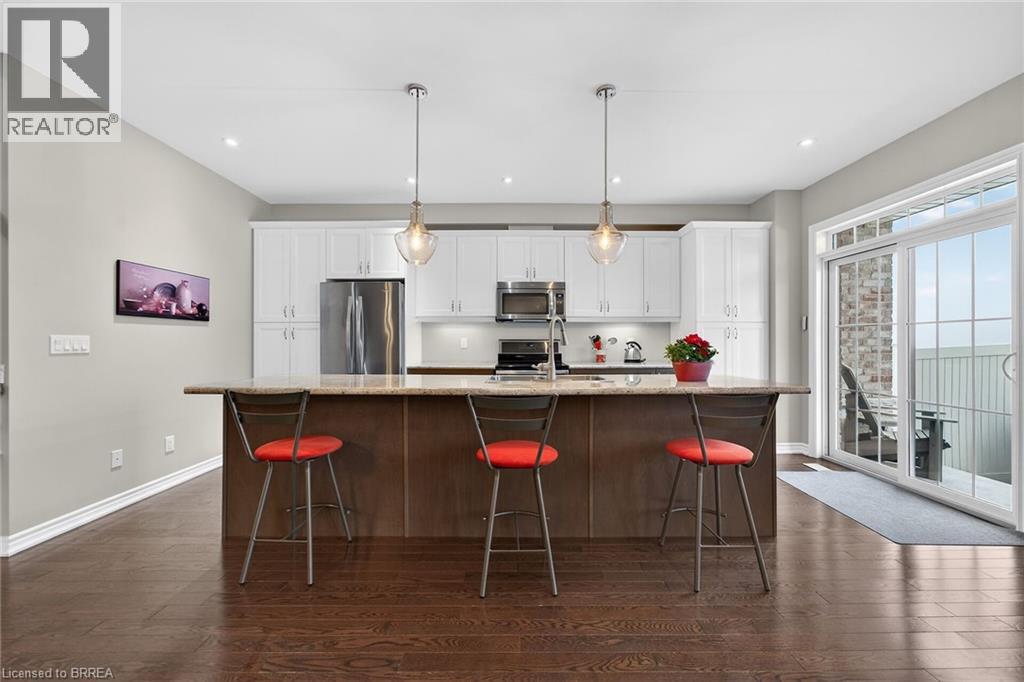 Welcome to this beautifully maintained 11-year-old, 3-bedroom, 2-storey townhome backing directly onto the scenic Grand River in the heart of Paris. Offering a rare combination of low-maintenance freehold living and tranquil natural surroundings, this home is perfect for families, professionals, or downsizers alike. Enjoy peaceful river views and the sights and sounds of nature right in your backyard, with no rear neighbours and a picturesque setting year-round. The thoughtfully designed layout features bright, open living spaces, generous bedrooms, and excellent functionality for everyday living. Located in a sought-after community, just minutes from downtown Paris, walking trails, parks, schools, and amenities, this is a wonderful opportunity to enjoy riverside living in one of Ontario’s most charming towns. Enjoy morning coffee on your private balcony overlooking the river off your master bedroom. Upgrades include Power rear Awning, and front and rear matching interlocking brick/stone walkway. (id:64974)