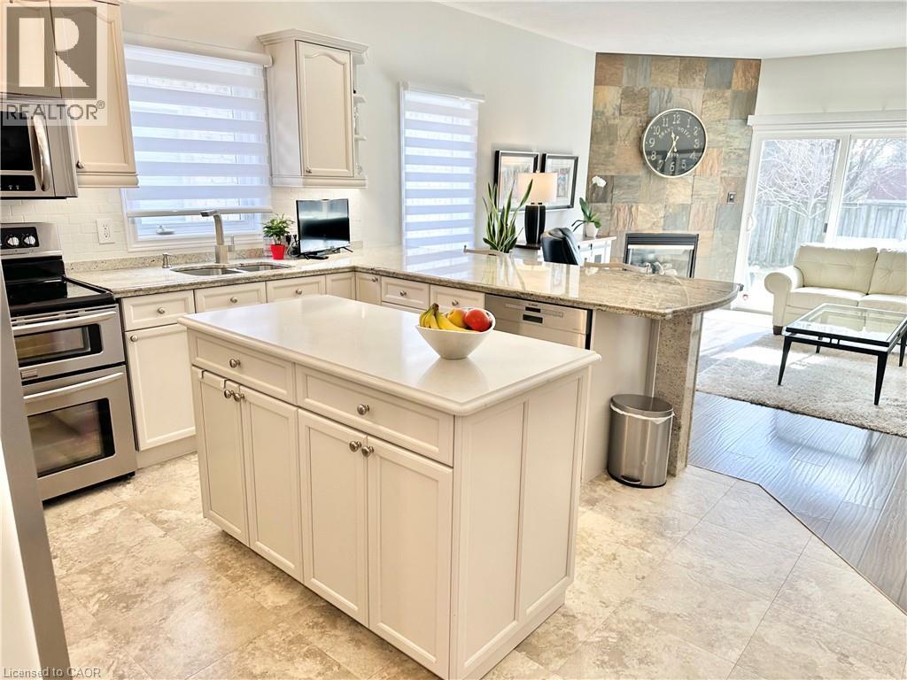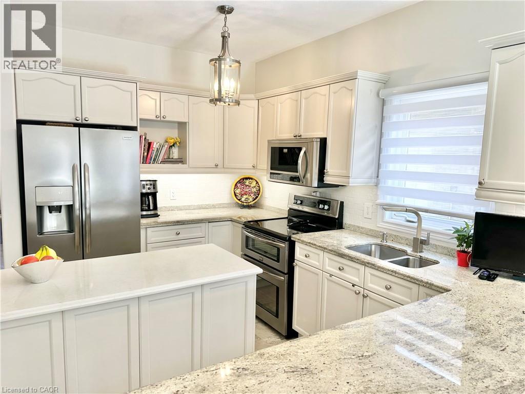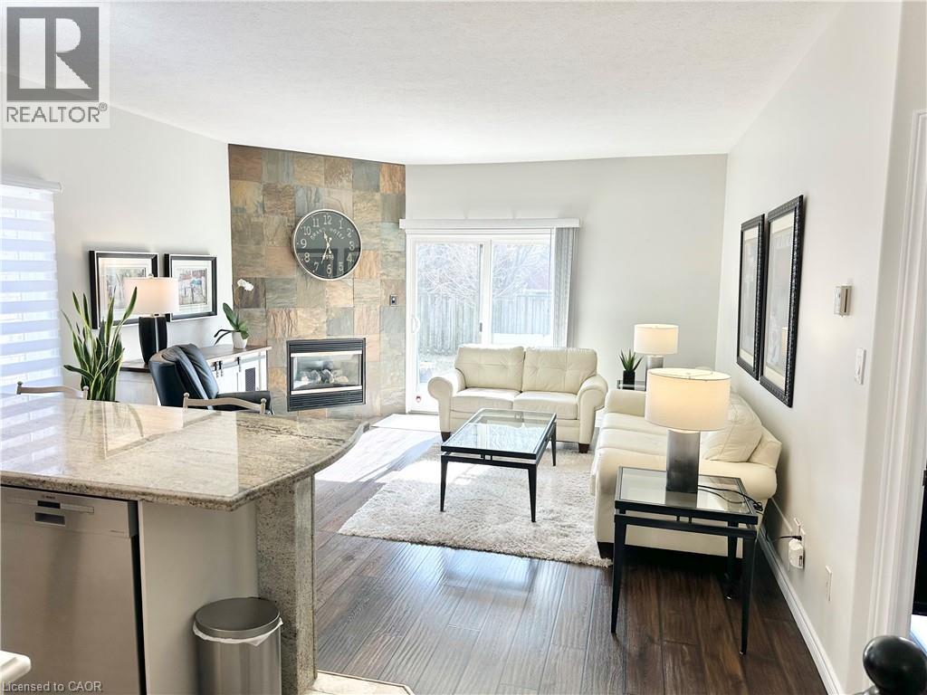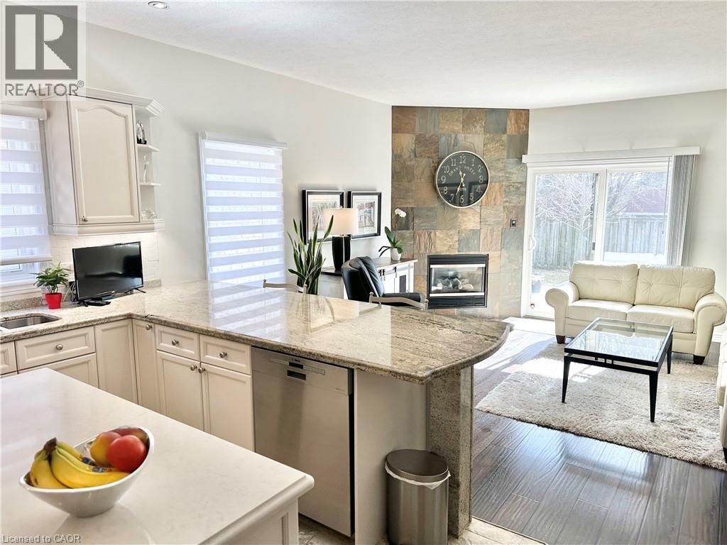 Beautifully decorated end-unit bungalow condo located close to the lake and downtown shopping. This lovely home features granite and quartz countertops, stainless steel appliances, and a bright eat-in kitchen perfect for everyday living. The spacious living room includes a cozy gas fireplace and patio doors that lead to a large deck with a natural gas hookup, ideal for outdoor entertaining. A separate, large dining room showcases hardwood floors and elegant French doors, creating a perfect space for hosting family and friends. The fully finished basement offers additional living space with a large office area and an extra bedroom, providing flexibility for guests, work-from-home needs, or hobbies. A wonderful opportunity to enjoy comfortable, stylish living in a desirable location. (id:64974)