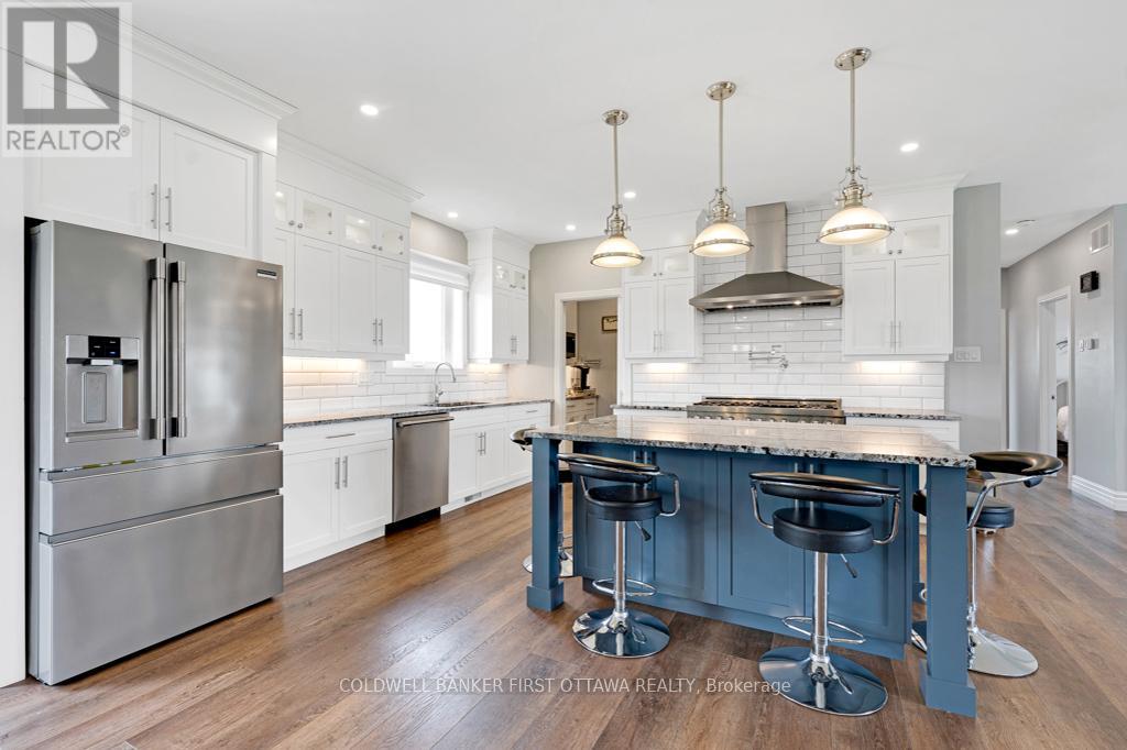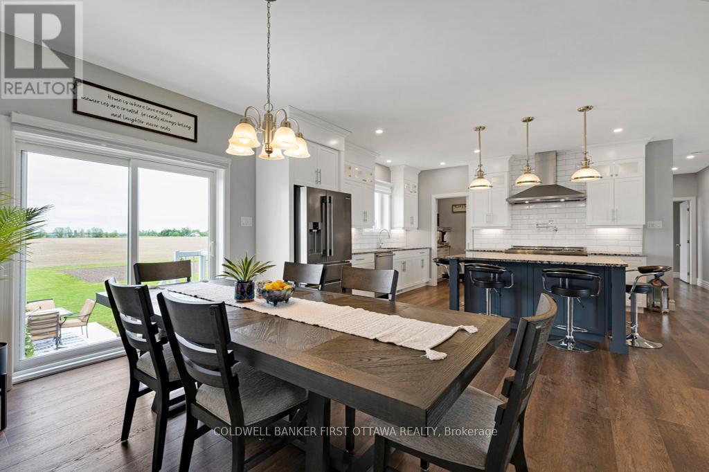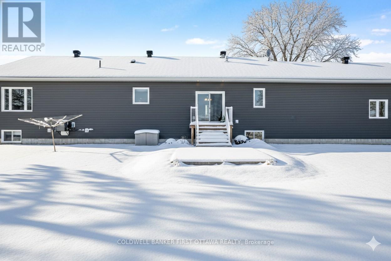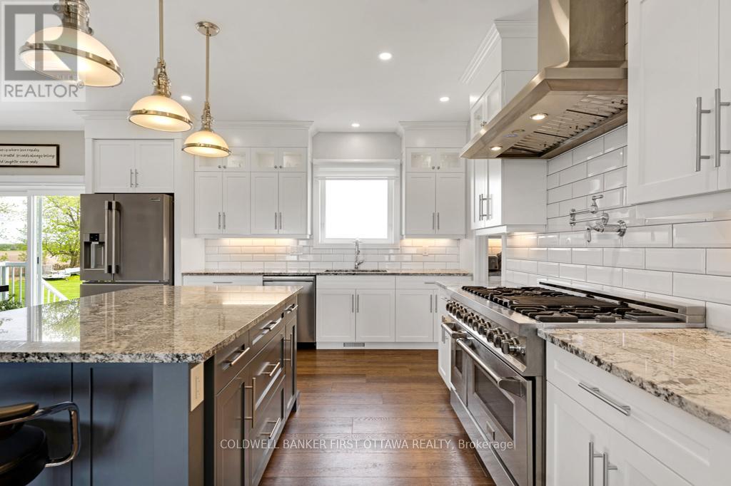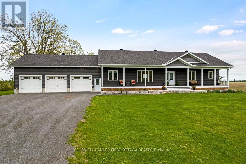 New 2022 bungalow with upscale quality and curb appeal on 1.5 country acres, just outside the friendly village of Pakenham. Welcoming Trex verandah is first of many desired features this superior-built 3 bedroom, 2 full bathroom home offers. Sunny spacious open plan with 9' ceilings. Luxury vinyl plank floors flow thru main level. Livingroom showcases Nantucket Eldorado stone fireplace that has propane insert with big glass face and reflective back, creating mesmerizing fire. Custom Dell windows have wide sills due to thickness of upgraded insulated ICF walls. Dining area patio doors to patio. Kitchen sparkles with all its modern detailing including Alaska solid wood cabinets, under counter lighting, beveled subway backsplash and upper glass display cabinets with interior dimmer lights. You also have built-in charging station for electronics. The family chef will appreciate Zline propane stove with pot filler and electric double ovens plus, grand island-breakfast bar. Impressive Butler's pantry has granite counters, Alaskan cabinets, microwave nook and coffee station with pot filler. The spa primary suite retreat has large windows for peaceful country views; walk-in closet with tiered rods, cabinets and pot lights. The 5-pc ensuite's cabinets flank two-sink granite vanity; two-person soaker tub with floor mounted waterfall faucet; glass shower body spray & rain head. Two more bedrooms, 4-pc bathroom, laundry room and mud room. Lower level polished concrete floor in expansive family room and rec room plus, sliding barn door to exercise room. Lower level partly finished, awaiting your finishing plans. Hot water on demand. Hookup for a portable generator. Attached heated insulated 3-car has finished drywall and overhead propane heater; inside entry to both main and lower levels. Large vegetable garden. Bell high-speed. Cell service. On municipal maintained road with curbside garbage pickup and school bus route. 10 mins to Pakenham golf course & ski hill. 25 mins Kanata (id:64974)