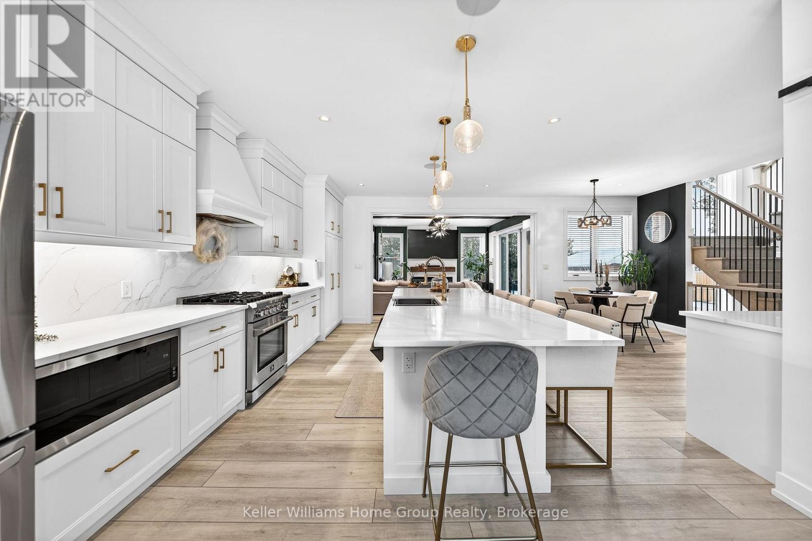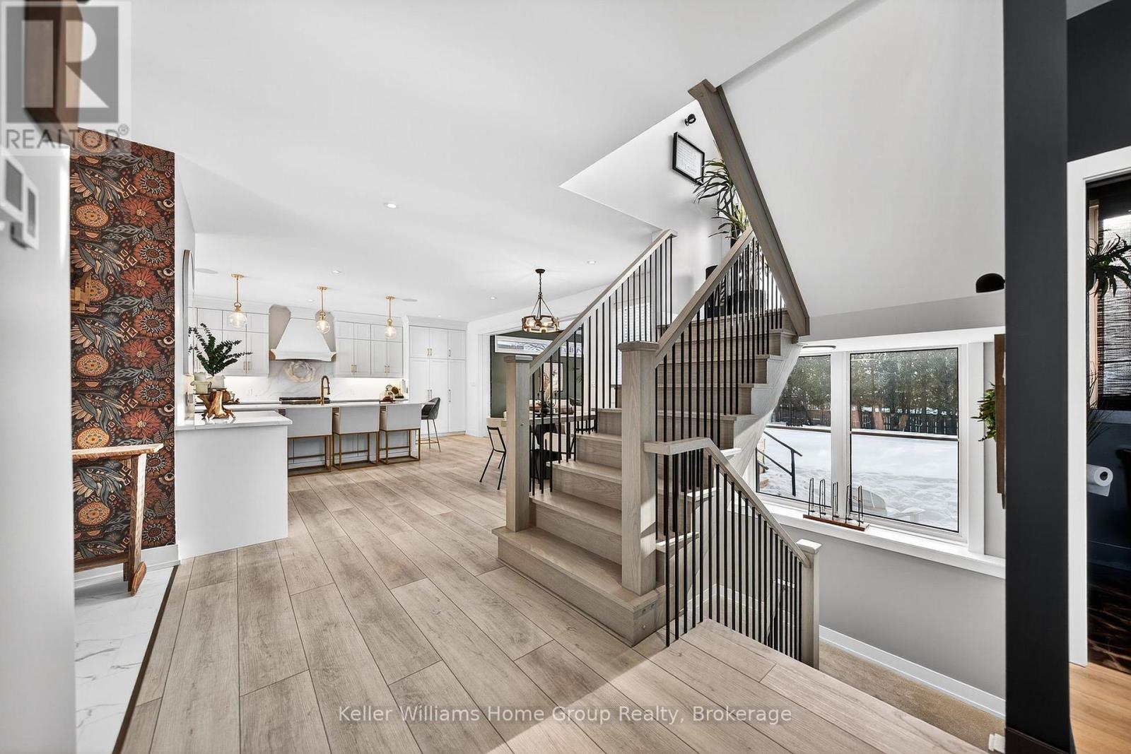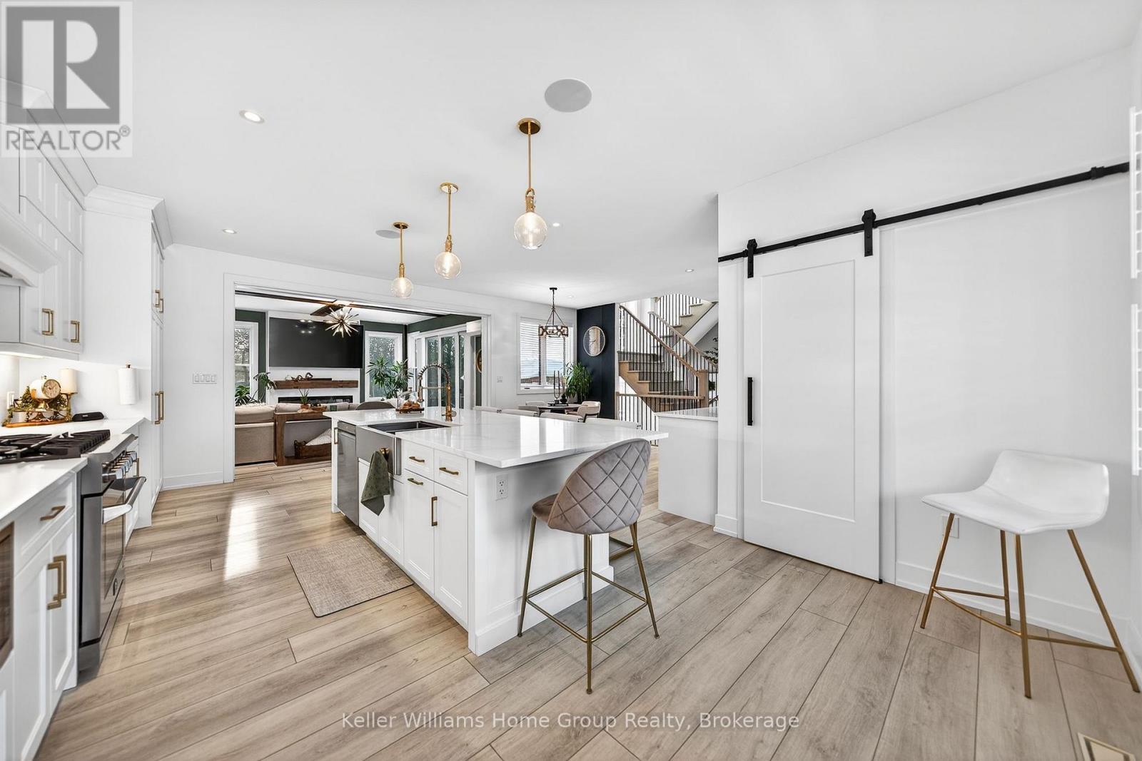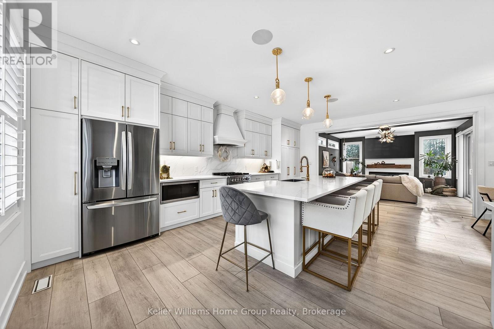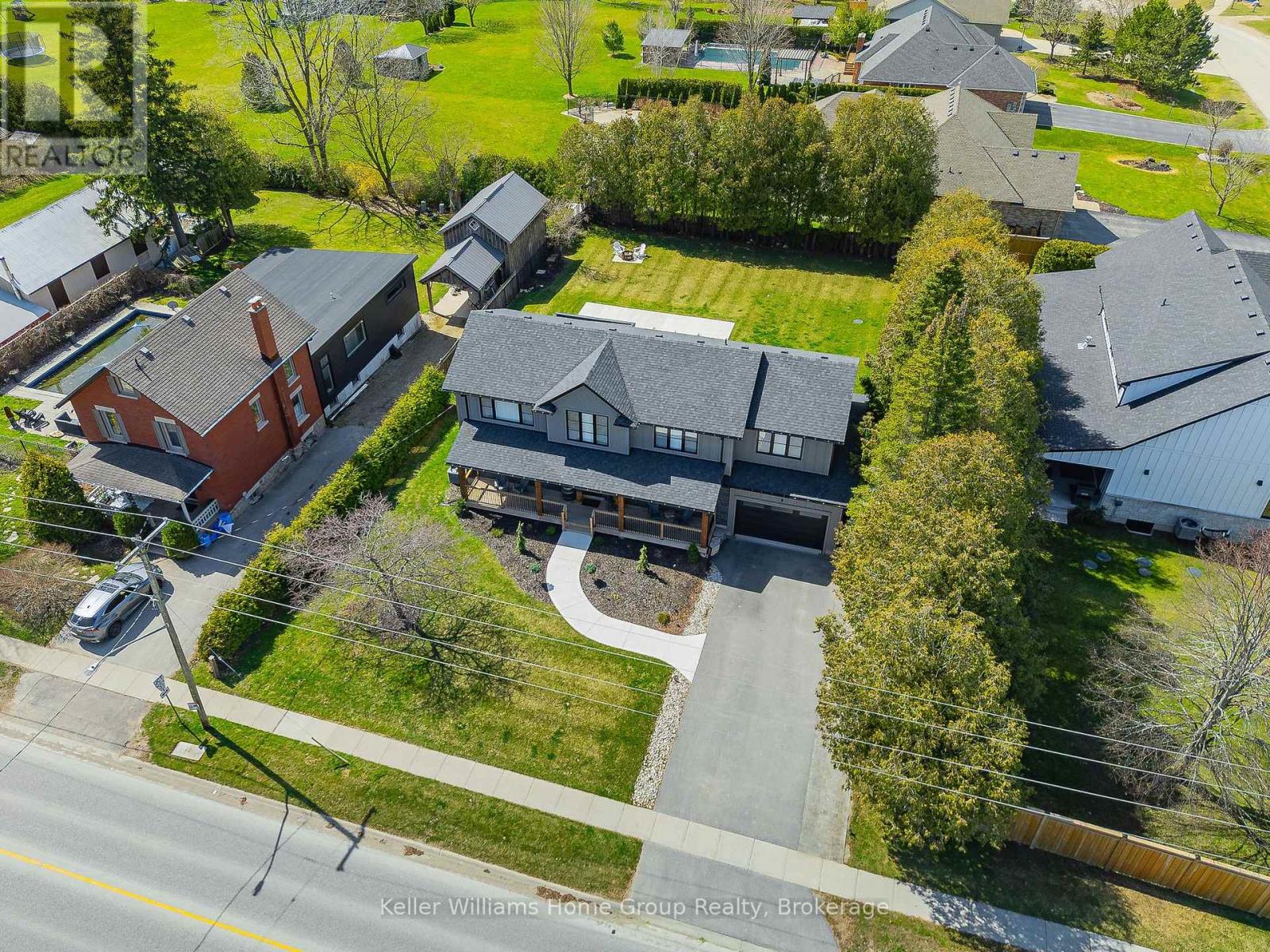 Rare Arkell opportunity offering luxury country living with city convenience - homes in this sought after community rarely come available. Set on a large private lot with a resort-style backyard, this four year old custom home delivers refined modern living designed for both entertaining and everyday comfort. Enjoy summer days by the sparkling saltwater pool, unwind beneath the elegant pergola and appreciate manicured landscaping with in ground sprinkler system, your own private outdoor retreat. Inside, open concept living unfolds beautifully. Just off the gourmet kitchen is a stunning, light filled family room, a true showpiece of this home, featuring a sleek linear fireplace with custom wood mantel, statement lighting and walls of windows that create an almost sunroom like atmosphere. Flooded with natural light and overlooking the backyard, this inviting space is perfect for morning coffee, family gatherings or cozy evenings by the fire. The chef's kitchen impresses with quartz countertops, premium appliances, sleek cabinetry and an oversized island with breakfast bar seating, thoughtfully designed for hosting and daily living. A dramatic staircase becomes an architectural focal point, highlighted by a skylight above and striking staked windows that fill the home with natural light and create an airy, elevated feel from the moment you enter. Upstairs, the primary suite offers a serene retreat with spa inspired ensuite including soaking tub, walk-in glass shower, and double vanity. Three additional bedrooms and a beautifully finished main bath private exceptional comfort for family and guests. The fully finished basement expands your living pace with an additional family area, two bedrooms and a full bathroom, ideal for guests teens or a home office. Located minutes to shopping, schools and parks this rare Arkell property delivers modern luxury, seamless indoor-outdoor living and the peace of country living with city access. (id:64974)