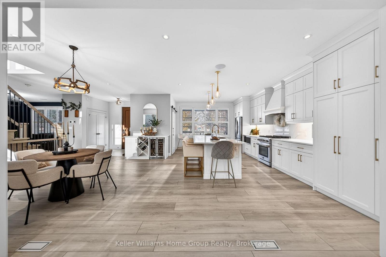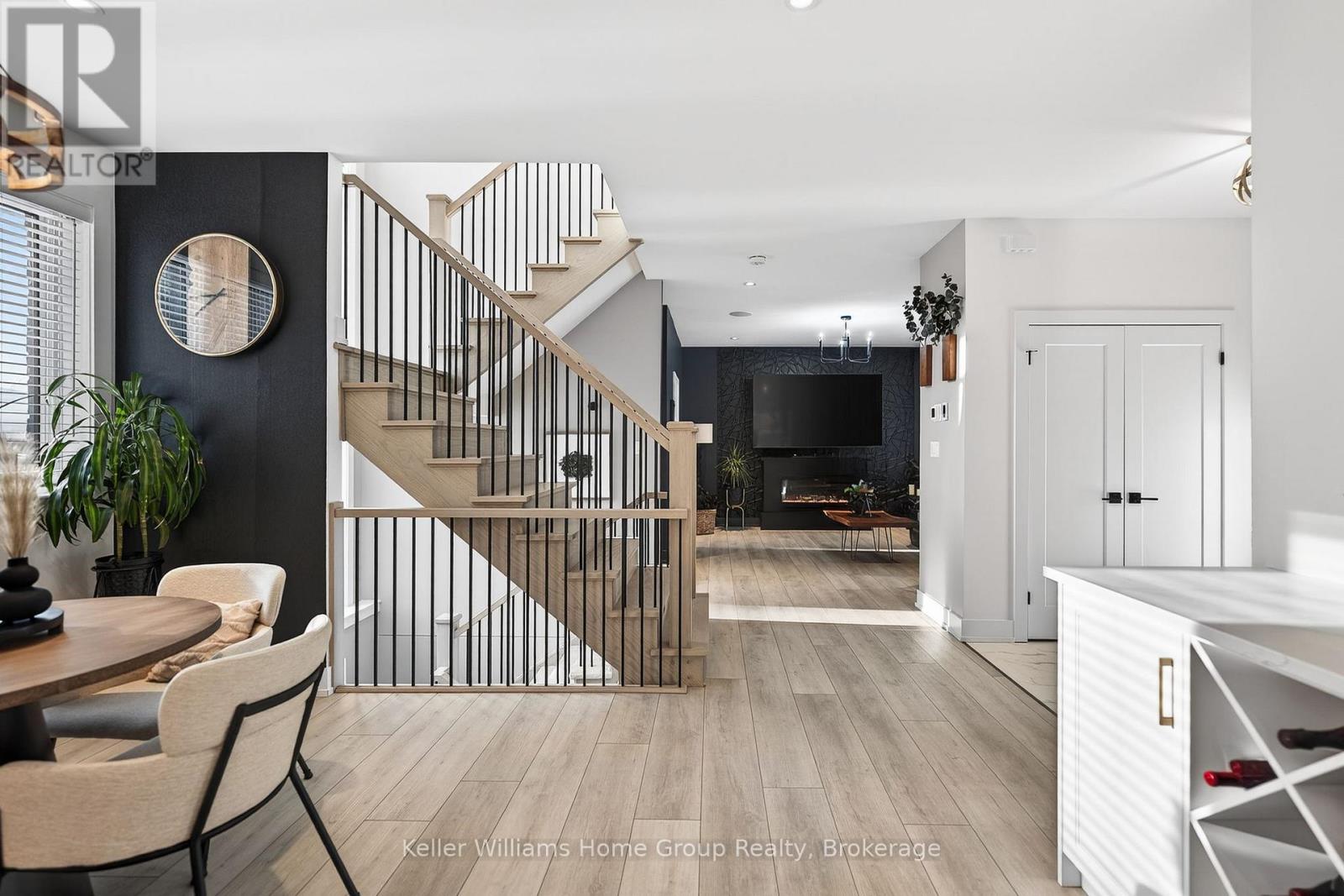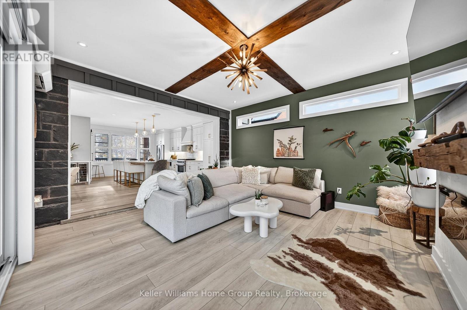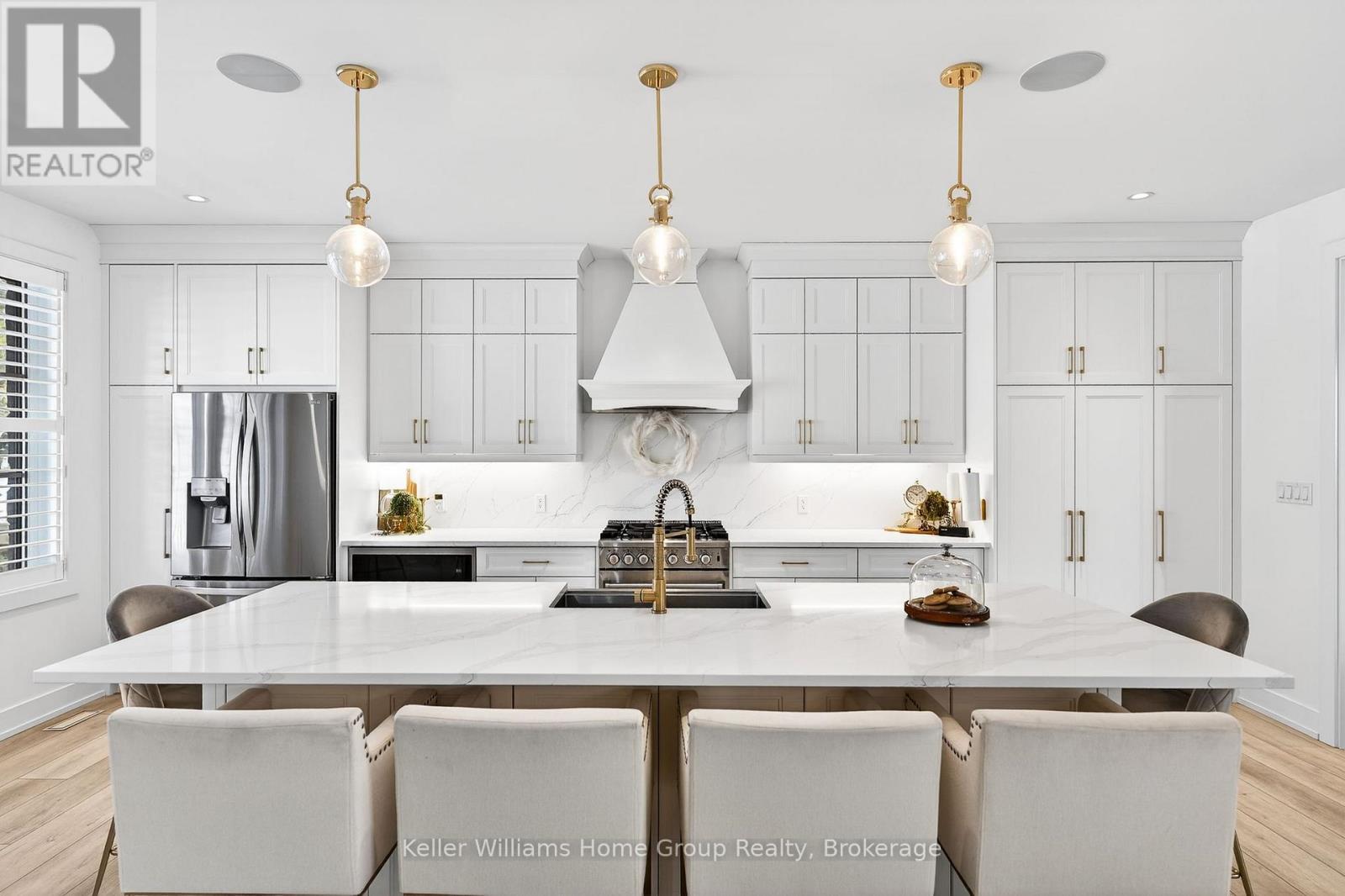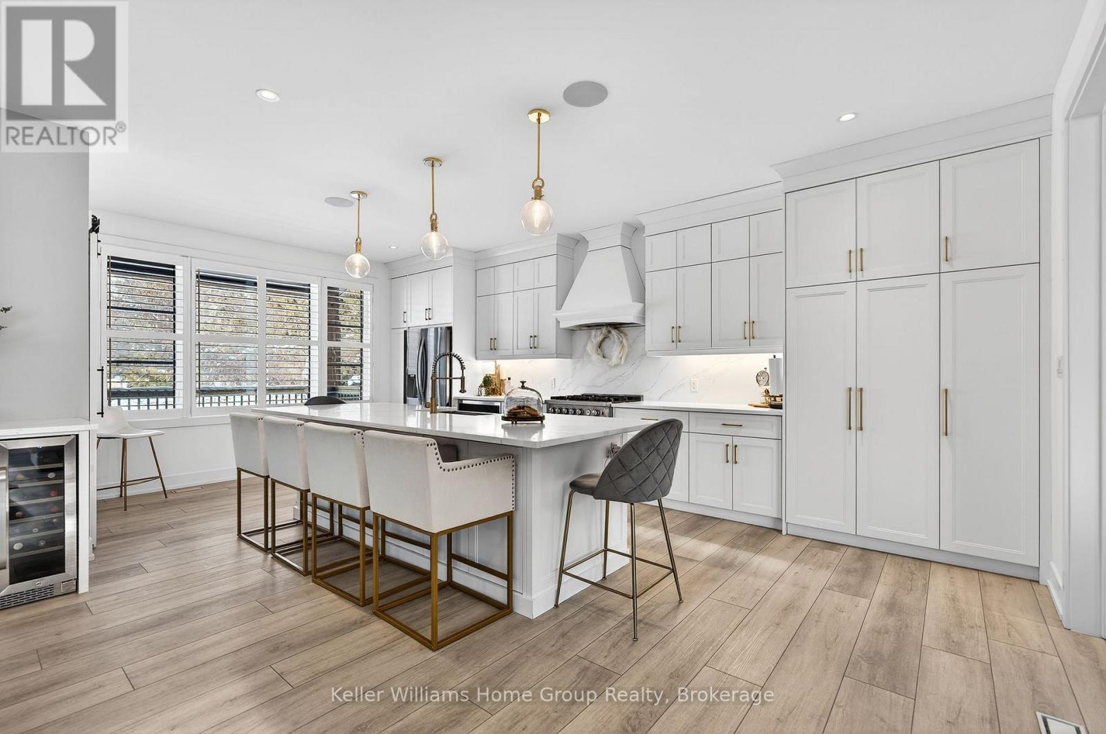 Rare Arkell opportunity offering luxury country living with city convenience - homes in this sought after community rarely come available. Set on a large private lot with a resort-style backyard, this four year old custom home delivers refined modern living designed for both entertaining and everyday comfort. Enjoy summer days by the sparkling saltwater pool, unwind beneath the elegant pergola and appreciate manicured landscaping with in ground sprinkler system, your own private outdoor retreat. Inside, open concept living unfolds beautifully. Just off the gourmet kitchen is a stunning, light filled family room, a true showpiece of this home, featuring a sleek linear fireplace with custom wood mantel, statement lighting and walls of windows that create an almost sunroom like atmosphere. Flooded with natural light and overlooking the backyard, this inviting space is perfect for morning coffee, family gatherings or cozy evenings by the fire. The chef's kitchen impresses with quartz countertops, premium appliances, sleek cabinetry and an oversized island with breakfast bar seating, thoughtfully designed for hosting and daily living. A dramatic staircase becomes an architectural focal point, highlighted by a skylight above and striking staked windows that fill the home with natural light and create an airy, elevated feel from the moment you enter. Upstairs, the primary suite offers a serene retreat with spa inspired ensuite including soaking tub, walk-in glass shower, and double vanity. Three additional bedrooms and a beautifully finished main bath private exceptional comfort for family and guests. The fully finished basement expands your living pace with an additional family area, two bedrooms and a full bathroom, ideal for guests teens or a home office. Located minutes to shopping, schools and parks this rare Arkell property delivers modern luxury, seamless indoor-outdoor living and the peace of country living with city access. (id:64974)
