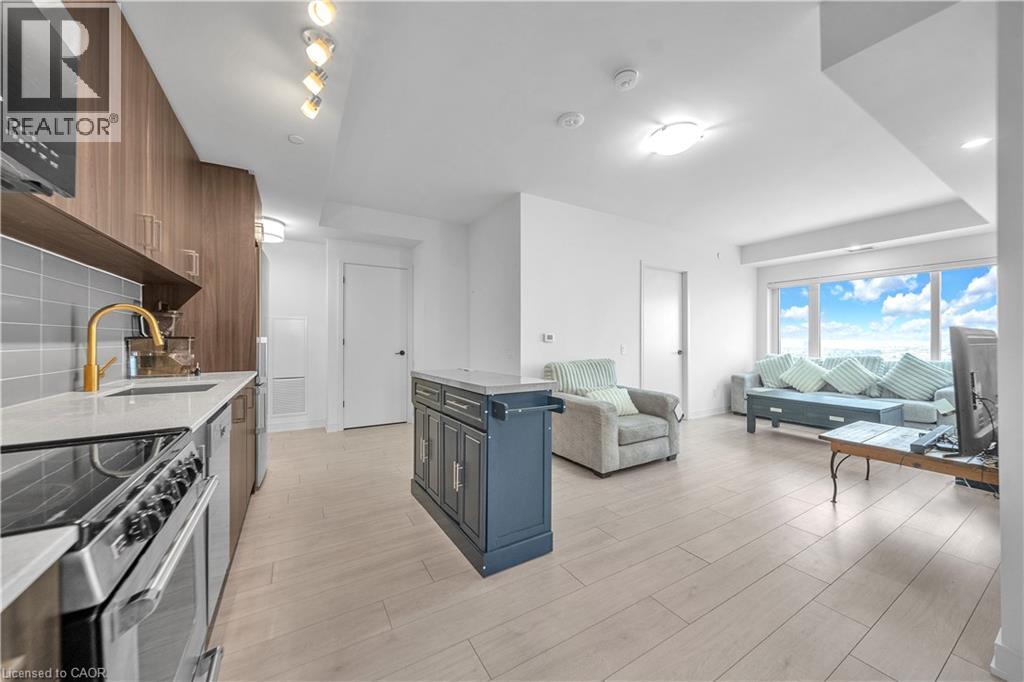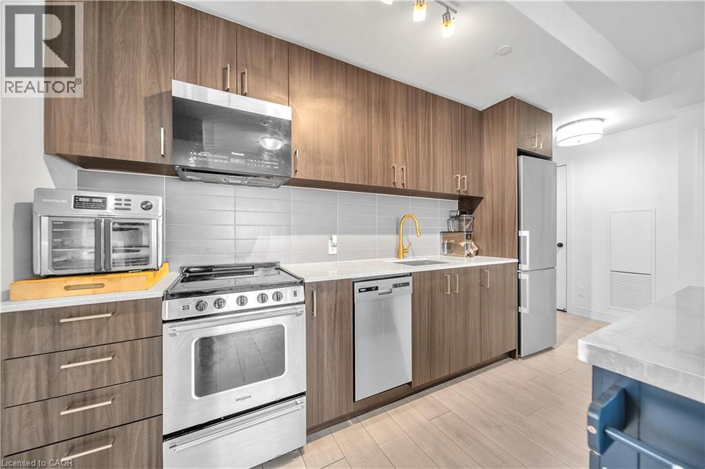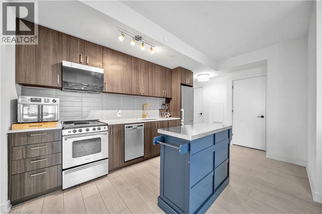 Discover modern living at Connectt Condos in Milton with this stunning one-year-old corner unit that perfectly blends style, comfort, and convenience. This bright open-concept layout features pot lights in the living area and large windows that flood the space with natural light, along with 2 spacious bedrooms plus a versatile den and 2 full 3-piece washrooms, including a private ensuite. The unit boasts a beautifully upgraded kitchen equipped with a stainless steel fridge, stove, dishwasher, and microwave/hood fan, sleek laminate flooring, and in-suite laundry. Step out onto the spacious private balcony, perfect for relaxing or enjoying scenic views of Milton. Added value includes one underground parking space and a locker. Residents also enjoy impressive common amenities, including a fully equipped gym, theatre room, game room, kids room, barbecue area, and party room. Ideally located in the heart if Milton, with easy access to transit, schools, recreation and community centres, as well as close proximity to the hospital, shopping, major highways, and the Toronto Premium Outlets, this condo offers an exceptional lifestyle and a fantastic investment opportunity. (id:64974)
