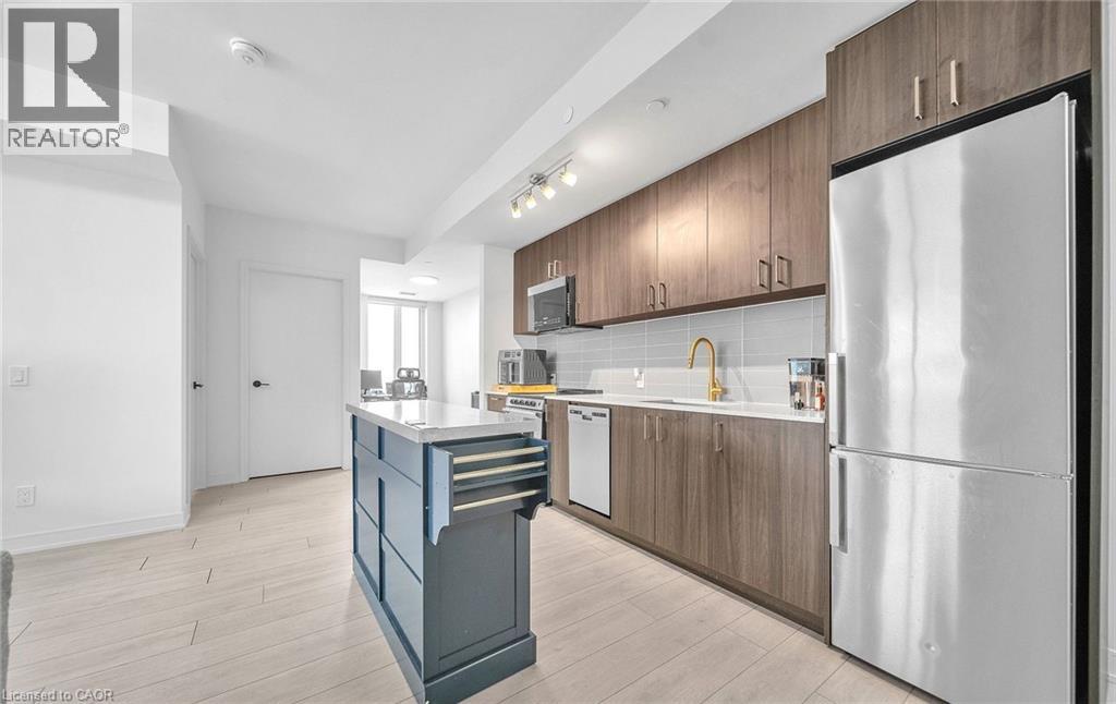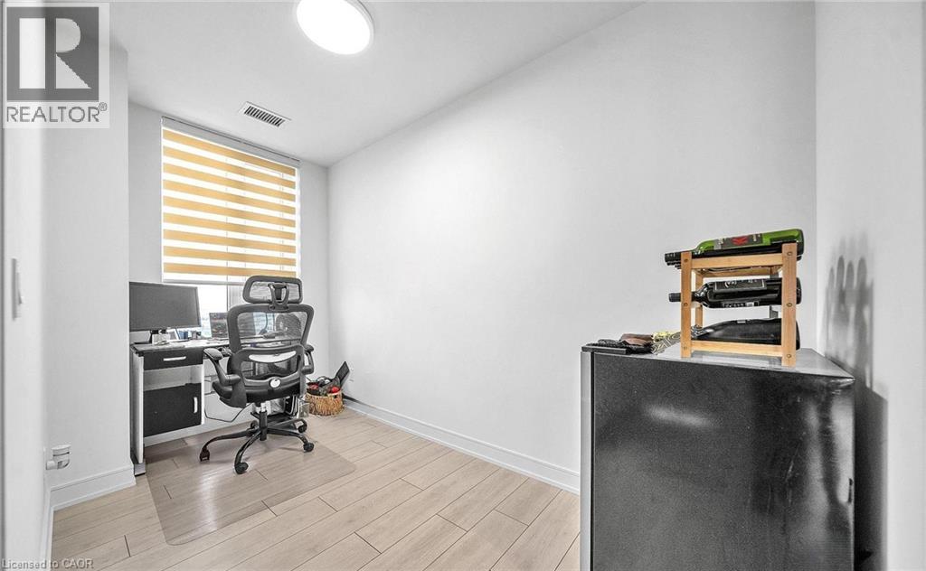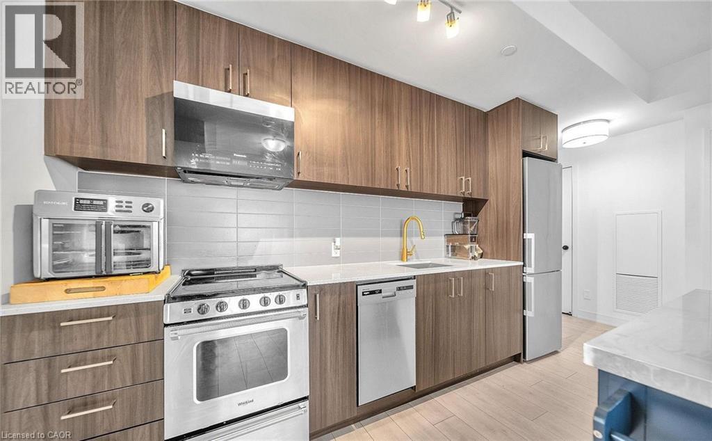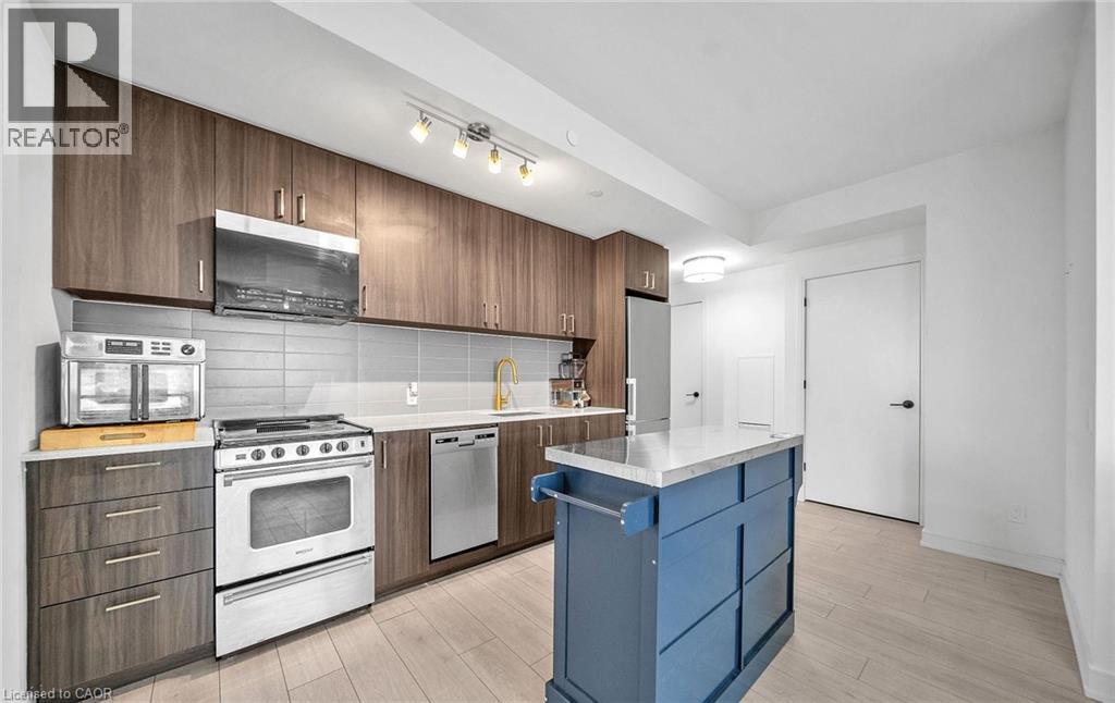 Discover modern living at Connectt Condos in Milton with this stunning one-year-old corner unit that perfectly blends style, comfort, and convenience. This bright open-concept layout features pot lights in the living area and large windows that flood the space with natural light, along with 2 spacious bedrooms plus a versatile den and 2 full 3-piece washrooms, including a private ensuite. The unit boasts a beautifully upgraded kitchen equipped with a stainless steel fridge, stove, dishwasher, and microwave/hood fan, sleek laminate flooring, and in-suite laundry. Step out onto the spacious private balcony, perfect for relaxing or enjoying scenic views of Milton. Added value includes one underground parking space and a locker. Residents also enjoy impressive common amenities, including a fully equipped gym, theater room, game room, barbecue area, and party room. Ideally located in the heart if Milton, with easy access to transit, schools, recreation and community centres, as well as close proximity to the hospital, shopping, major highways, and the Toronto Premium Outlets, this condo offers an exceptional lifestyle and a fantastic investment opportunity. (id:64974)