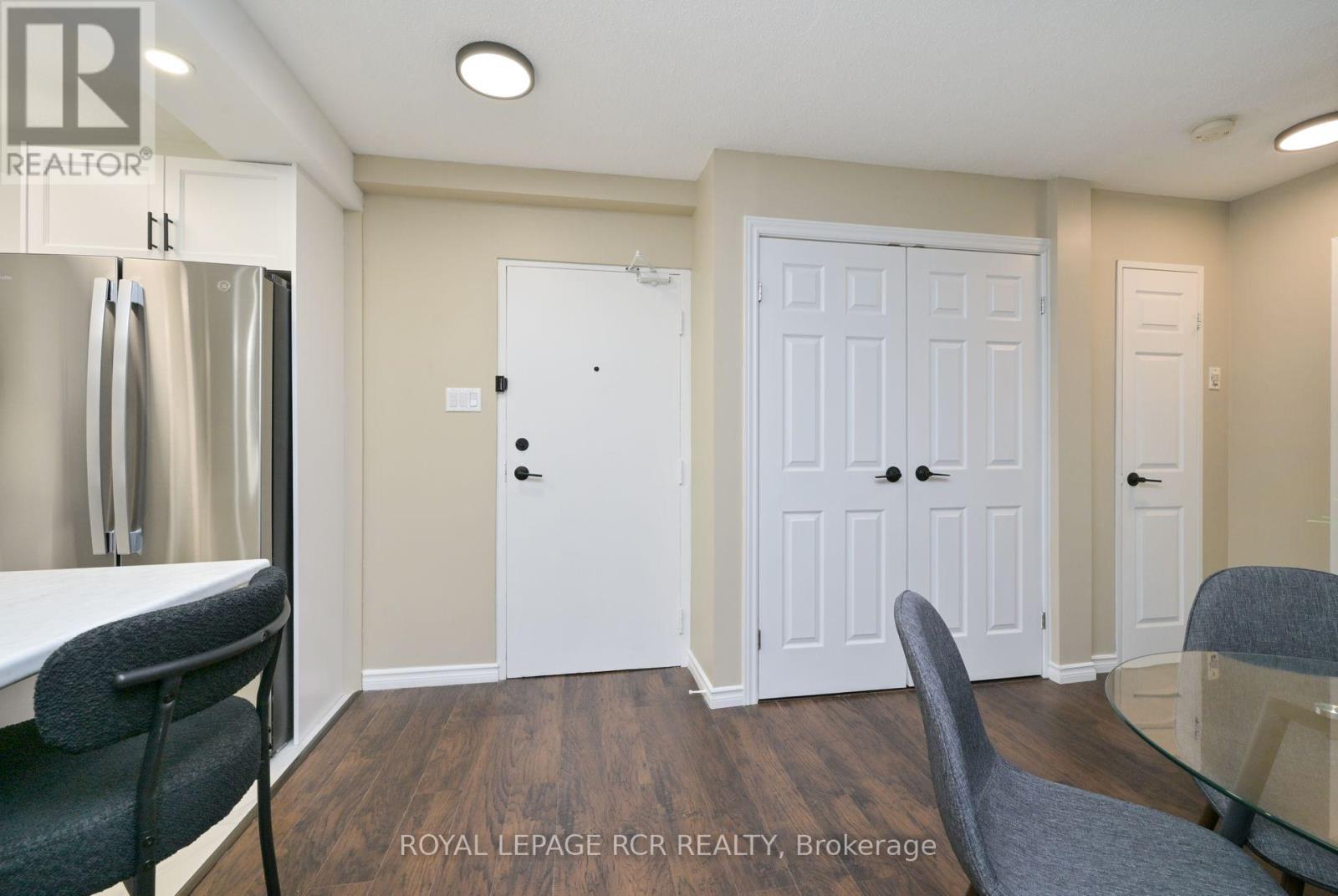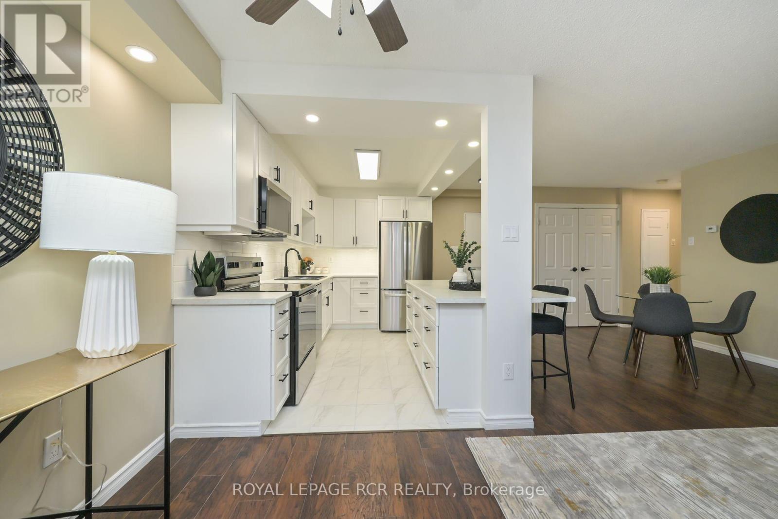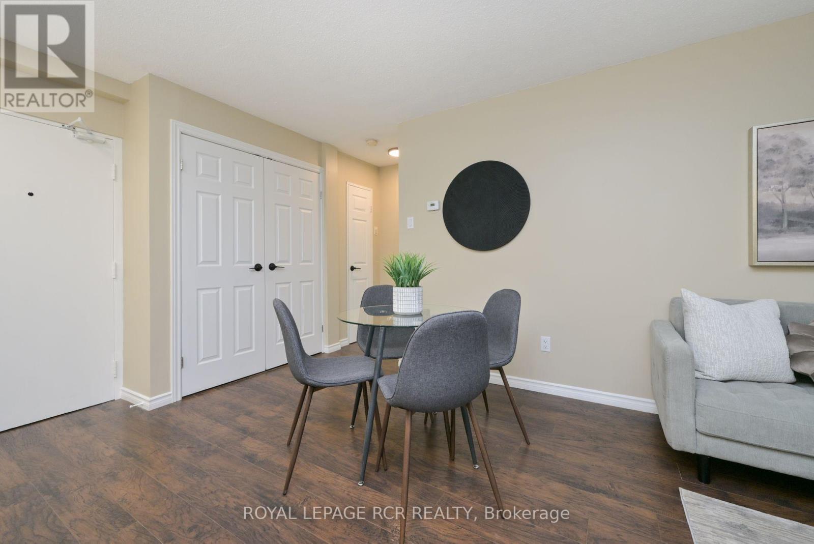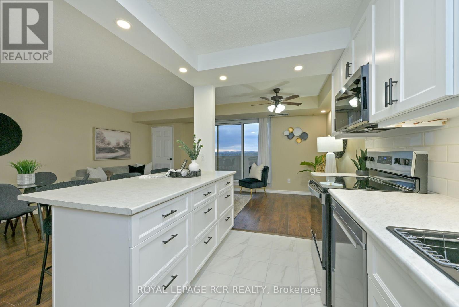 Discover a rare opportunity to own a fully renovated, move-in-ready condominium in one of Orangeville's most established and sought-after buildings...the Bromount. Perched on the 8th floor of The Bromount, this exceptional residence blends contemporary elegance with everyday comfort, offering breathtaking sunrise views, thoughtful upgrades throughout, and an unbeatable downtown location. Situated just steps from vibrant Broadway offering boutique shopping, fine dining, cozy cafes, all within steps from your front door. One of the home's most captivating features awaits the moment you step inside: a spectacular east-facing vista that captures both the character of historic downtown Orangeville and the tranquil beauty of Island Lake Conservation Area. Every inch of this condominium has been meticulously and stylishly updated. The brand-new kitchen serves as the centrepiece of the home with subway tile backsplash, sleek undermount lighting, stainless steel appliances, and a centre island adding valuable storage, prep space, and casual dining options. The open-concept layout flows directly into the dining and living areas, walkout to covered porch...perfect for entertaining. The upgrades continue! A beautifully redesigned bathroom, with walk-in shower with contemporary tile, a heated mirror that ensures clarity at all times, and a sophisticated vanity topped with quartz counters. Spacious primary bedroom boasting double closets that provide excellent storage. You'll also enjoy, new flooring, updated light fixtures and pot lights, stylish hardware, new interior doors, underground parking space (a true luxury during winter months), and dedicated storage locker. Residents of The Bromount appreciate the building's secure entry, friendly community atmosphere, and its reputation for being well-maintained. Welcome to your next chapter at The Bromount and welcome home. (id:64974)