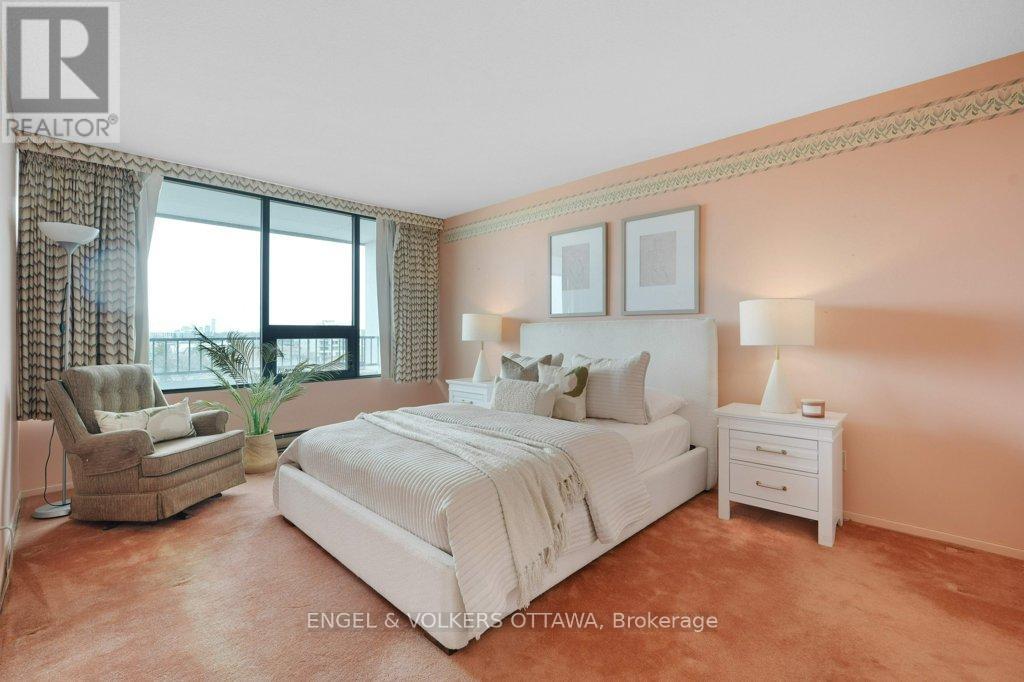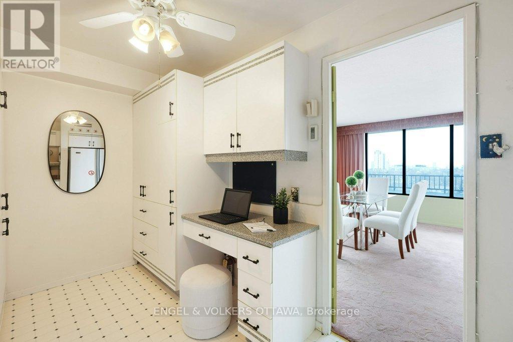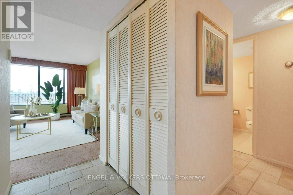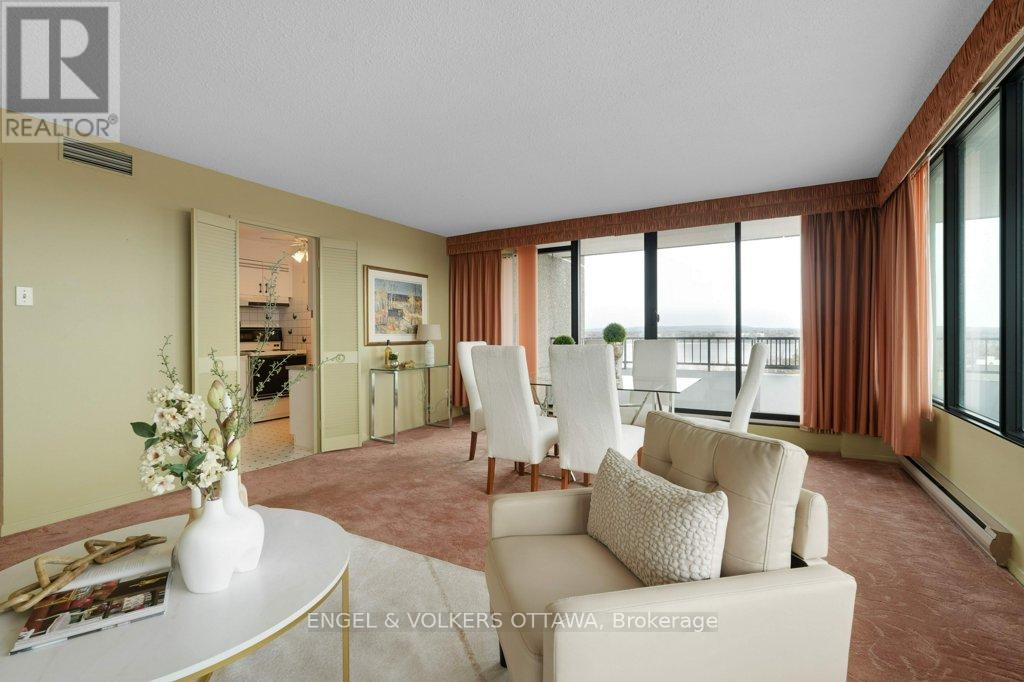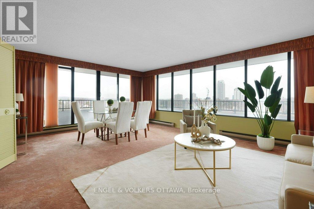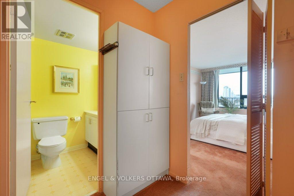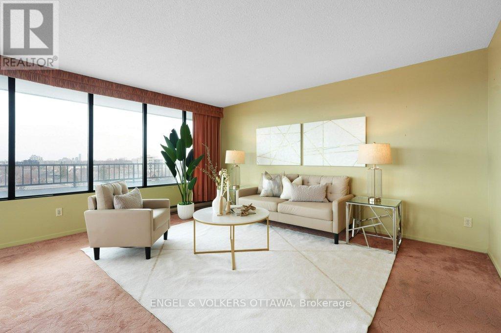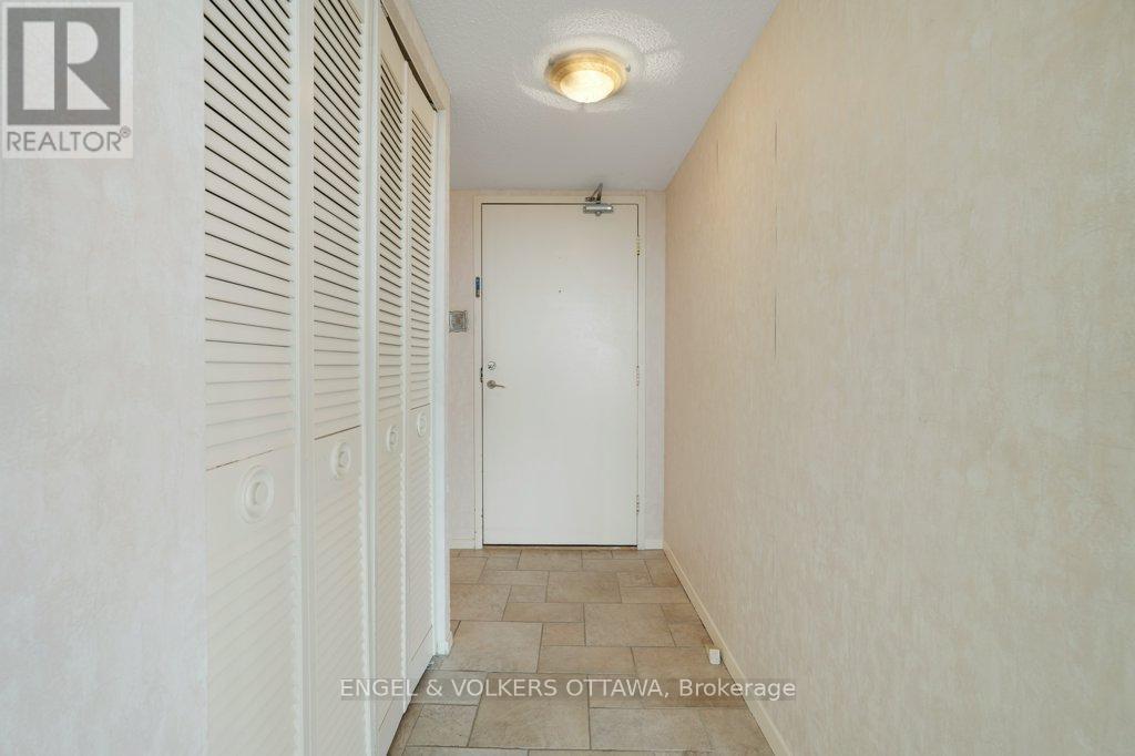 Perched on the north-east corner of this iconic Westboro building, this 2-bedroom, 2-bathroom unit offers sweeping city and river views from every angle, including a wraparound balcony made for morning coffee or watching Canada Day fireworks light up the sky over the Ottawa River. The Barclay isn't just a building; it's a community. Residents here have organically built something rare: a vibrant, engaged neighbourhood within four walls. Think social clubs, gardening groups, regular parties, and neighbours who actually know each other's names. It's the kind of place people move into and never want to leave. At 1,040 sq ft, the unit is a blank canvas. The primary bedroom features a 3-piece ensuite with a stand-up shower, and the second full bathroom serves guests and the second bedroom with ease. Move in and freshen things up with new flooring and a few personal touches, or take it to a full renovation. The bones and the views do the heavy lifting either way. Amenities are exceptional: indoor pool, saunas, exercise room, library, guest suite, party room, outdoor terrace with BBQs, workshop, and more. One indoor parking spot and storage locker included. And the location? The new KichiZibi LRT station is less than 100 metres from the front door, putting the rest of the city at your fingertips while keeping you squarely in the heart of Westboro. (id:64974)