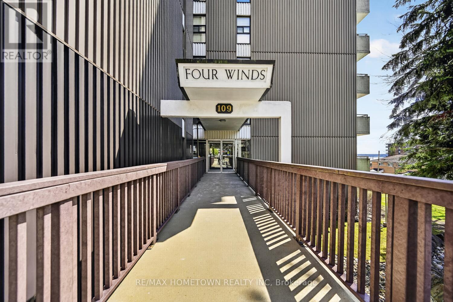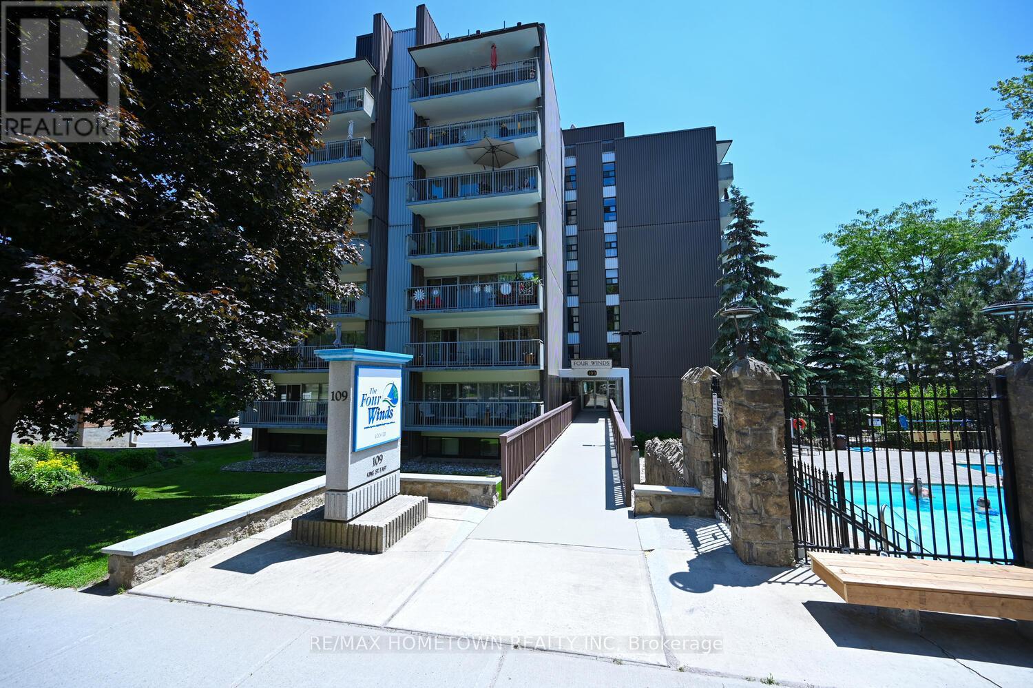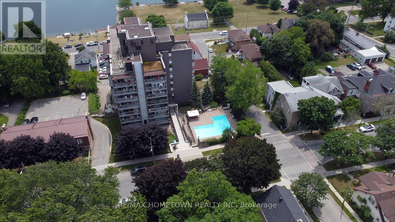Positioned in the sought-after Four Winds complex, this eighth-floor one-bedroom condo offers an exceptional opportunity to enjoy secure, low-maintenance living in the heart of historic downtown Brockville. From the oversized private balcony, take in sweeping views over the city's charming heritage rooftops-a perspective that truly captures the character and history of this riverfront community. Just one block from the world-renowned St. Lawrence River, you're a short, easy stroll to the vibrant farmers' market, the iconic Brockville Railway Tunnel, and scenic Blockhouse Island. The building itself is well managed and known for its welcoming, community-oriented atmosphere, popular with retirees and professionals alike. Residents enjoy access to a beautifully maintained outdoor pool and garden area-perfect for relaxing afternoons or entertaining visiting family. The unit presents a solid layout with excellent natural light and outstanding potential for those looking to personalize their space; while some updating to kitchen and bath areas may be considered, the value here lies in the location, lifestyle, and view. An ideal option for right sizing , retirees, or those seeking a secure pied-à-terre in one of Eastern Ontario's most picturesque waterfront towns, this condo delivers comfort, convenience, and long-term upside in equal measure. (id:64974)