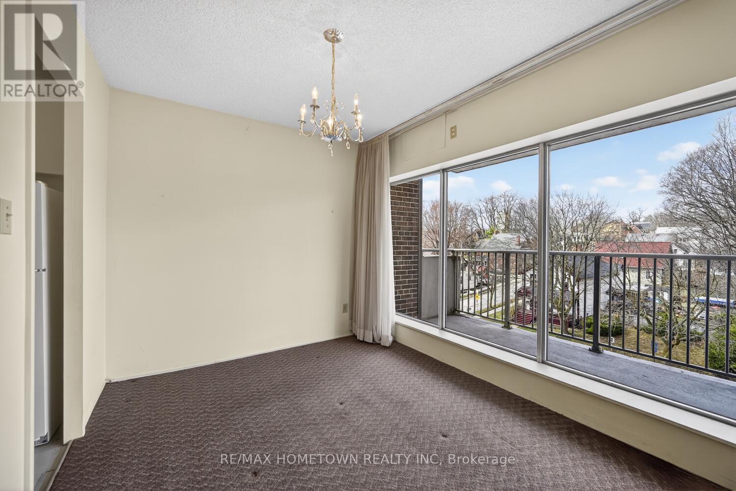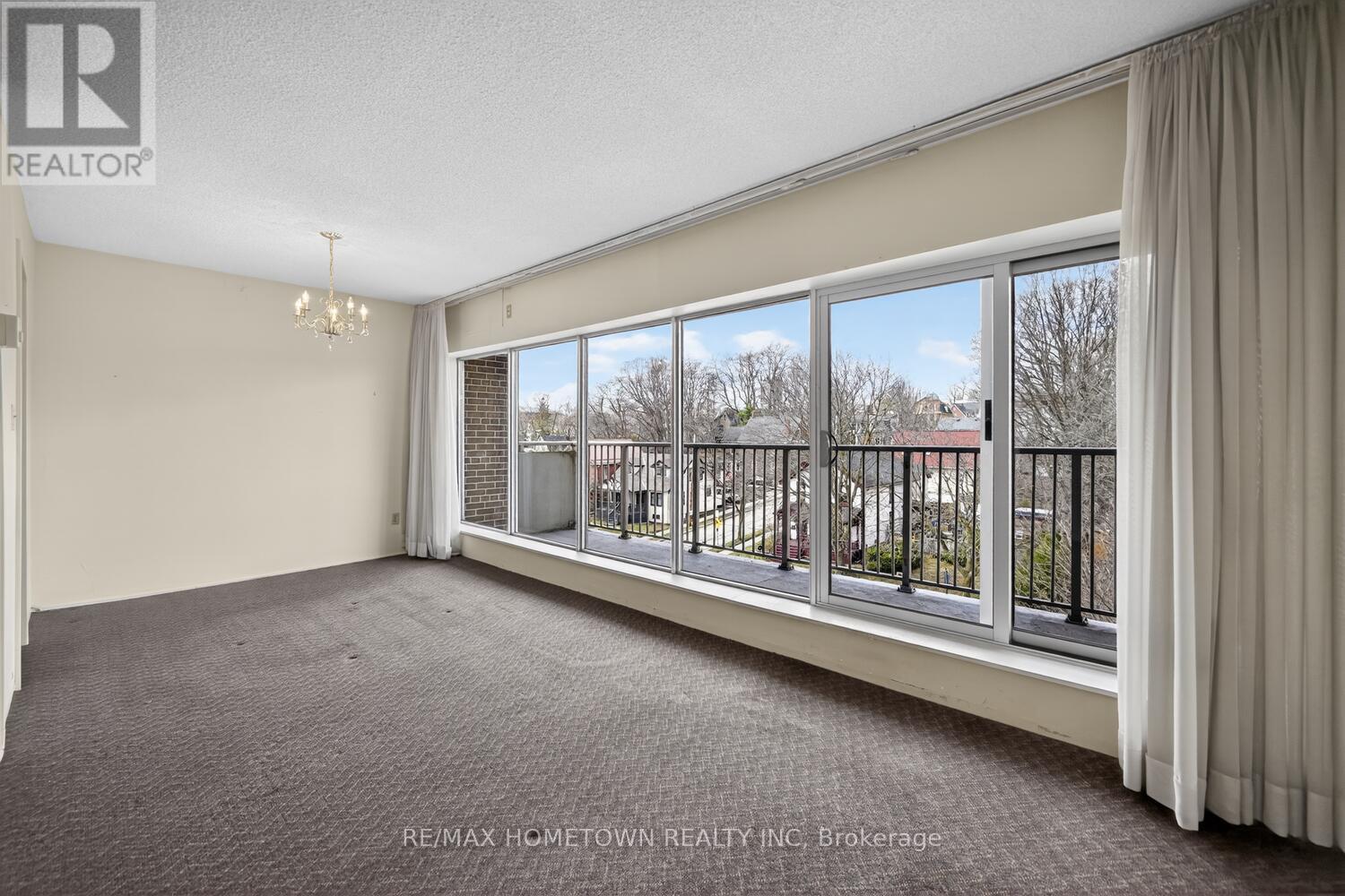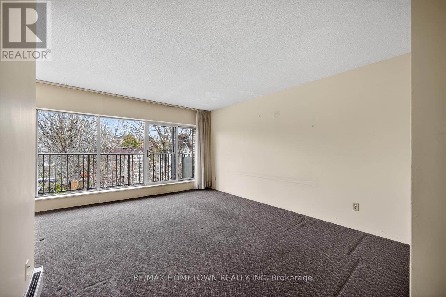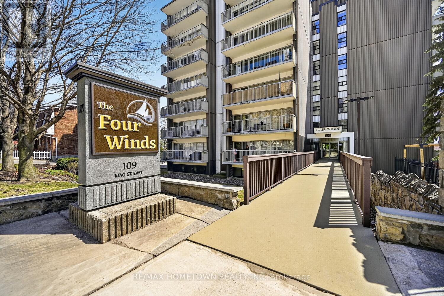 Positioned in the sought-after Four Winds complex, this eighth-floor one-bedroom condo offers an exceptional opportunity to enjoy secure, low-maintenance living in the heart of historic downtown Brockville. From the oversized private balcony, take in sweeping views over the city's charming heritage rooftops-a perspective that truly captures the character and history of this riverfront community. Just one block from the world-renowned St. Lawrence River, you're a short, easy stroll to the vibrant farmers' market, the iconic Brockville Railway Tunnel, and scenic Blockhouse Island. The building itself is well managed and known for its welcoming, community-oriented atmosphere, popular with retirees and professionals alike. Residents enjoy access to a beautifully maintained outdoor pool and garden area-perfect for relaxing afternoons or entertaining visiting family. The unit presents a solid layout with excellent natural light and outstanding potential for those looking to personalize their space; while some updating to kitchen and bath areas may be considered, the value here lies in the location, lifestyle, and view. An ideal option for right sizing , retirees, or those seeking a secure pied-à-terre in one of Eastern Ontario's most picturesque waterfront towns, this condo delivers comfort, convenience, and long-term upside in equal measure. (id:64974)