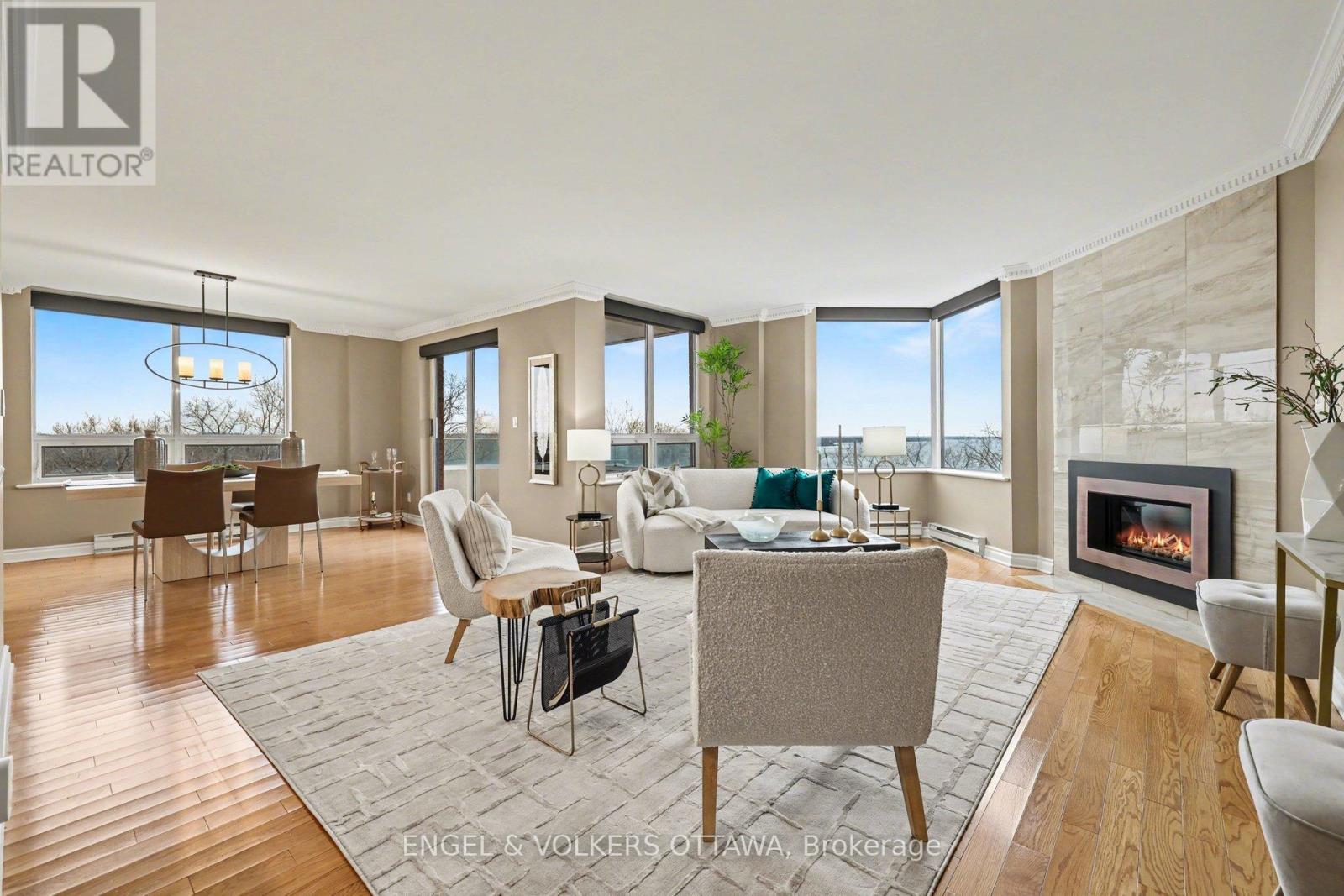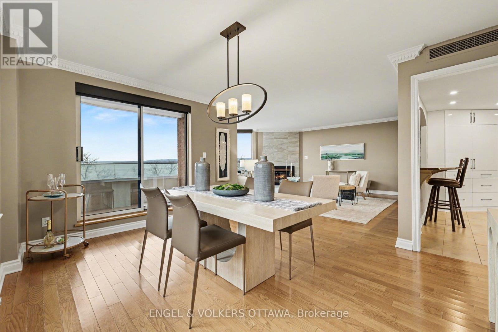 Step inside this stunning 3-bedroom 2 bathroom residence at the iconic Commodore's Quay, perfectly positioned with northwest exposure capturing breathtaking river views and unforgettable sunsets - from every single room. This is a layout that just makes sense. A private primary suite tucked away from the other two bedrooms creates the perfect balance of comfort and separation. From the moment you walk in, you're greeted by a grand foyer with generous storage, leading into a light-filled living space anchored by a cozy gas fireplace with a beautiful surround - the kind of space that feels as good as it looks. The dining area opens to a spacious, curved balcony, seamlessly blending indoor and outdoor living - ideal for entertaining or unwinding with those sunset views. The bright, open kitchen connects effortlessly to the living space with a breakfast bar - perfect for casual mornings or hosting friends. Your primary retreat features two closets and a 4-piece ensuite, while the thoughtfully designed layout includes in-unit full-size laundry, discreetly tucked away for convenience. And here's what truly sets this apart: 2 parking spaces + a storage locker - a rare and valuable find. The lifestyle? Just as impressive. Walk to Bayshore Shopping Centre, Andrew Haydon Park, NCC trails, and enjoy easy access to transit - everything you need, right at your doorstep. This is more than a condo - it's a view, a lifestyle, and a rare opportunity all in one. (id:64974)