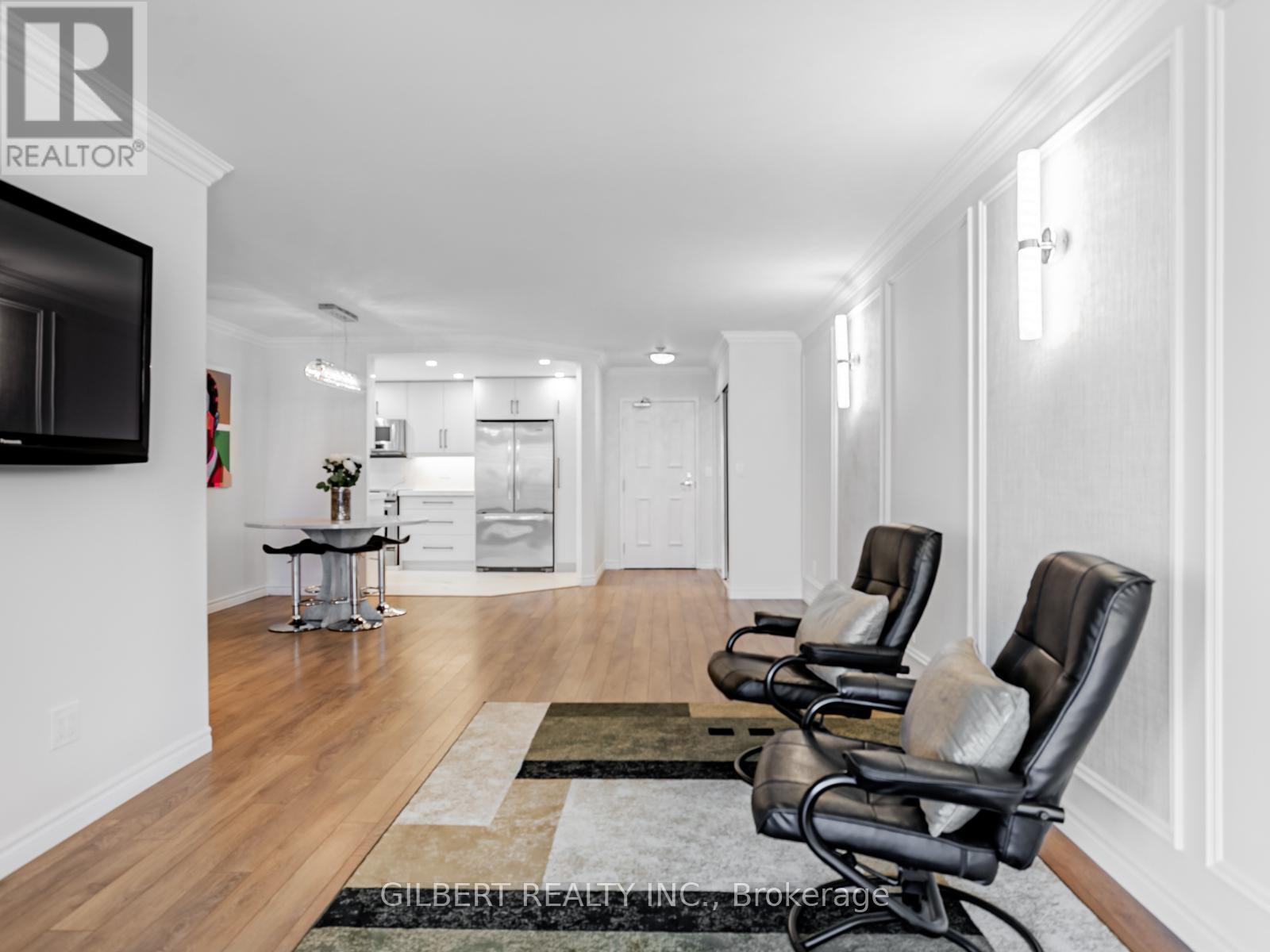 WELCOME TO 100 OBSERVATORY LANE, UNIT 806! An almost 1,200 sq. ft. fully renovated suite in one of Richmond Hill's most sought-after communities, complete with a large private balcony. This bright, sun-filled 2-bedroom plus den, 2-bathroom home offers a spacious and highly functional layout, perfect for comfortable living. The unit features hundreds of thousands of dollars in custom upgrades, including a modern kitchen with high-end stainless steel appliances, quartz countertops and backsplash, and recessed pot lighting. This spacious unit also includes two parking spaces, with all utilities covered in the maintenance fees. Additional enhancements include fresh paint throughout, luxury laminate flooring, crown mouldings, modern custom light fixtures, window coverings, and two fully upgraded bathrooms. The upgraded laundry room is equipped with custom cabinetry and quartz countertops.The primary bedroom offers a 4-piece ensuite, two separate closets, and sliding doors with direct balcony access. Enjoy abundant natural light and desirable west exposure. This impeccably maintained building offers excellent amenities such as guest suites, a pool, gym, and games room. Book your showing today! (id:64974)