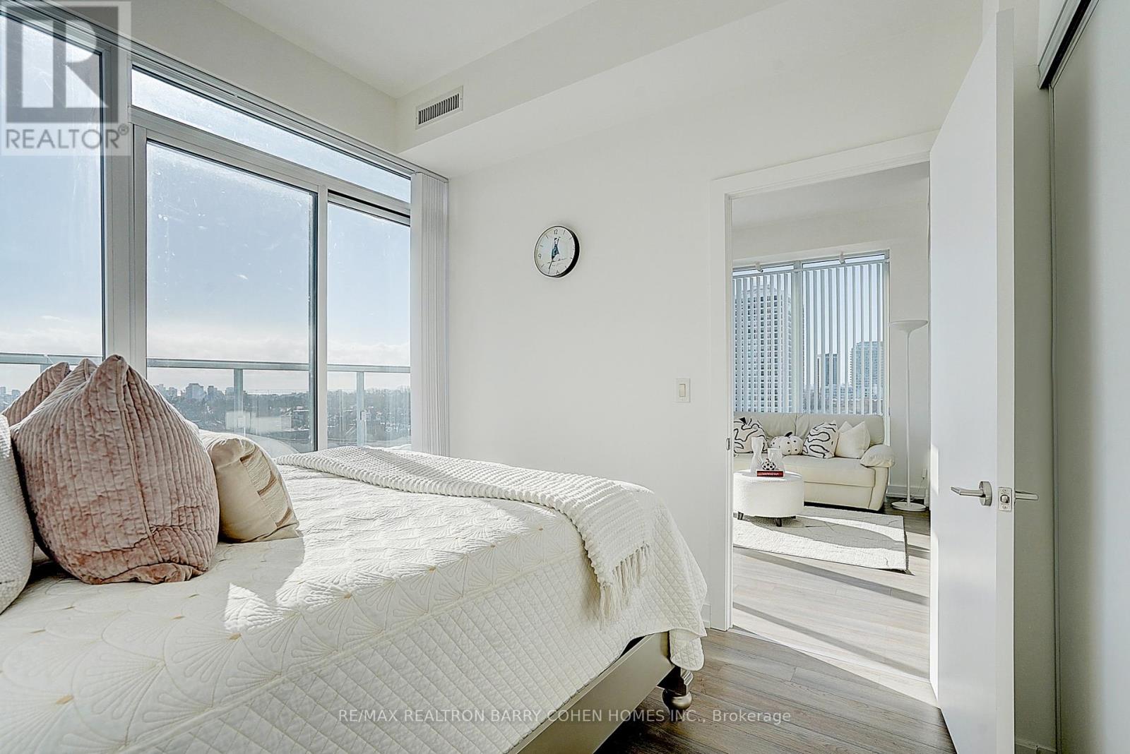 An exceptional south-facing 2-bedroom, 2-bath corner residence in the heart of prestigious Forest Hill neighbourhood. Set within an exclusive 9-storey, 108-suite low-rise boutique condominium designed by Hariri Pontarini Architects with interiors by Tomas Pearce Interior Design. This bright, sun-filled corner suite offers a highly functional layout with high ceilings and floor-to-ceiling windows, providing abundant natural light throughout.Enjoy a modern designer kitchen with built-in appliances, seamlessly connected to the open-concept living and dining area.The primary bedroom is filled with natural light from its south exposure and features beautiful skyline views and a 4-piece ensuite. Freshly painted and well maintained, with walk-out access to the balcony from the living room and Primary bedroom. Step out to the balcony and enjoy breathtaking, unobstructed views overlooking Sir Winston Churchill Park, with iconic sightlines to Casa Loma, the lake, and the CN Tower. Exceptional building amenities include 24-hour concierge/security, fitness centre, media room, party/event room, visitor parking, and a pet spa. Conveniently located near top public and private schools including Forest Hill Collegiate, Upper Canada College, Bishop Strachan School, and St. Michael's College School. Walking distance to Forest Hill Village, Casa Loma, Loblaws, St. Clair West subway station, parks, tennis club, restaurants, and shops.A rare opportunity offering the perfect blend of luxury, privacy, and modern urban living. Includes one parking space and one locker, both conveniently situated on level P2 near the elevator.Heat and water included. (id:64974)
