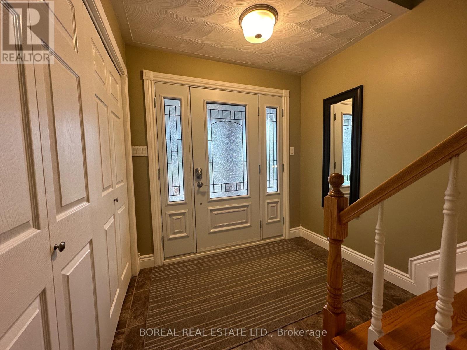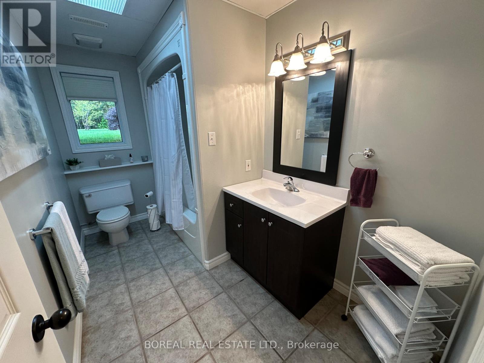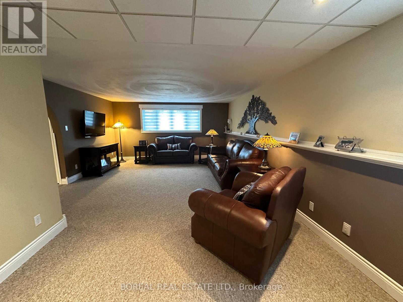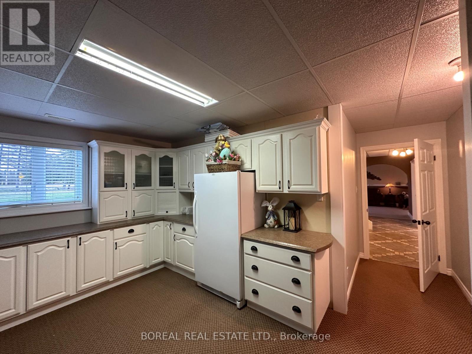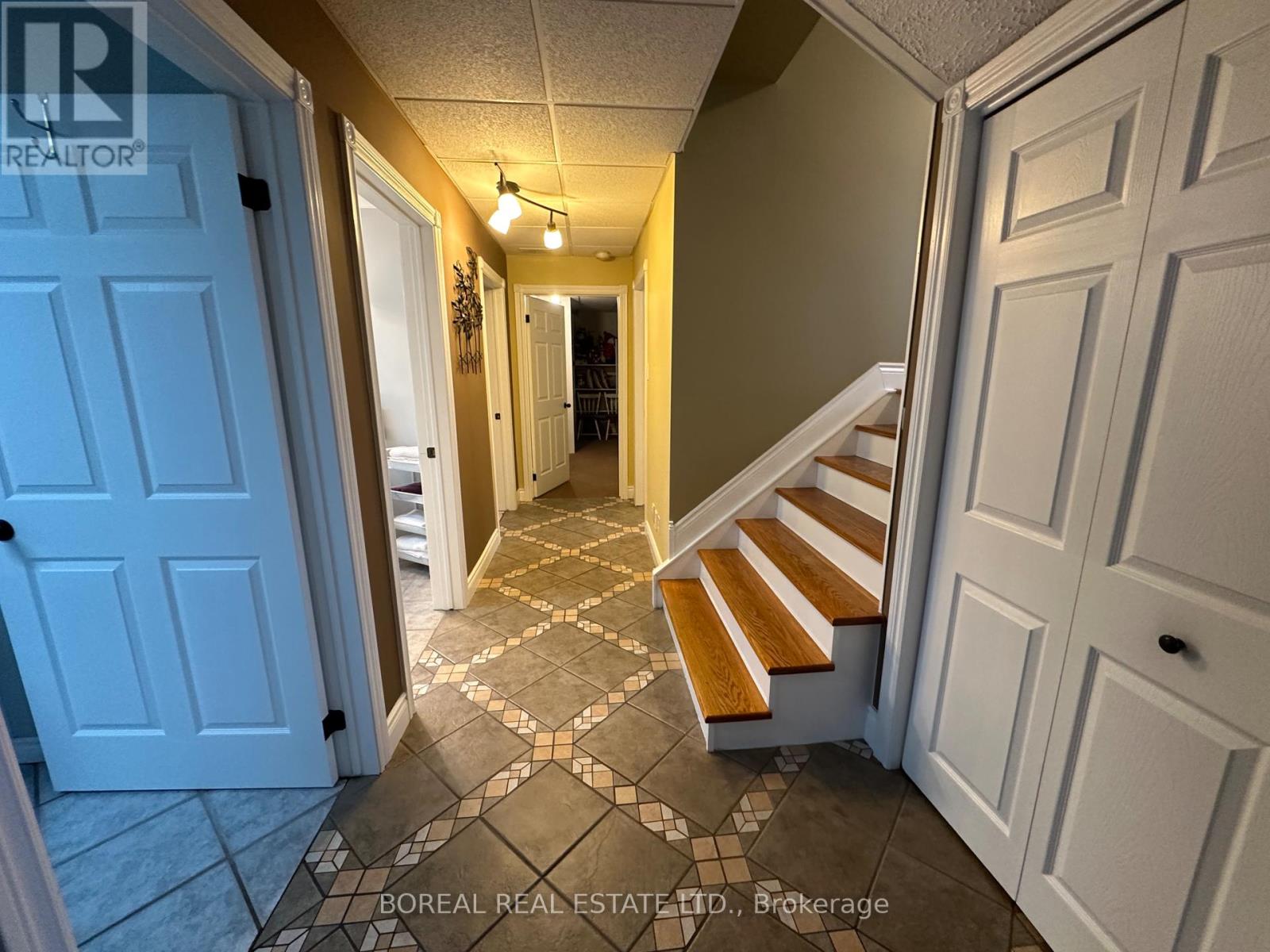 This fully bricked raised bungalow, built in 1990, offers approximately 1,400 sq.ft. of living space and sits on a beautiful 8.14-acre lot just 1.4 km from Tim Horton Events Centre. The main floor features a spacious entrance, three bedrooms, an updated 5-piece bathroom (2012), a sunken living room with crown moulding, and a bright open-concept kitchen renovated in 2018 with new cupboards, countertops, sink, taps, and appliances. The dining area leads to a rear deck and a three-season sunroom (installed 2017). The fully finished basement includes a large rec room with a natural gas fireplace (2006), two additional bedrooms, a second 4-piece bathroom, laundry room (updated in 2018), storage, and a utility room. A detached heated 3-bay garage (30x50, built in 1999) features a 2-piece bathroom, built-in cupboards, a natural gas heater (2003), wood stove (2017), and dehumidifier, with roof shingles replaced in 2019 and repainted cupboards/doors in 2020. A second cold storage garage (24x32) was added in 2018. Notable updates include a natural gas furnace (2005), hot water tank (2003), water softener and sulfur guard (2010), lockstone driveway and flower beds (2010), new shingles on the home (2012), upstairs windows and doors (2019), Aero seal ducts (2015), Generac generator (2017), replaced air exchanger (2023), and new basement windows (2024). The home has been meticulously maintained and updated, offering the perfect blend of space, functionality, and country charm just minutes from town amenities. (id:64974)