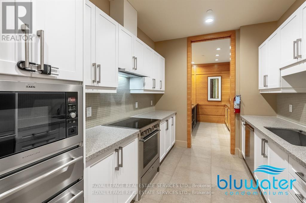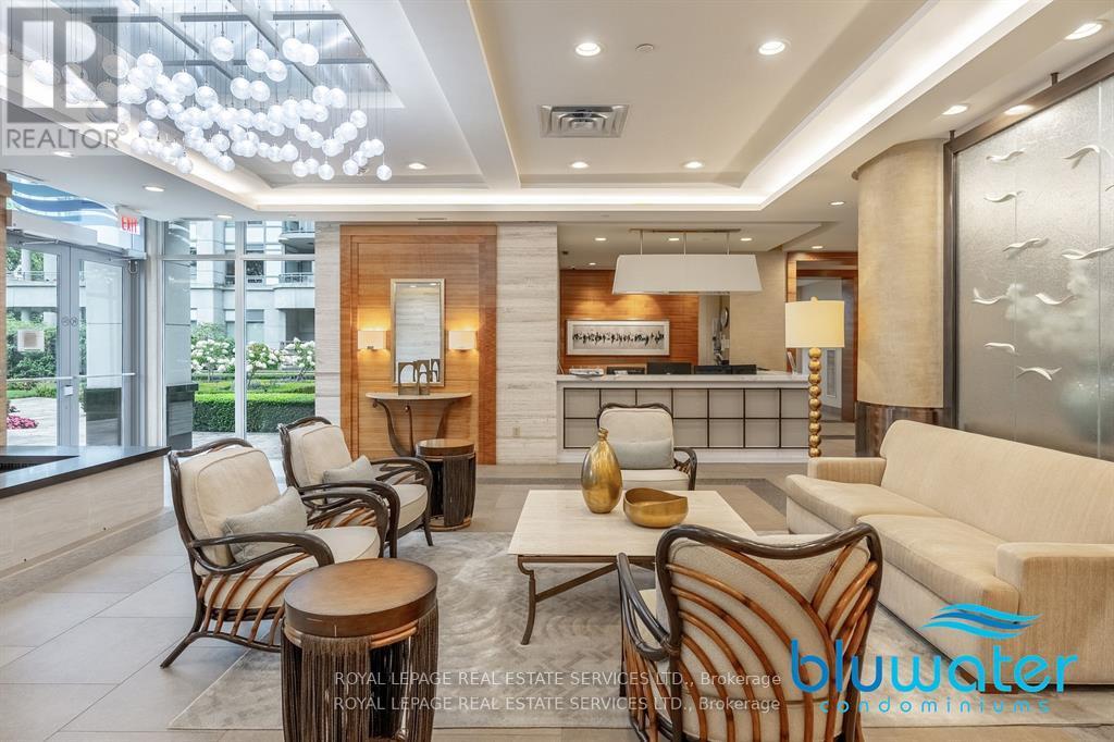 Discover Refined Lakeside Living at Bluwater Condominiums. Welcome to the pinnacle of luxury living on the shores of Lake Ontario. This exquisite 2-bedroom, top-floor suite at Bluwater Condominiums seamlessly blends contemporary sophistication with the serene beauty of nature. Soaring ceilings and expansive floor-to-ceiling windows flood the space with natural light, creating an open, airy ambiance that invites relaxation and tranquility. Step into the generously sized primary bedroom, your own private retreat, complete with a luxurious 4-piece ensuite designed for ultimate comfort and convenience. The modern kitchen is a chef's dream, equipped with premium built-in appliances including a refrigerator, dishwasher, and a sleek gas cooktop perfect for entertaining or quiet evenings at home. Enjoy your morning coffee or unwind at sunset on the oversized balcony, offering unobstructed views of the lush greenery and sparkling waters a seamless extension of your living space into the great outdoors. Set in a collection of three architecturally elegant 8-storey buildings, Bluwater Condominiums exudes timeless style and thoughtful design. Nestled in a prime location, you're just minutes from Shell Park, and a scenic walk away from the vibrant shops and waterfront charm of Bronte Village. Surrounded by protected green spaces and scenic walking trails, this community offers a perfect balance of peace and accessibility. Commuters will appreciate the easy access to the QEW and Bronte GO Station, connecting you effortlessly to the rest of the GTA. Extras: Bluwater residents enjoy exclusive access to a full suite of resort-inspired amenities, including a 24-hour concierge, a stunning outdoor pool, relaxing hot tub and sauna, well-equipped fitness and yoga studios, a stylish party room, luxurious guest suites, and more. This is more than a home it's a lifestyle. Embrace elegance, comfort, and the natural beauty of lakeside living at Bluwater. Underground Parking & Locker Included. (id:64974)