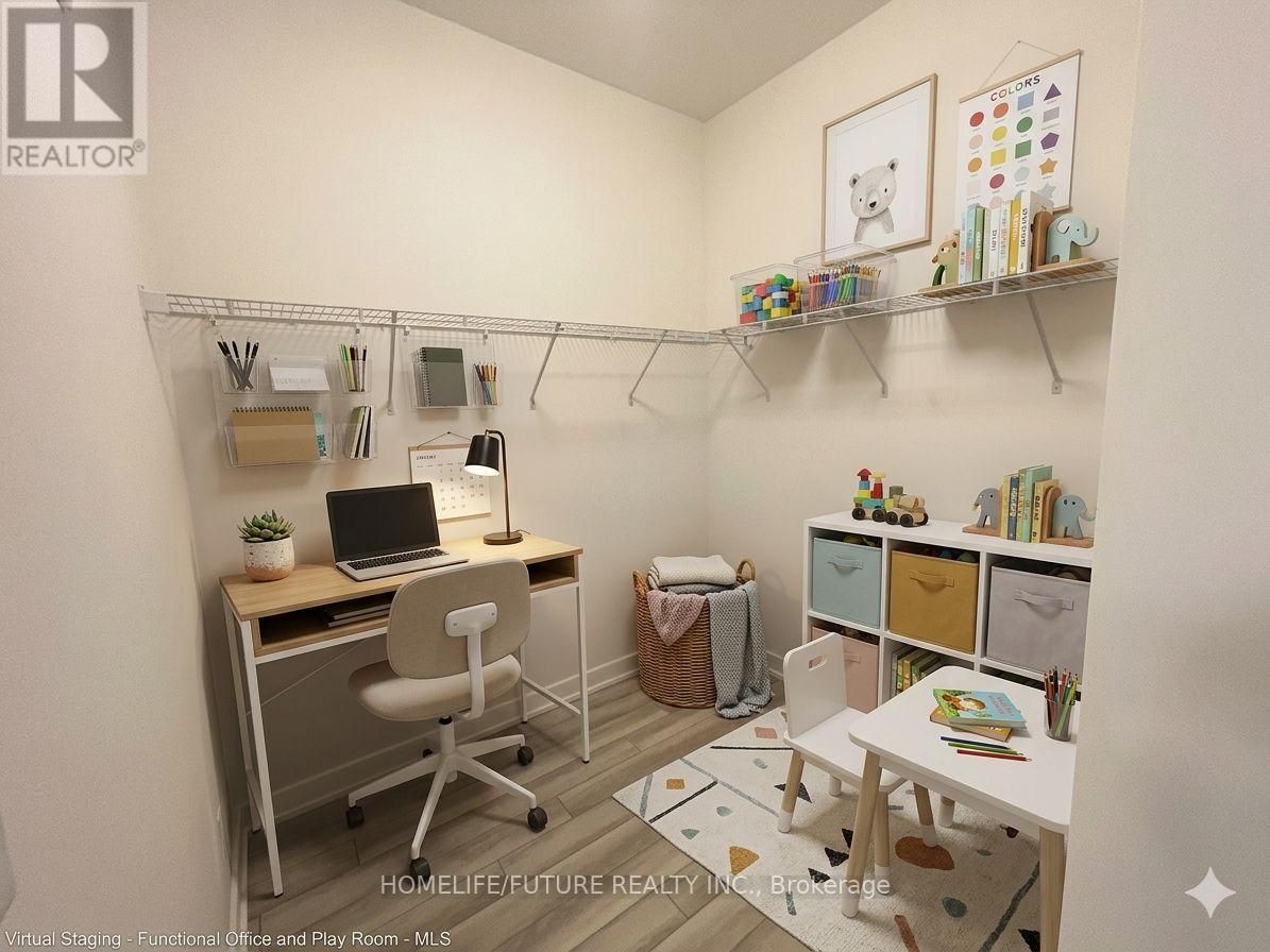 Experience Modern Luxury In This Brand-New, Never-Lived-In 1+Den, 2-Bathroom Suite At The Modo Condos In Vibrant Bowmanville. This Bright And Functional Unit Features A Sleek Open-Concept Kitchen With Stainless Steel Appliances, Premium Finishes, And A Spacious Balcony Perfect For Relaxation. The Versatile Den Offers The Flexibility Of A Home Office Or Guest Space, Complemented By The Rare Convenience Of Two Full Washrooms. Included With The Unit Are One Parking Spot And High-Speed Internet For A Seamless Move-In Experience. Residents Enjoy World-Class Amenities, Including A 24-Hour Concierge, Fitness Centre, Yoga Studio, And A Rooftop Terrace With Bbqs. Perfectly Situated Just 35 Minutes East Of Toronto And Steps From The Upcoming Go Train Station, Local Shops, And Highway 401, This Is An Incredible Opportunity For First-Time Buyers-Young Professionals, Or Savvy Investors.***virtually transformed Pictures** (id:64974)