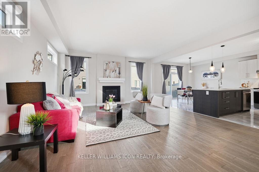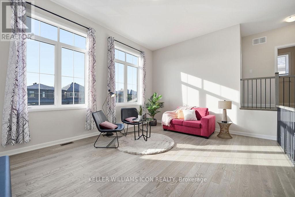 This 3-bedroom single-family home in Quinn's Pointe features 9-ft ceilings on both the main and second floors and a striking 15-ft ceiling in the loft-style family room, creating a bright and airy living space with impressive architectural appeal. The home offers a functional layout with spacious living and dining areas and a well-designed kitchen with a large island and breakfast bar, ideal for everyday living and entertaining. The sun-filled loft overlooking the main floor provides a perfect space for a lounge or media area. Upstairs includes three well-sized bedrooms, including a primary bedroom with walk-in closet and ensuite. The fully fenced backyard is great for outdoor enjoyment, and the unfinished basement offers ample storage and future potential. Conveniently located near Strandherd Dr and Greenbank Rd, close to parks, trails, rivers, the Minto Recreation Complex, and excellent schools. (id:64974)
