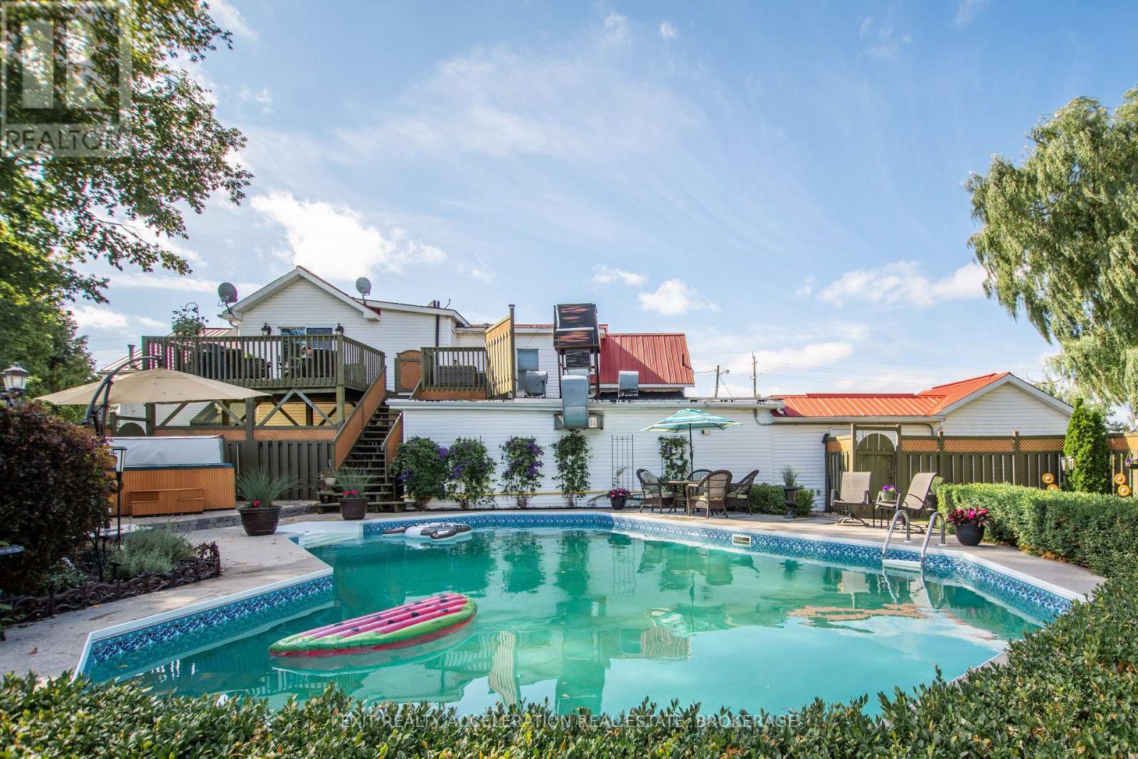 Welcome to the well-established and profitable Royal Coachman Restaurant and event venue in Napanee, Ontario! Set on 1.79 acres, the property includes the successful restaurant, a fully renovated 3-bedroom living space, and a beautifully landscaped backyard with an inground pool. The business is a strong performer with excellent potential. Licensed for full service, the restaurant offers seating for 127 indoors, 56 on the patio, and up to 144 guests in the garden event space ideal for weddings and special events. The home has been recently renovated, making this an outstanding opportunity to own a turnkey business and residence in one package. (id:64974)