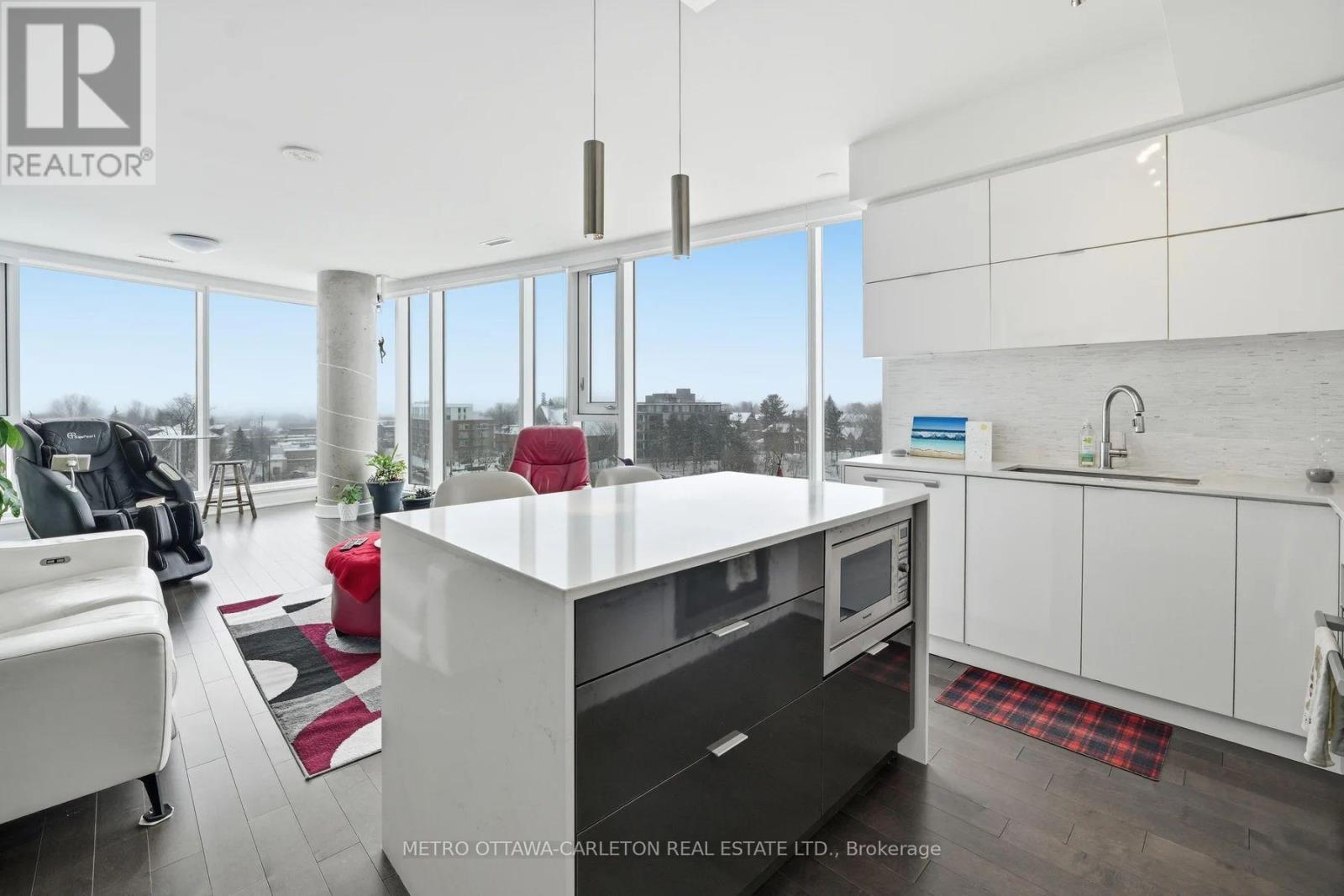 Ottawa, Glebe. Executive urban living at "The Rideau". This two-bedroom + den, two-bathroom Condo is available for rent on April 1st, 2026! Heat is included! This unit features an open-concept design with floor-to-ceiling windows, offering spectacular sweeping views of the Rideau Canal. The gourmet custom kitchen attributes high-end appliances, including a cooktop and oven, dishwasher, refrigerator and microwave. The living and dining rooms boast an abundance of natural light. Tile and hardwood flooring flow seamlessly throughout. The primary bedroom is spacious with a lavish ensuite highlighting upgraded cabinets and a large glass shower. Practical Murphy bed located in the second bedroom. Open den with large window overlooking the canal-perfect for a home office. Private balcony ideal for dining and enjoying views of Lansdowne Park. In-unit laundry. Central Air. This amenity-rich building includes concierge service, a gym and party/entertainment rooms overlooking the stadium. One underground parking space and storage locker included! Steps to Whole Foods, LCBO, Shopping, Restaurants, the Rideau Canal and Lansdowne Park-an unparalleled mix of lifestyle and luxury. (id:64974)