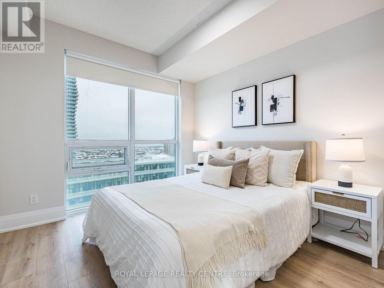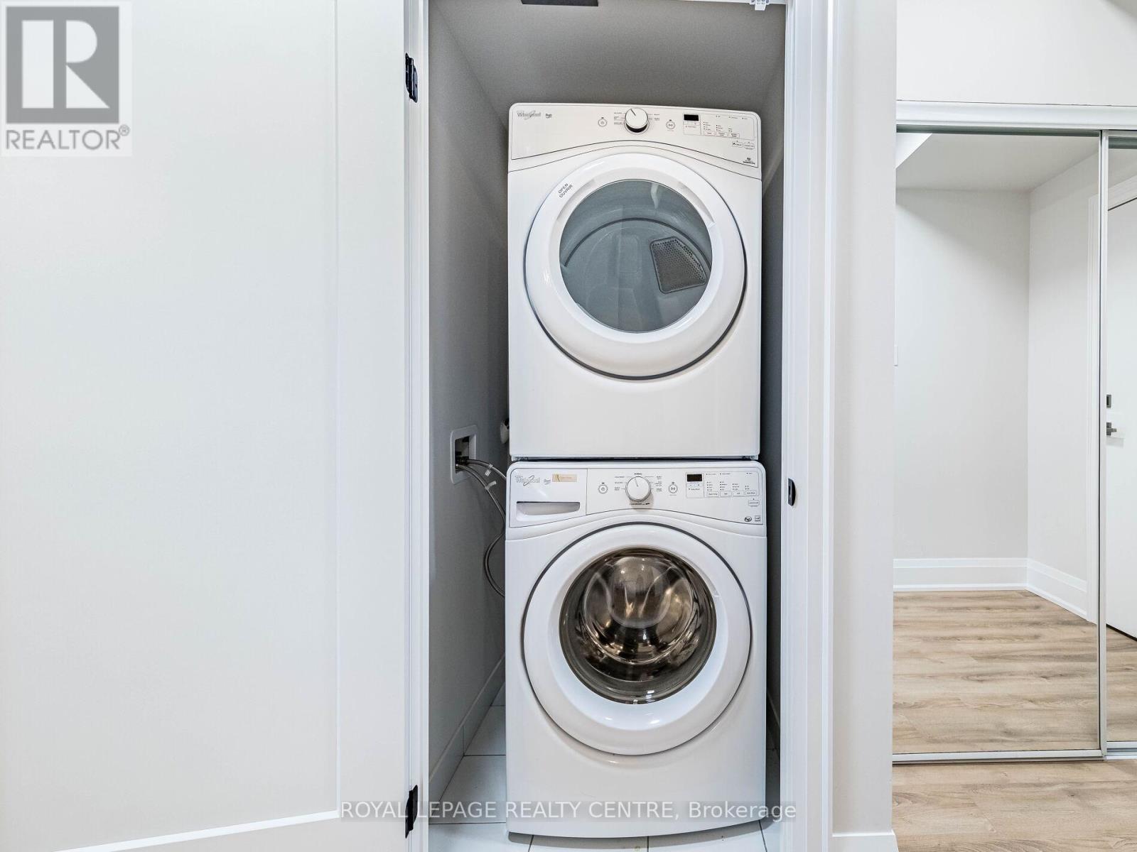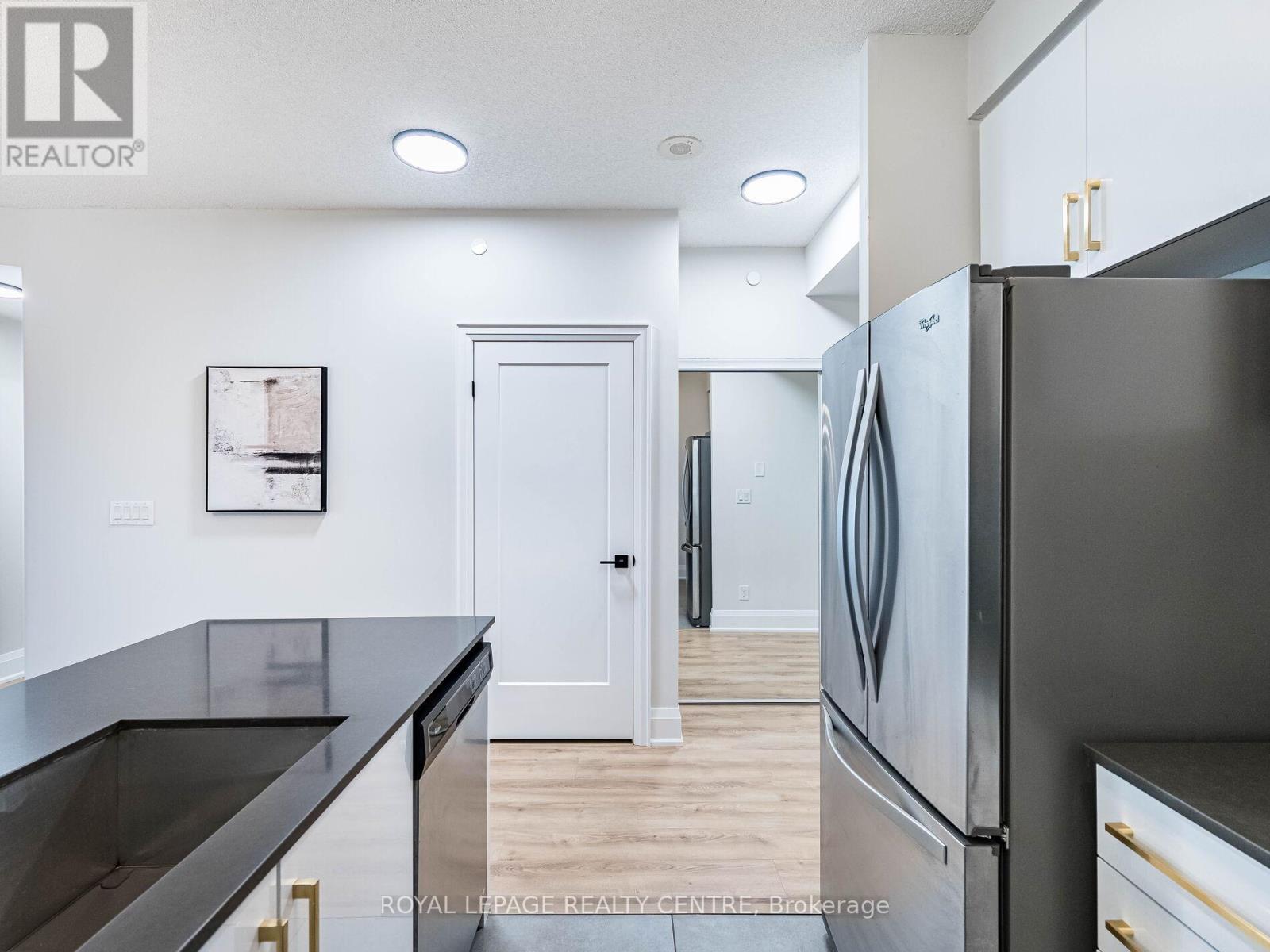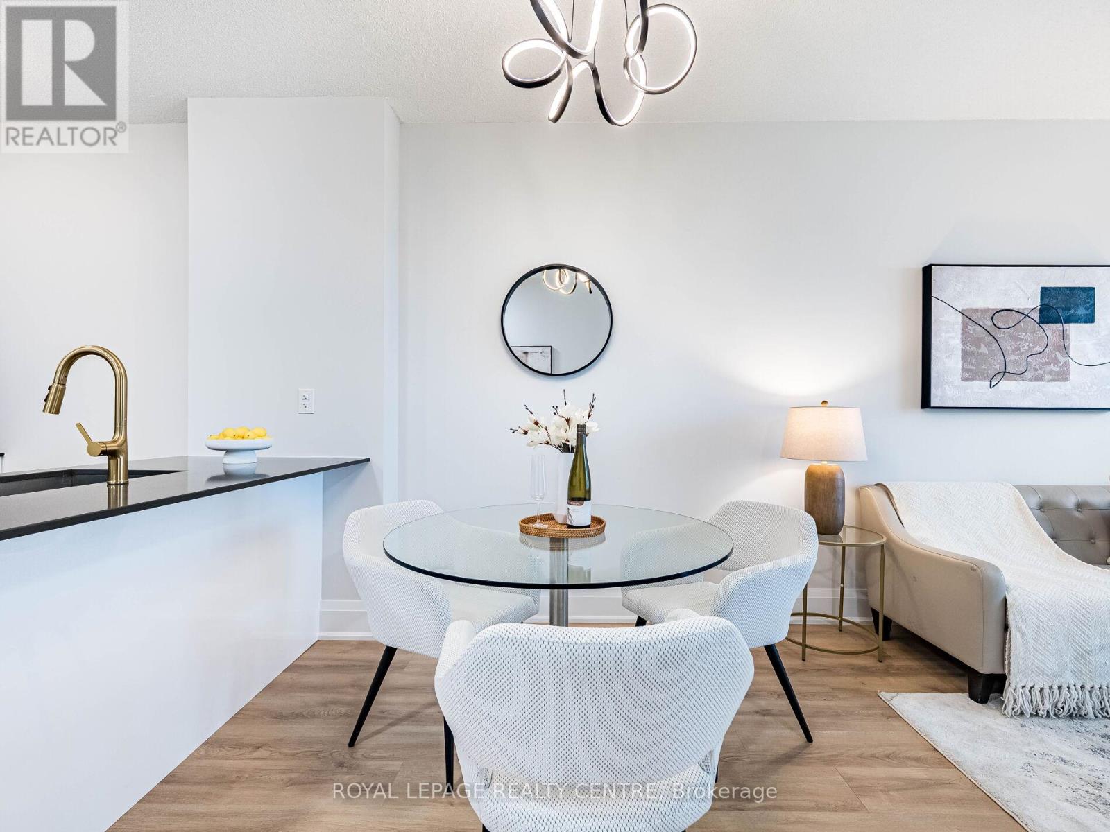 Elevated design! Prime location! Exceptional lifestyle! Experience refined city living in this exquisitely renovated 1-bedroom residence located in the prestigious Brickstone community in the heart of Mississauga's vibrant City Centre. Thoughtfully redesigned with contemporary elegance, this suite offers a seamless blend of style, comfort, and functionality. The open-concept living and dining area is bathed in natural light, creating an inviting yet sophisticated ambiance ideal for both intimate evenings and stylish entertaining. The designer kitchen showcases sleek cabinetry, premium stainless steel appliances, modern countertops, and refined finishes that elevate everyday living. Retreat to the spacious primary bedroom, a serene sanctuary featuring generous closet space and large windows that enhance the bright, airy atmosphere. The beautifully updated bathroom reflects clean architectural lines and upscale detailing. This exceptional offering includes one premium parking space and one private locker, adding both convenience and value. Perfectly positioned just steps from Square One, Celebration Square, fine dining, boutique shopping, Sheridan College, and major transit routes, this address provides effortless access to Highways 403, 401, and QEW - ideal for professionals and discerning buyers seeking connectivity without compromise. Whether you are a first-time buyer, executive professional, or investor, this turnkey residence presents a rare opportunity to own a refined home in one of Mississauga's most dynamic and sought-after locations. A true turnkey opportunity in the heart of it all - don't miss your chance to call this beautiful unit home! (id:64974)