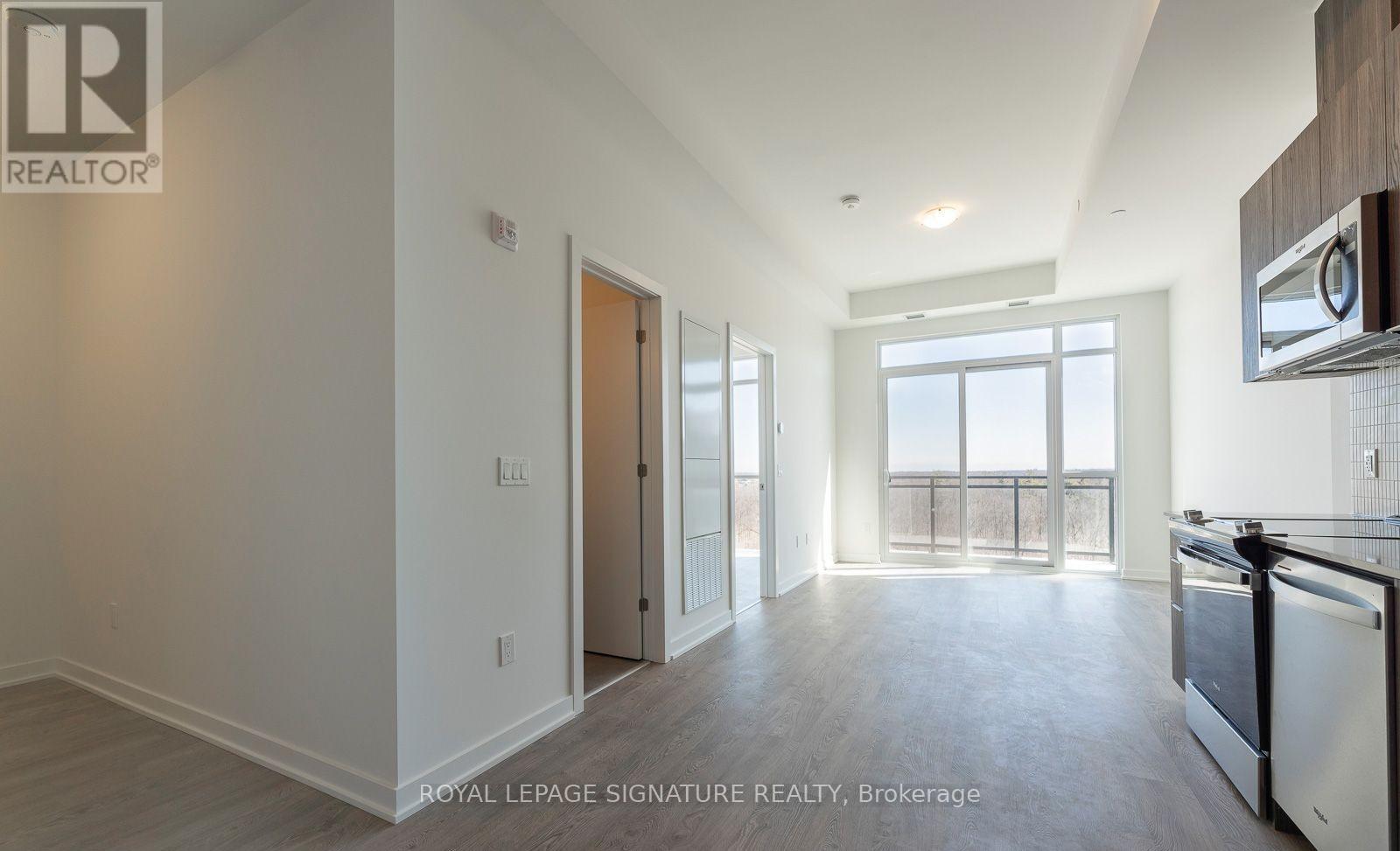 1+1 Bed, 1 Bath, Available May 1st, 2026. Experience elevated condo living at Mile & Creek in the heart of Milton. This stylish 1-bedroom + den suite features a bright, open-concept layout with expansive windows that fill the space with natural light. The versatile den is ideal for a home office or guest area, while the contemporary kitchen features built-in stainless steel appliances and sleek cabinetry. Step out onto your private balcony and enjoy unobstructed views of the protected greenbelt and peaceful woodlands, with floor-to-ceiling bedroom windows enhancing the serene setting. Ideally located close to parks, scenic trails, golf courses, shopping, dining, transit, and major highways-everything you need is just moments away - a perfect blend of modern comfort and everyday convenience. (id:64974)