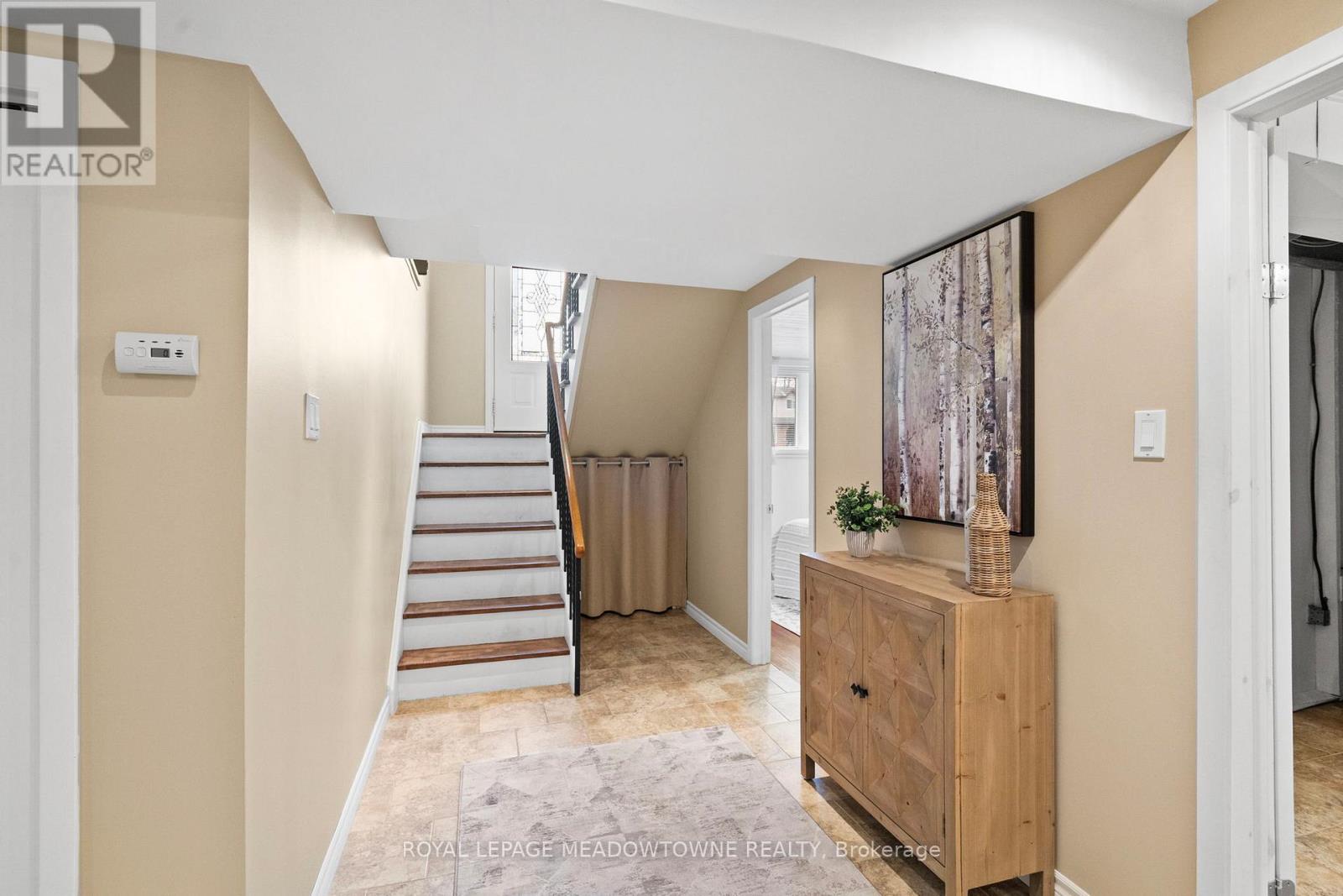 Raised bungalow on a mature corner lot in Milton's Dorset Park neighbourhood. Three bedrooms on the main level with a renovated kitchen featuring tall cabinetry, granite counters, and a half wall open to the L-shaped living and dining area. Added windows bring in extra natural light, while the raised design creates a comfortable sense of privacy from the street. Finished basement offers excellent flexibility with a rec room, kitchenette, 4-piece washroom, and fourth bedroom, ideal for guests or multi-generational living. Outside, the landscaped corner lot features mature trees, garden space, a re-done front walkway, and a small stone sitting area perfect for chatting with neighbours. Town-approved curb cut for a wider driveway (2022), new concrete garage floor (2021), and insulated garage door (2022). ESA certificate for wiring available and manuals kept for the home's systems. Walk to doctors, Longo's, Superstore, the Arts Centre, library, transit, and the GO station. Quick access to the 401 and even a corner store down the street for everyday essentials. (id:64974)