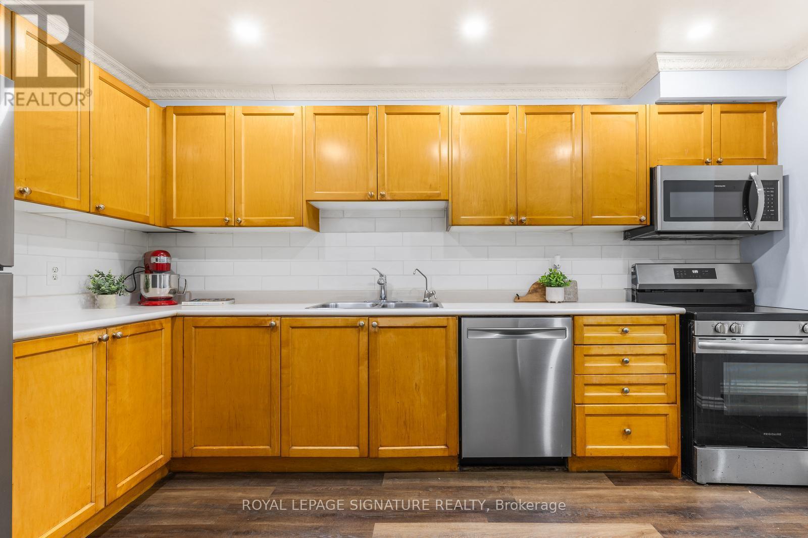 From the moment you walk in, this home feels right. Bright, welcoming, and thoughtfully updated, this Meadowvale townhome offers the space, layout, and setting today's buyers are searching for. The main level features a seamless flow from living to dining, with large windows, pot lights, and updated flooring (2024) creating a clean, modern feel throughout. The kitchen has been refreshed with stainless steel appliances (2024), updated backsplash, and ample cabinetry for everyday living. Bathrooms have been tastefully updated (2025), making this a truly move-in-ready home. Upstairs, you'll find three spacious bedrooms, including a bright primary retreat, while the finished basement offers flexible space for a rec room, home office, or growing family. What truly sets this home apart is the setting. The fully fenced backyard backs directly onto green space and a playground, offering rare privacy with no rear neighbours and a natural extension of your outdoor living.Located in a quiet, family-friendly community just steps to parks, trails, and Lake Aquitaine, and minutes to Meadowvale Town Centre, schools, transit, and major highways, this is a home that combines comfort, convenience, and lifestyle in one of Mississauga's most established neighbourhoods. (id:64974)
