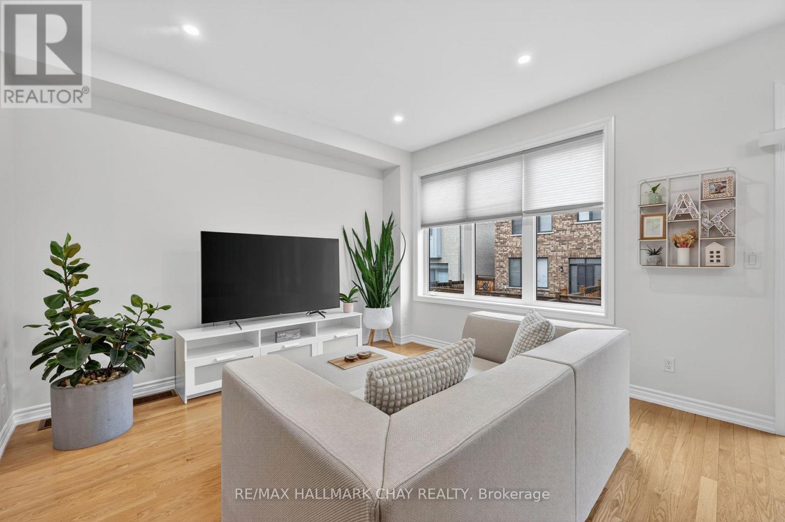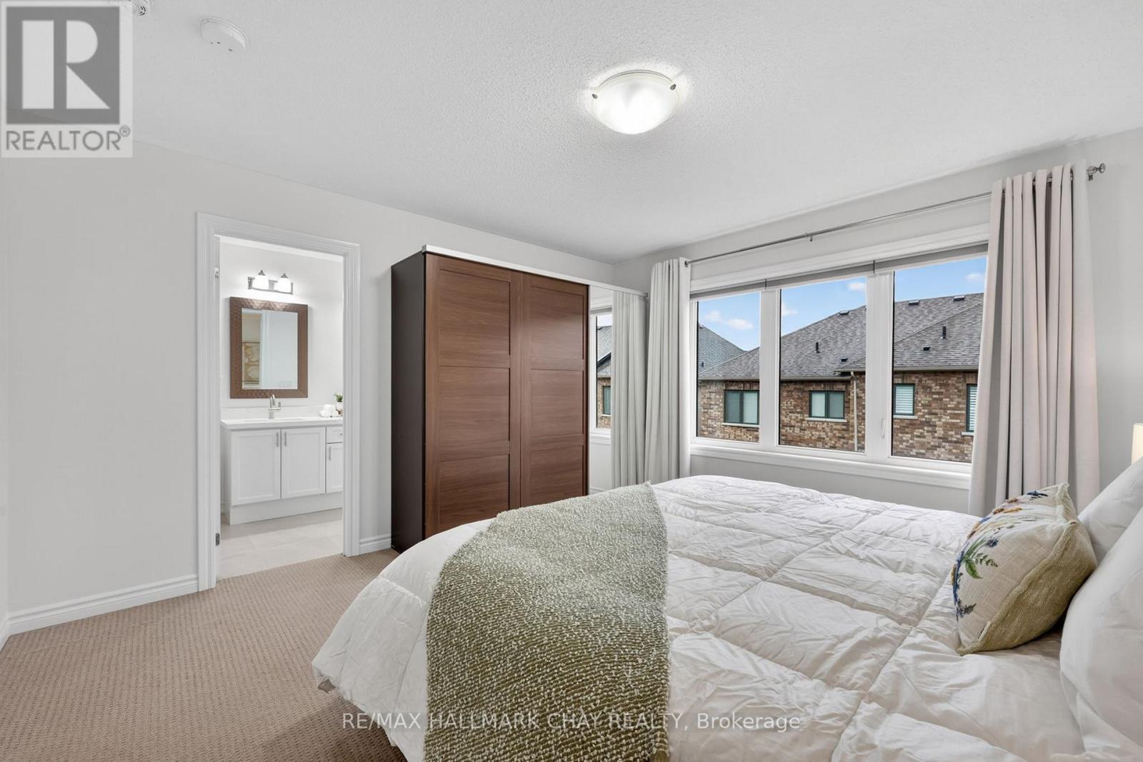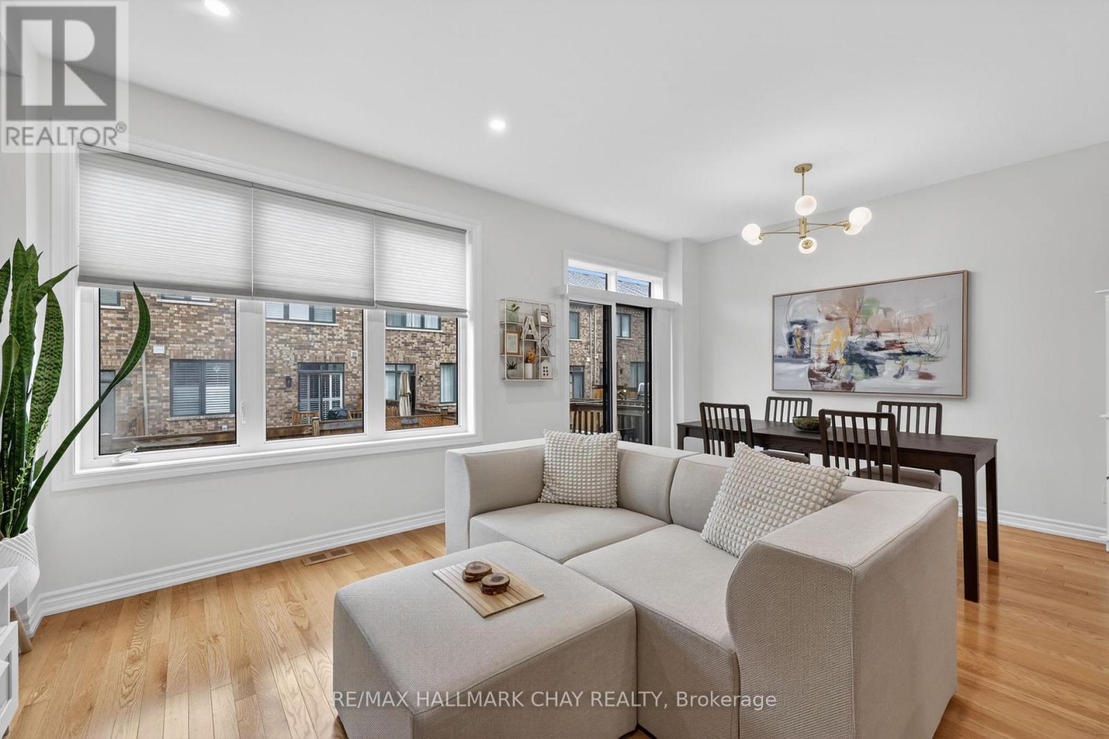 Immaculately Maintained & Updated Freehold Townhome in Highly sought After Queen's Landing! *Rare* top floor balcony with incredible Views & Fronting onto Carnaby Park! Over 2,000+ Sq Ft of Total Finished Living Space. This home has been totally upgraded inside & out! Open Concept Main Floor w/ Smooth 9' Ceilings, Pot Lights, Hardwood Floors & Walk Out to your Fully Fenced South Facing Backyard. Backyard is all set up with garden boxes for veggies or lush flowers! Solid Oak Staircase. Large Bright Windows Through-Out. Formal Dining Room & Huge Kitchen Island - perfect for entertaining! Large Primary Bedroom w/ Newly Renovated Spa Like Ensuite w/ Upgraded Glass Shower, custom tiling, Soaker Tub, Double Sink & Quartz Countertops. Plus, a Huge Walk In Closet. *RARE* Top Floor Laundry w/ Storage Racking & Front Load Machines. Fully Finished Basement w/ Full Bathroom, Rec Room, Work Out Zone & Bright Above Grade Window. Double Door Entrance w/ Large Foyer. Easy Two Car Driveway Parking! Covered Front Porch. Located in A vibrant family friendly community built around a large park for all to enjoy! Mins to Top Schools, EG Walking/ Biking Trails, GO Train, HWY 400, 404, South Lake Hospital & Upper Canada Mall! (id:64974)