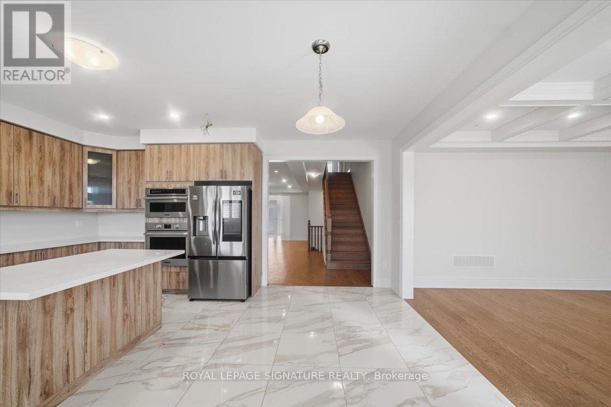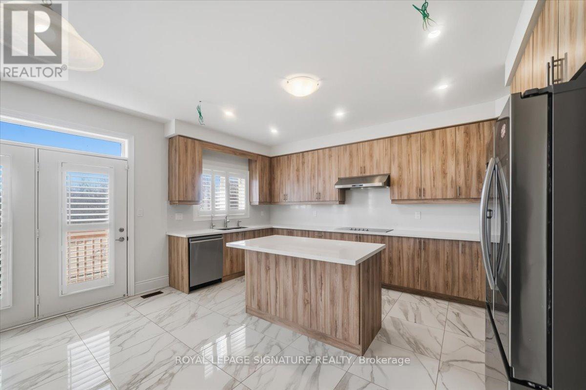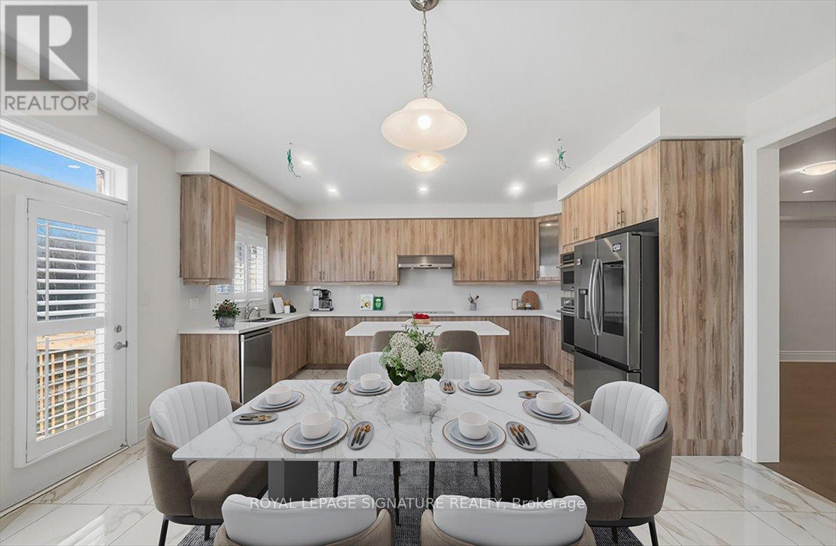 Welcome to 81 Attwater Dr, Cambridge! This 2-year-old, move-in-ready home in a vibrant neighbourhood backs onto a peaceful trail. Offering 5 bedrooms, 4 bathrooms, 3,212 sq ft (MPAC), it's filled with thoughtful upgrades and modern finishes. Enjoy the bright open-concept layout connecting the kitchen, family, and dining areas - perfect for daily living and entertaining. The chef's kitchen features built-in appliances, a 5-element cooktop (gas-ready), and plenty of counter space. A main floor bedroom adds flexibility for guests, an office, or multigenerational living. Upgrades include an electric fireplace, waffle ceiling, California shutters, 7.5-inch baseboards, pot lights, central vacuum, rough-ins for speakers and CCTV, central A/C, water softener, 200-amp panel, TV mounts, and a BBQ gas connection in the backyard. Upstairs, five spacious bedrooms, including four with semi-ensuite bathrooms featuring double sinks and generous closet space, and a primary suite with its own private 5-piece ensuite. The separate entrance walkout basement with high ceilings and large windows offers endless potential for extra living space, a media room, or an in-law suite built to your own needs. Conveniently located with easy access to Cambridge, Hamilton, Burlington, and Oakville, this home is a fantastic opportunity to own alarge house. Property Virtually staged. (id:64974)
