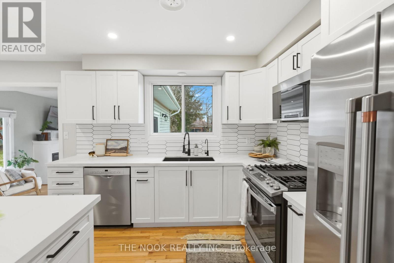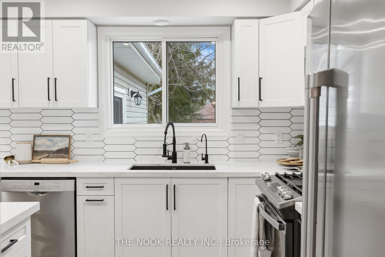 Welcome to 81 Carnegie Street in Port Perry, a beautifully updated 3+1 bedroom raised bungalow set on a large private fully fenced lot with a rare rear access gate to a quiet court. This home offers a seamless blend of comfort and functionality, featuring a modernized kitchen with quartz countertops, soft close cabinetry, and stainless-steel appliances including a counter depth refrigerator, gas range, and reverse osmosis water system, along with tastefully updated bathrooms throughout. The spacious family room showcases impressive cathedral ceilings, a cozy gas fireplace, and a walkout to a stunning backyard retreat complete with an oversized multi-level deck, dedicated sitting area, and a custom-built outdoor sauna, creating a true private oasis for relaxing or entertaining. The fully insulated garage is equipped with a heat pump system as well as hot and cold-water lines, offering an ideal space for a workshop, hobby area, or the ultimate man cave. Additional highlights include a built-in wardrobe in the primary bedroom and an updated front porch with interlocking. Located just a short walk to the lake, downtown Port Perry, parks, and everyday amenities, this is an exceptional opportunity to enjoy both convenience and lifestyle. (id:64974)