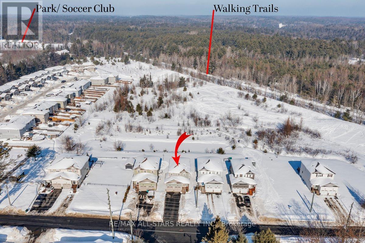 This property captures cottage country energy while offering the everyday convenience of in town living. Backing onto open space with no rear neighbours and direct access to beautiful forested walking trails, this move in ready home offers an exceptional blend of convenience, functionality and location.The bright, open concept main floor is thoughtfully designed for modern family living. A spacious kitchen with stainless steel appliances flows seamlessly into the living and dining areas, creating an inviting space perfect for both daily life and entertaining. A walkout to the backyard extends your living space outdoors, while convenient inside entry from the double attached garage ensures year round comfort and practicality. Upstairs, the generous primary bedroom is complete with a 4 piece ensuite and walk in closet. Two additional bedrooms with ample closet storage, along with a 4 piece family bath that provides flexibility for growing families and guests.The finished basement further enhances the home's versatility, featuring an additional 4 piece bathroom and a spacious area ideal for a recreation room, gym, home office, or easily converted fourth bedroom. Step outside to enjoy peaceful, open backyard views, a rare and highly desirable feature that enhances both privacy and tranquility. Perfectly positioned for active families, the home is just steps from the Sports Complex (pool, gymnastics facility, gym, playground and more), the local high school and scenic trail systems. All of this is just minutes from downtown Bracebridge's charming shops, exceptional restaurants, waterfront parks and beaches. Experience the very best of the Bracebridge lifestyle - where privacy, nature, community and convenience come together in one exceptional property. (id:64974)