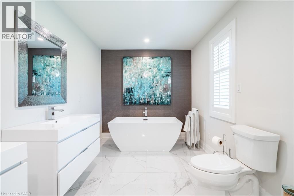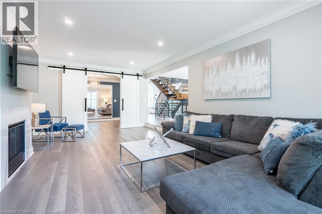Welcome to this exceptional four-bedroom, four-bathroom residence offering over 4,700 square feet of beautifully finished living space. The bright and open main floor makes an immediate impression with a striking iron-and-glass staircase and an elegant dining room designed to host memorable gatherings. The custom chef’s kitchen is the heart of the home, featuring a large island with breakfast bar seating, KitchenAid appliances, quartz countertops, and a timeless marble backsplash. The sun-filled sunroom overlooks the backyard and pool—an ideal spot to enjoy your morning coffee. A cozy family room with a gas fireplace and sliding barn doors leads to a bright home office and additional living space. Completing the main level are a stylish powder room and a functional mudroom with inside access to the double-car garage. Upstairs, the stunning primary suite is a true retreat, offering a sitting area, a show-stopping dressing room with custom built-ins, and a luxurious five-piece ensuite with a freestanding soaker tub and glass rain shower. Three additional generously sized bedrooms, a five-piece main bathroom, and a convenient bedroom-level laundry room provide comfort and space for the entire family. The finished basement is designed for entertaining, featuring a large open area ideal for a media room and kids’ zone, plus additional space for a home gym, a separate games room, and a three-piece bathroom. Step outside to your private backyard oasis, complete with a stone patio, pool, gazebo for outdoor movies or game nights, and a firepit—perfect for relaxing evenings in a peaceful, secluded setting. Located on one of Waterdown’s most prestigious streets, this home is just minutes from downtown shops, restaurants, schools, parks, waterfalls, and the Bruce Trail. With easy access to Aldershot GO, QEW/403, and Dundas Street, this remarkable property offers an exceptional blend of luxury, lifestyle, and convenience. Don’t be TOO LATE*! *REG TM. RSA. (id:64974)