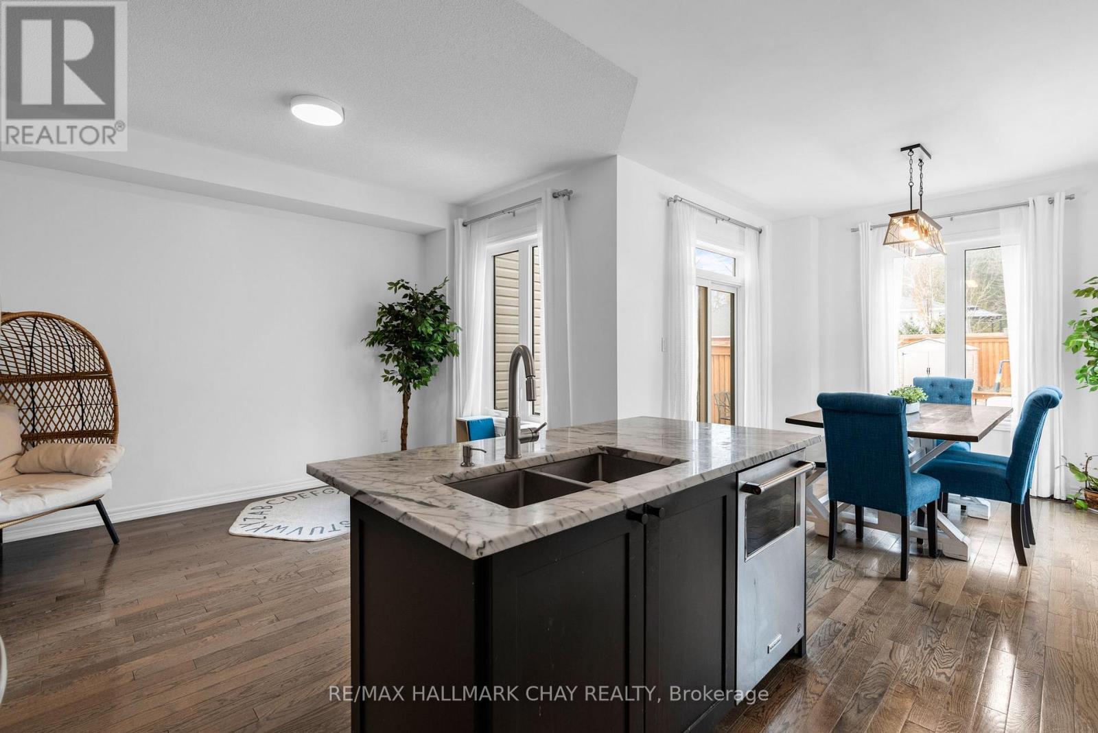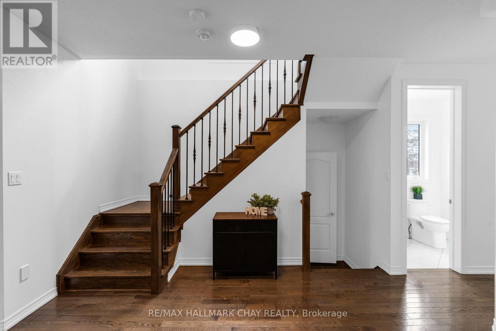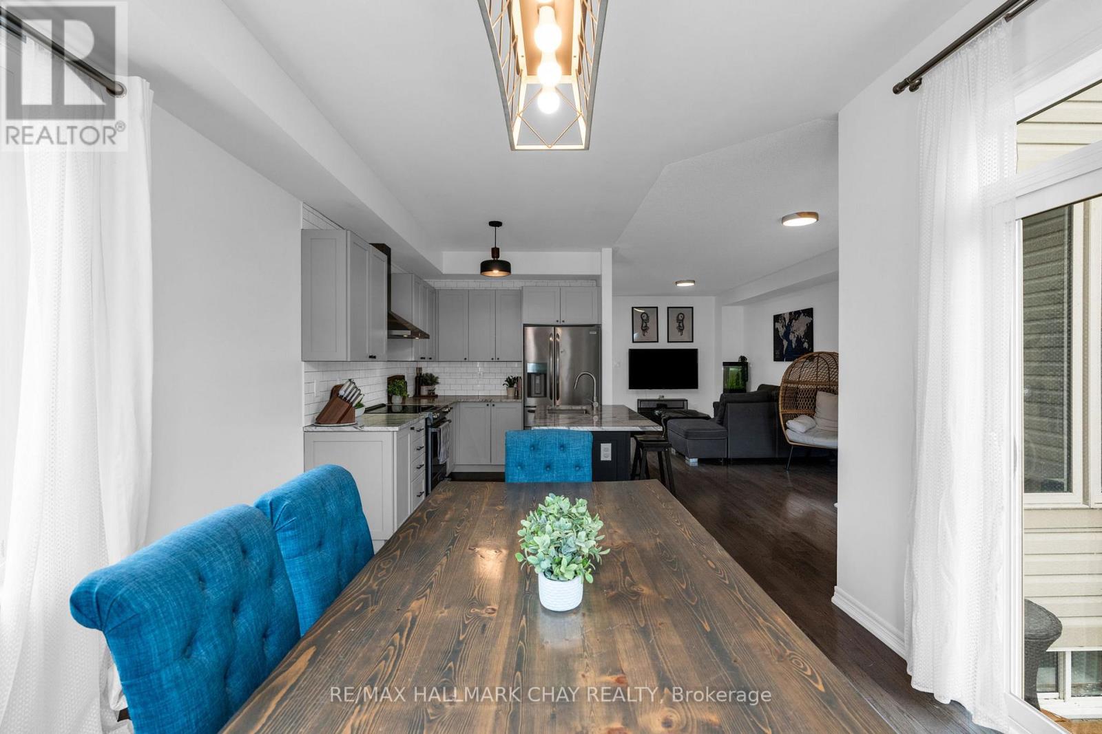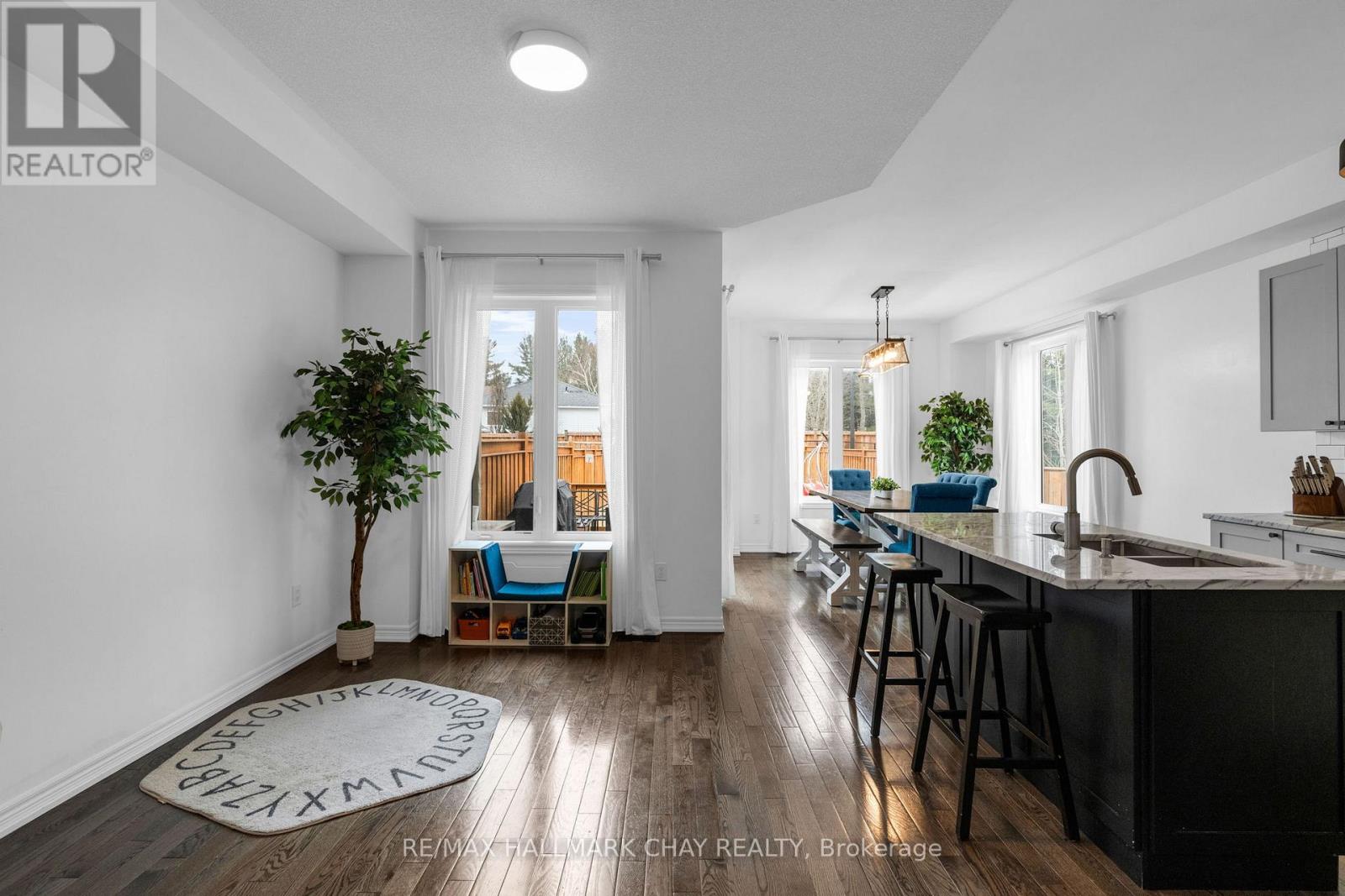 Welcome to 81 Greenwood Dr, a beautifully maintained end-unit townhouse in the growing community of Angus. Offering just over 2400 sq ft of finished living space, this 3-bedroom, 4-bathroom home delivers the perfect blend of modern finishes, functionality, and privacy. The bright, open-concept main floor is designed for both everyday living and entertaining, featuring 9 ft ceilings, hardwood flooring, and a stylish kitchen complete with marble countertops, ample cabinetry, and a seamless flow into the living and dining areas. Upstairs, you'll find three spacious bedrooms, including a well-appointed primary suite with a walk-in closet, additional double closet, and a private ensuite featuring a soaker tub and separate shower.T he fully finished basement extends your living space with a generous recreation room, powder room, and a versatile bonus area ideal for a home office, gym, or guest space. Set on an oversized 25 x 155 ft lot, this property stands out with no side neighbours and direct access to the Barrie-Collingwood Rail Trail, offering a rare combination of privacy and outdoor lifestyle. Enjoy summer evenings on the backyard deck with plenty of green space to unwind. Additional highlights include a high-clearance single-car garage with built-in overhead storage, and a location just minutes to schools, parks, trails, and CFB Borden.An exceptional opportunity for first-time buyers or those looking to enter the market with a move-in ready home in a family-friendly neighbourhood. (id:64974)
