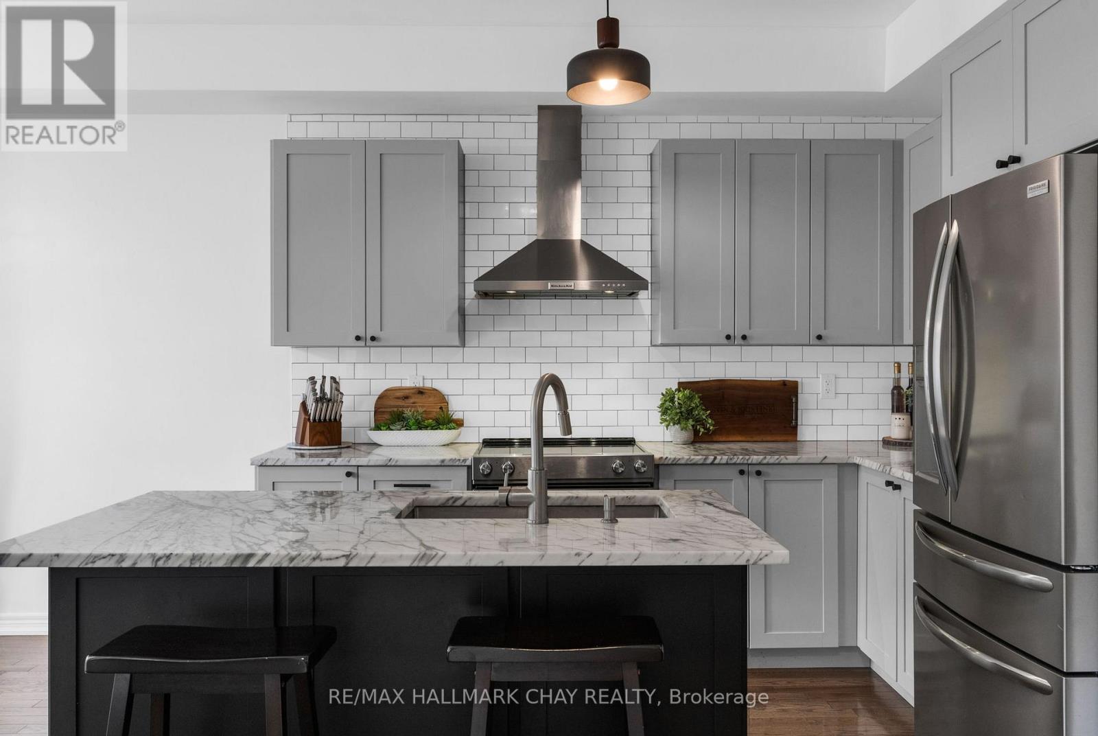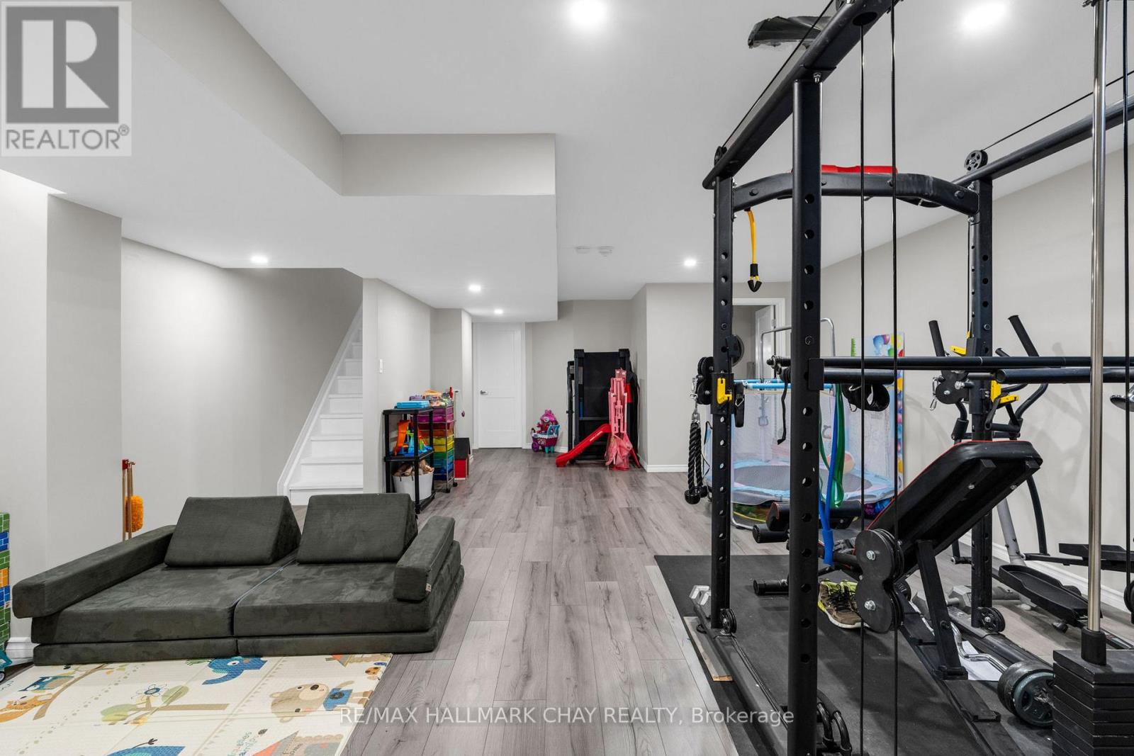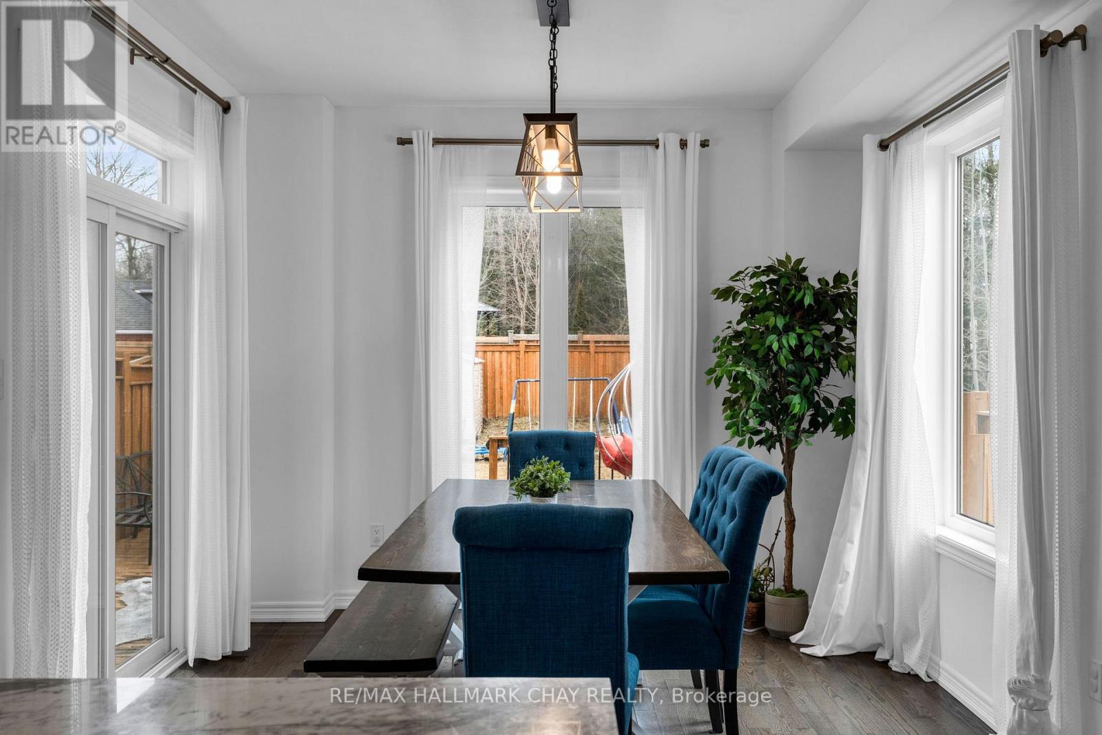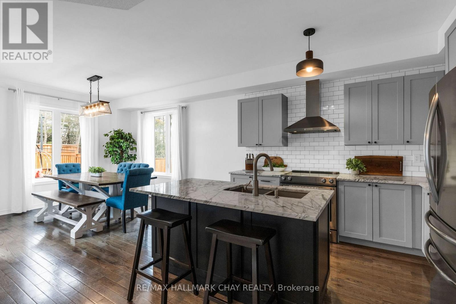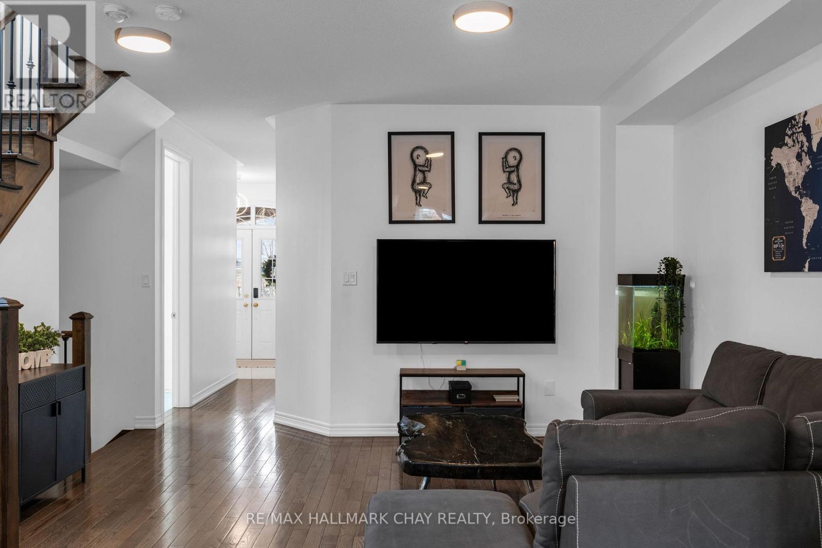 Welcome to 81 Greenwood Dr, a beautifully maintained end-unit townhouse in the growing community of Angus. Offering just over 2400 sq ft of finished living space, this 3-bedroom, 4-bathroom home delivers the perfect blend of modern finishes, functionality, and privacy. The bright, open-concept main floor is designed for both everyday living and entertaining, featuring 9 ft ceilings, hardwood flooring, and a stylish kitchen complete with marble countertops, ample cabinetry, and a seamless flow into the living and dining areas. Upstairs, you'll find three spacious bedrooms, including a well-appointed primary suite with a walk-in closet, additional double closet, and a private ensuite featuring a soaker tub and separate shower.T he fully finished basement extends your living space with a generous recreation room, powder room, and a versatile bonus area ideal for a home office, gym, or guest space. Set on an oversized 25 x 155 ft lot, this property stands out with no side neighbours and direct access to the Barrie-Collingwood Rail Trail, offering a rare combination of privacy and outdoor lifestyle. Enjoy summer evenings on the backyard deck with plenty of green space to unwind. Additional highlights include a high-clearance single-car garage with built-in overhead storage, and a location just minutes to schools, parks, trails, and CFB Borden.An exceptional opportunity for first-time buyers or those looking to enter the market with a move-in ready home in a family-friendly neighbourhood. (id:64974)